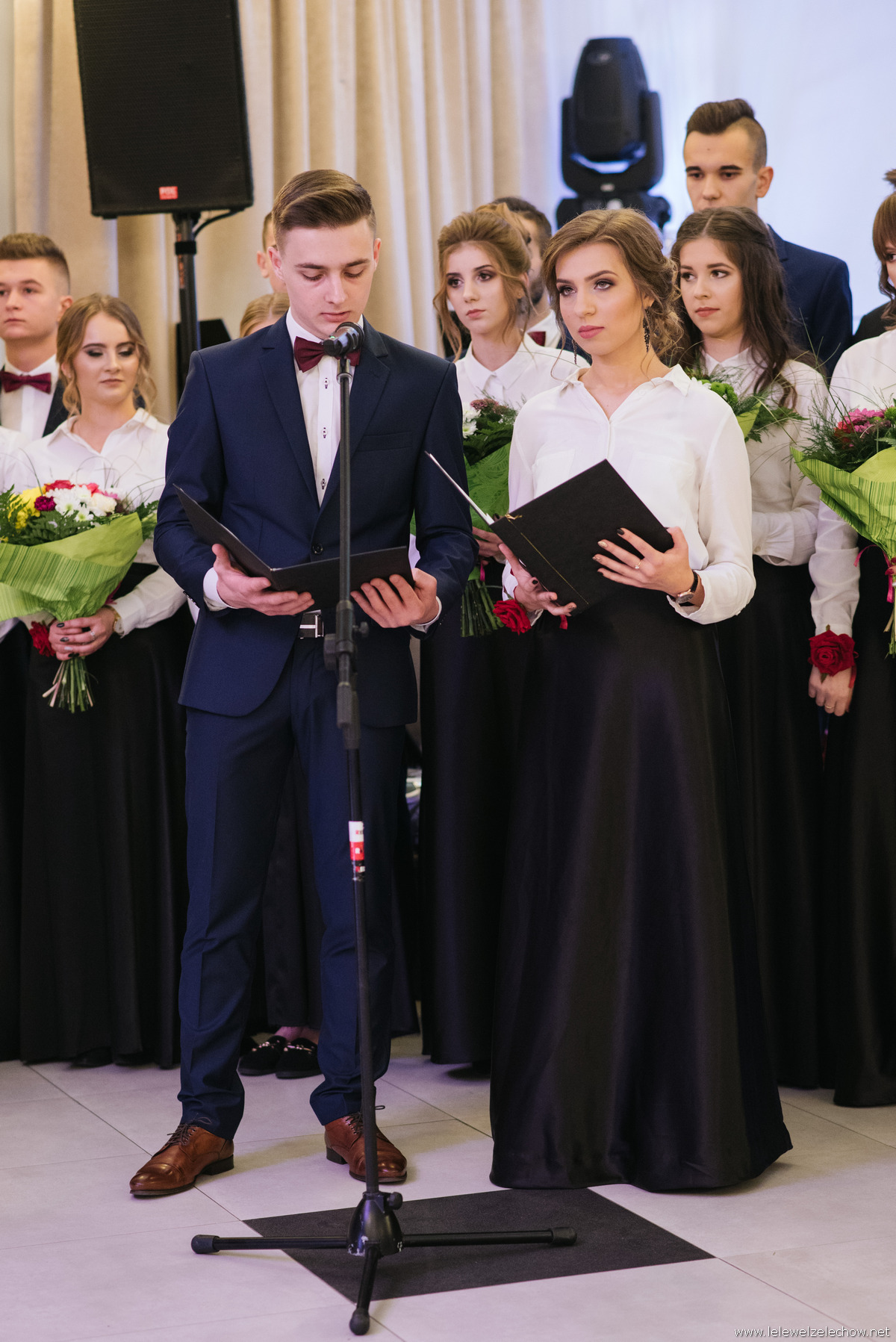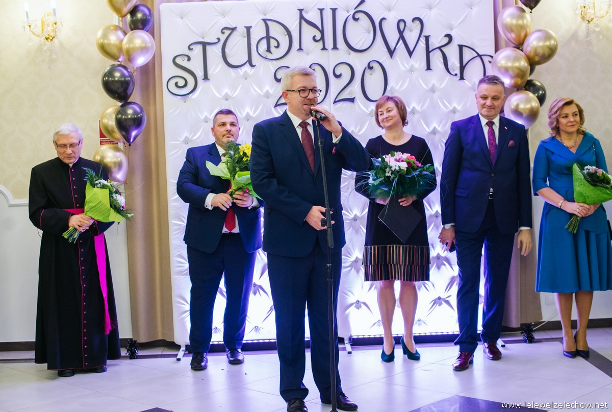 Bal studniówkowy rozpoczęła część oficjalna. Na początku pani dyrektor Sylwia Tomaszek przywitała zaproszonych gości, wychowawczynie, nauczycieli, licznie zgromadzonych rodziców oraz uczniów i osoby im towarzyszące. W uroczystym rozpoczęciu balu uczestniczyli: Poseł na Sejm RP Grzegorz Woźniak, Starosta Powiatu Garwolińskiego Mirosław Walicki, Burmistrz Żelechowa Łukasz Bogusz oraz Proboszcz Parafii Żelechów ksiądz prałat Eugeniusz Filipiuk. Każdy z nich w krótkim wystąpieniu gratulował uczniom dotarcia do tego momentu, jakim jest 100 dni do matury. Wszyscy Goście zwracali uwagę na niepowtarzalną atmosferę liceum w Żelechowie, gratulowali osiągnięć, aktywności w życiu lokalnym, życzyli uczniom sukcesów na maturze i w dalszych etapach życia oraz udanego balu.
