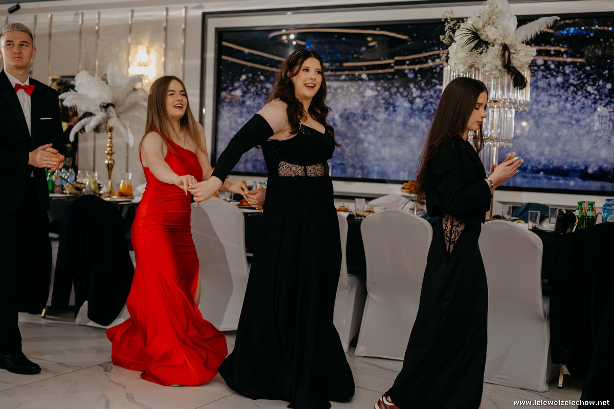 Wszyscy uczestnicy balu bawili się do białego rana w rytm starych i nowych przebojów granych przez zespół Vers. Wspólne zdjęcia i rozmowy przy stołach tworzyły atmosferę bliskości i wspólnoty. Maturzyści, świadomi tego, że to jeden z ostatnich momentów w takim gronie, spędzili ten wyjątkowy czas beztrosko i w pełni szczęścia. Ta noc z pewnością zostanie zapamiętana jako pełna radości i entuzjazmu.