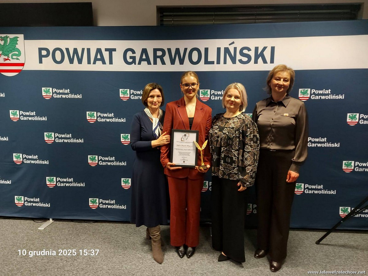 Julia Mucha otrzymała Stypendium Starosty Powiatu Garwolińskiego dla uczniów osiągających wybitne wyniki w nauce oraz wykazujących się zaangażowaniem społecznym.