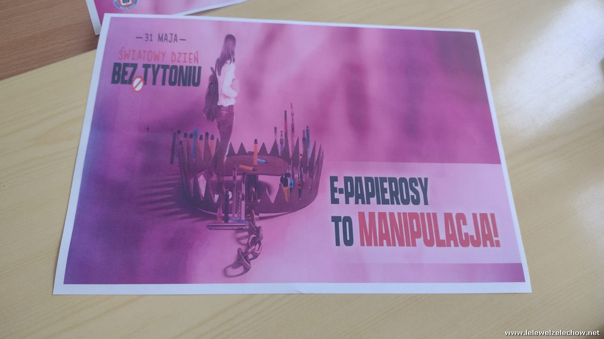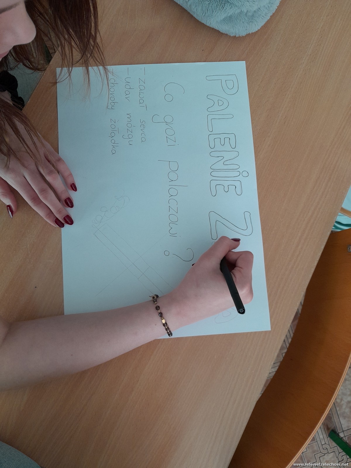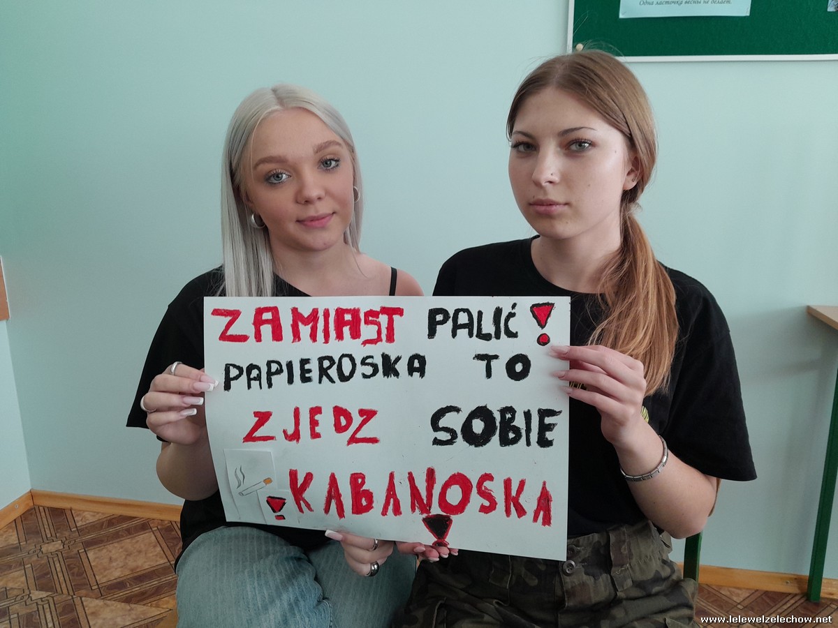 Na przełomie maja i czerwca w naszym liceum trwała akcja na temat szkodliwości palenia i e-papierosów. Z tej okazji na szkolnym holu przygotowano gazetkę na temat konsekwencji palenia oraz jego zdrowych alternatyw. W klasach przeprowadzono lekcje profilaktyczne oraz liczne pogadanki. Uczniowie dowiedzieli się dlaczego tytoń jest niebezpieczny dla zdrowia. Młodzież w grupach wykonywała plakaty promujące życie bez tytoniu, rozwiązywała quizy na temat szkodliwości palenia, a także zastanawiała się nad tym dlaczego e-papierosy to manipulacja. Wszystkie te działania odbyły się pod kierunkiem p. pedagog Anny Majewskiej oraz wychowawcy świetlicy Anny Czarneckiej – Górskiej.