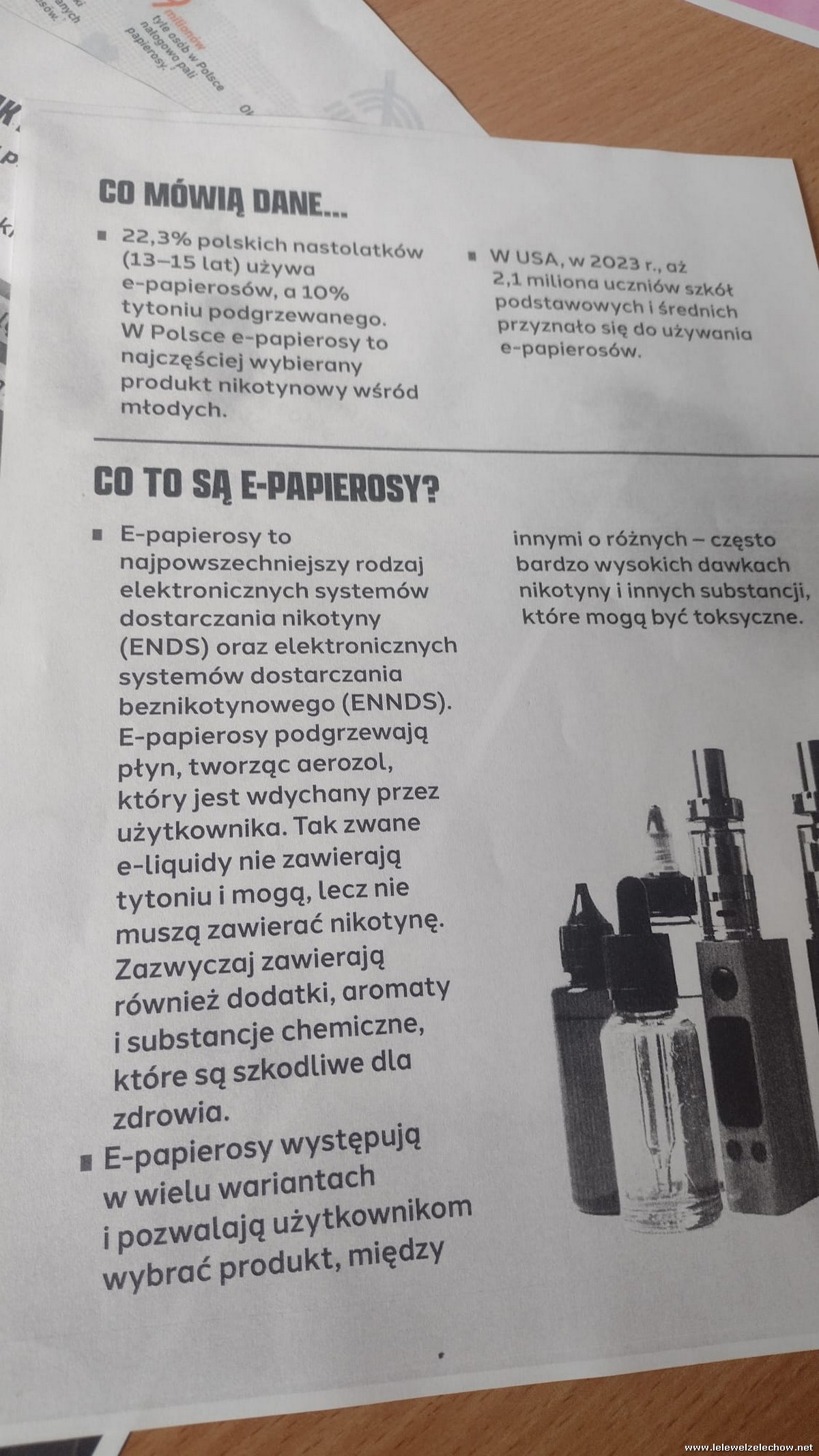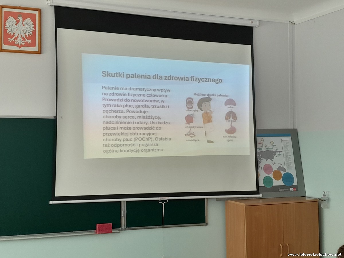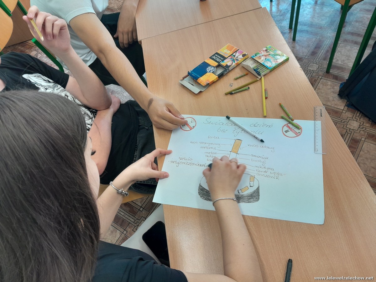 Na przełomie maja i czerwca w naszym liceum trwała akcja na temat szkodliwości palenia i e-papierosów. Z tej okazji na szkolnym holu przygotowano gazetkę na temat konsekwencji palenia oraz jego zdrowych alternatyw. W klasach przeprowadzono lekcje profilaktyczne oraz liczne pogadanki. Uczniowie dowiedzieli się dlaczego tytoń jest niebezpieczny dla zdrowia. Młodzież w grupach wykonywała plakaty promujące życie bez tytoniu, rozwiązywała quizy na temat szkodliwości palenia, a także zastanawiała się nad tym dlaczego e-papierosy to manipulacja. Wszystkie te działania odbyły się pod kierunkiem p. pedagog Anny Majewskiej oraz wychowawcy świetlicy Anny Czarneckiej – Górskiej.