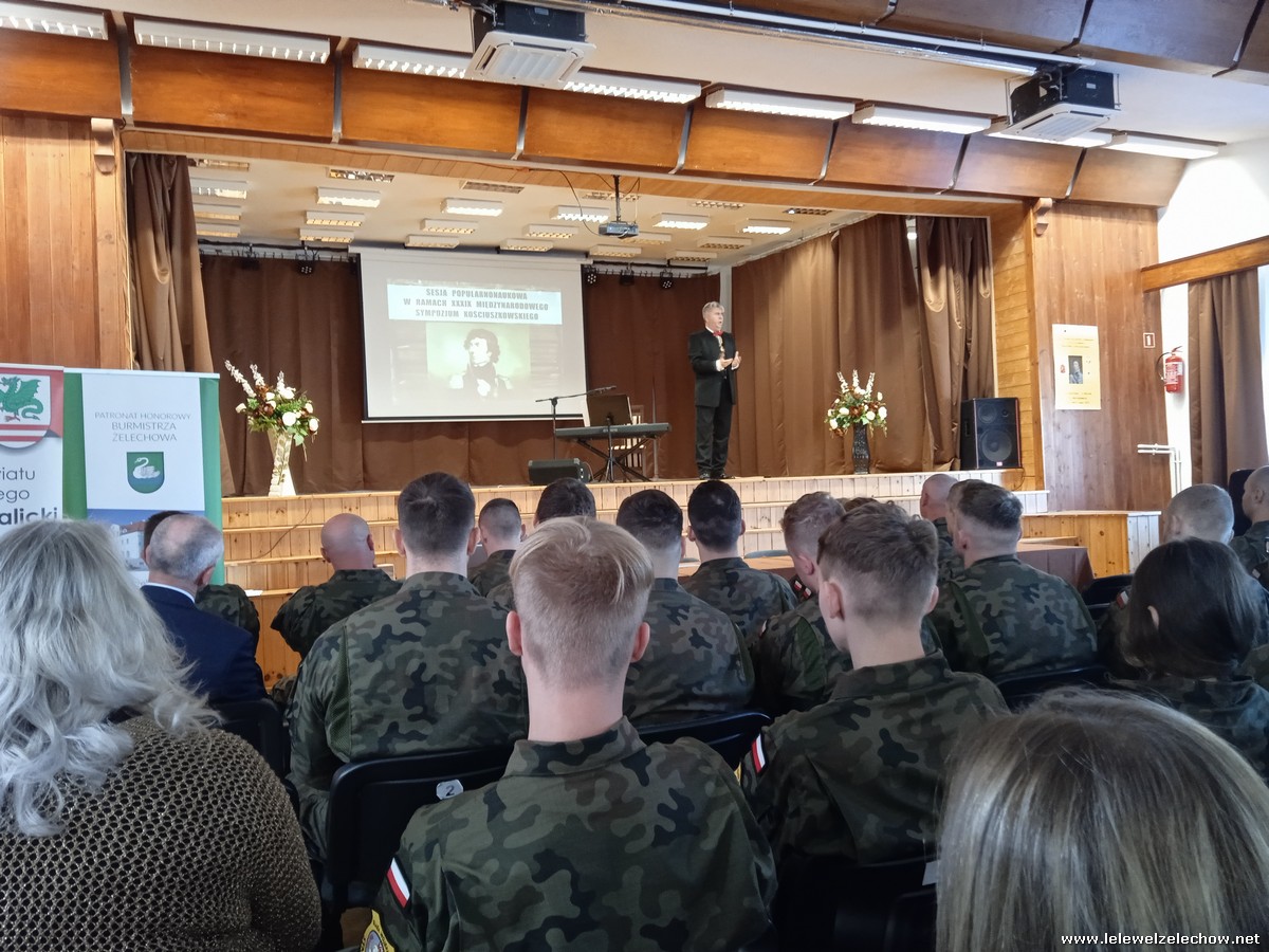 Uczniowie naszego liceum wzięli udział w Sesji popularnonaukowej w MGOK w Żelechowie zorganizowanej w ramach XXXIX Międzynarodowego Sympozjum Kościuszkowskiego. Sesja odbywała się pod hasłem ,,205.rocznica śmierci Tadeusza Kościuszki ''. Na początku młodzież wysłuchała koncertu ,,Na kościuszkowską nutę,, w wykonaniu Andrzeja Batora. Następnie dr Leszek Krześniak zaprezentował wykład pt.,,Tadeusz Kościuszko - 205.rocznica śmierci - przesłanie dla potomnych''. Sesji towarzyszyła wystawa obrazów: ,,Śladami Tadeusza Kościuszki nad Wisłą,"
