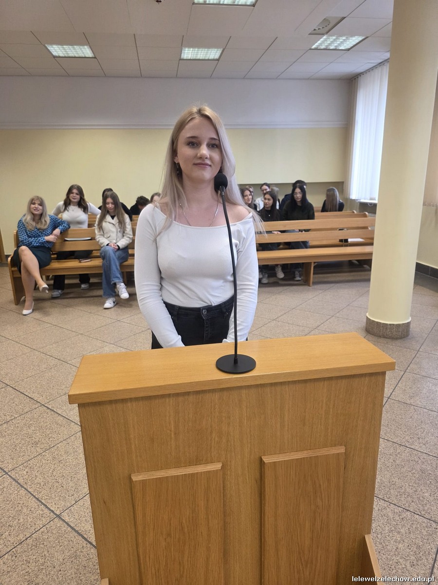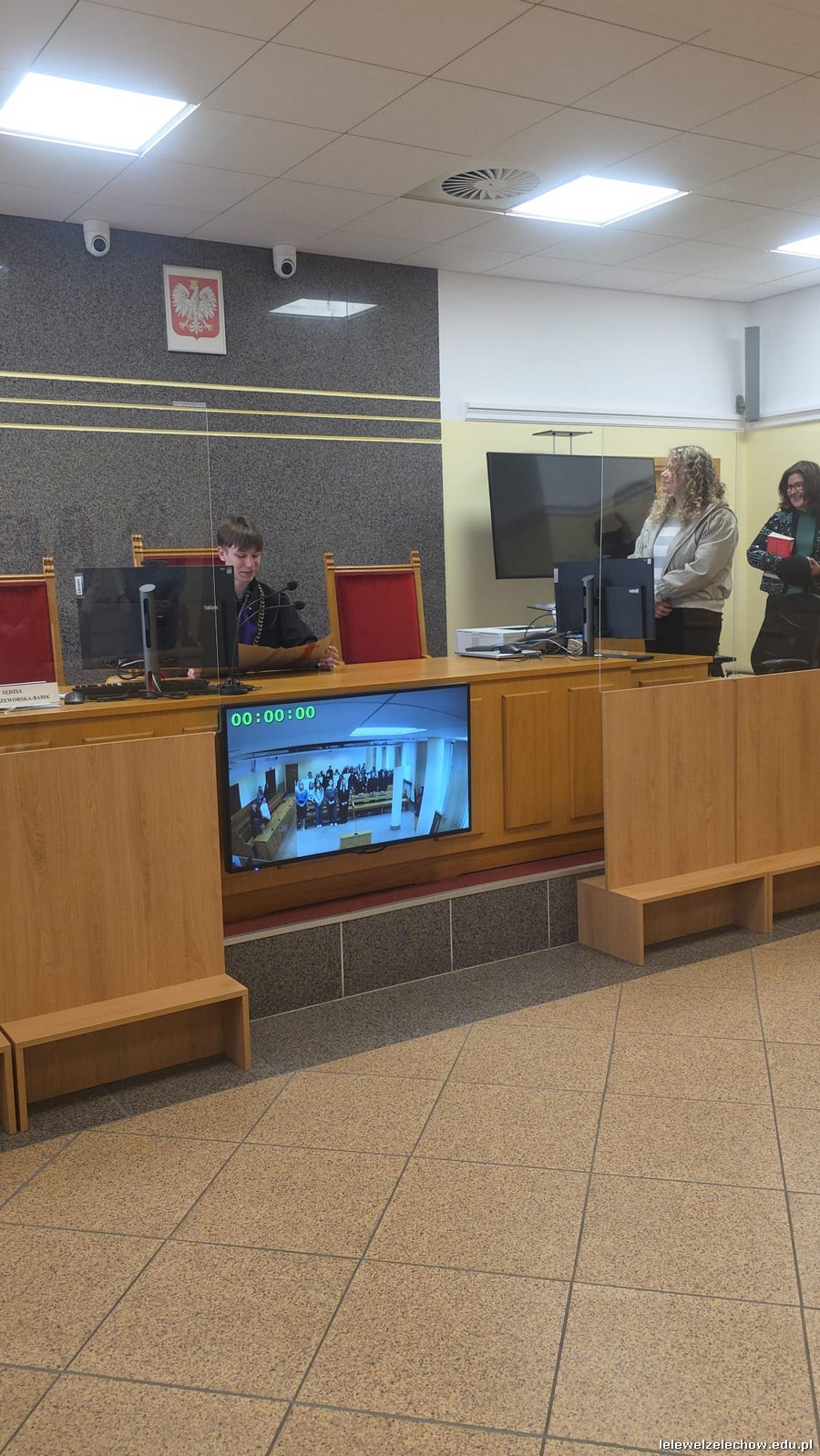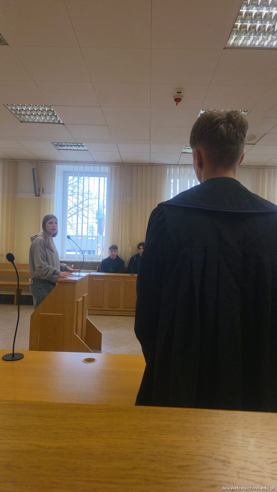 Uczniowie klasy 3a wzięli udział w wyjątkowych zajęciach z zakresu wiedzy o społeczeństwie, które odbyły się w murach Sądu Rejonowego w Garwolinie w ramach Dni Edukacji Prawnej. Celem wizyty było nie tylko poznanie struktury wymiaru sprawiedliwości, ale przede wszystkim praktyczne zrozumienie przebiegu procesu sądowego. Punktem kulminacyjnym wyjazdu była symulacja rozprawy karnej, dotyczącej zdarzenia o charakterze pobicia. Pod czujnym okiem Pani Wiceprezes Sądu Pani Sędzi Anny Przeworskiej-Babik uczniowie mieli okazję wcielić się w kluczowe role procesowe: