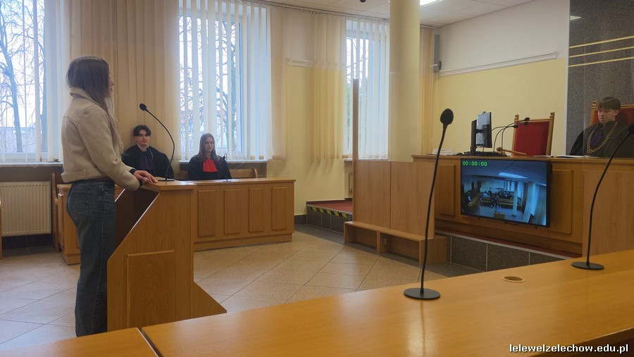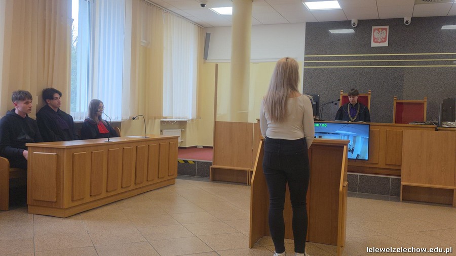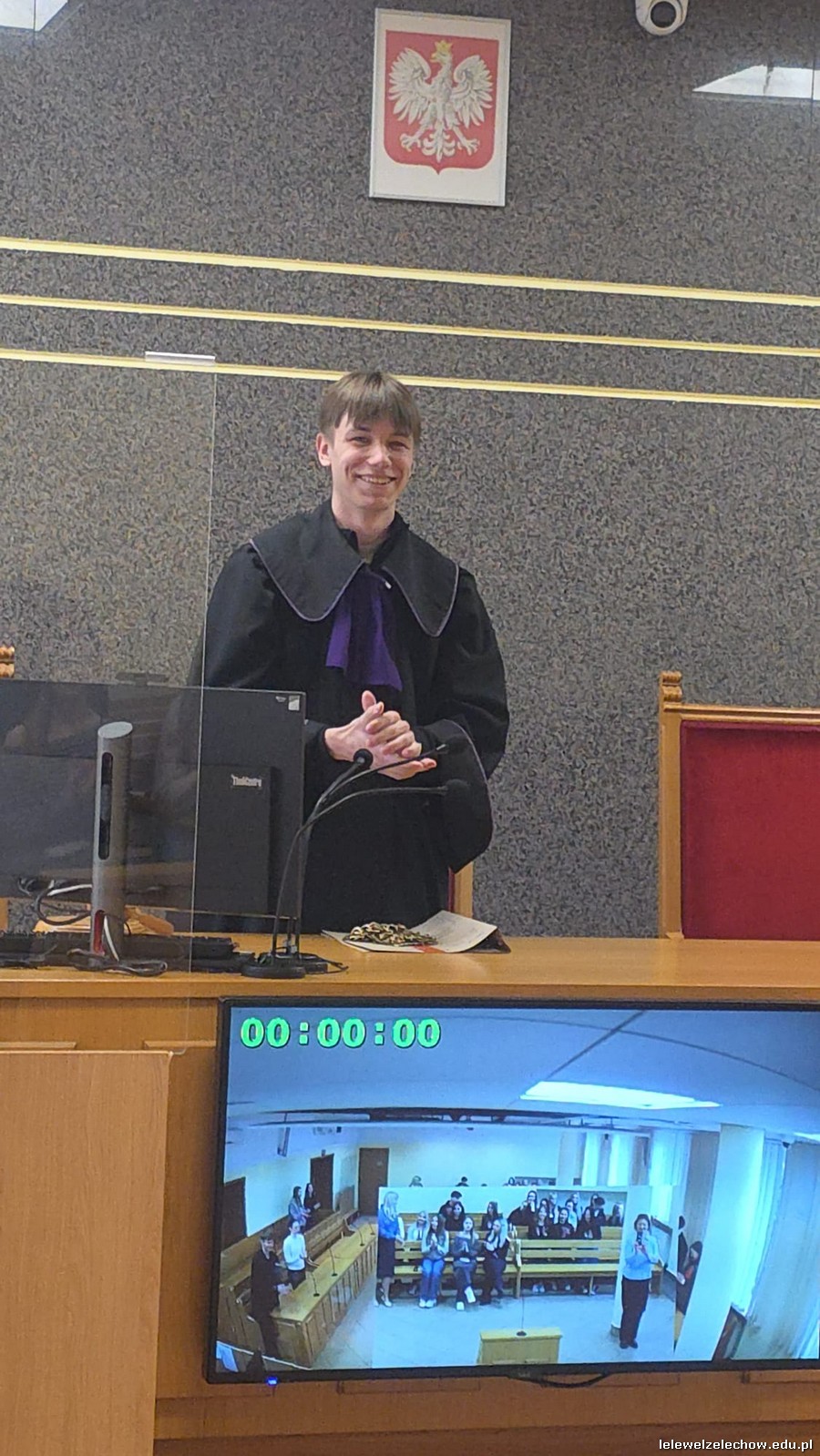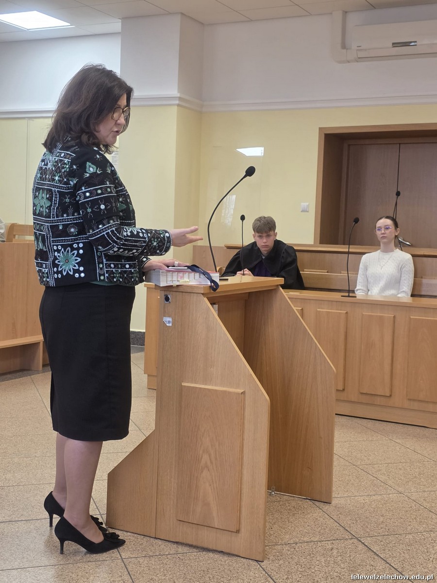 Uczniowie klasy 3a wzięli udział w wyjątkowych zajęciach z zakresu wiedzy o społeczeństwie, które odbyły się w murach Sądu Rejonowego w Garwolinie w ramach Dni Edukacji Prawnej. Celem wizyty było nie tylko poznanie struktury wymiaru sprawiedliwości, ale przede wszystkim praktyczne zrozumienie przebiegu procesu sądowego. Punktem kulminacyjnym wyjazdu była symulacja rozprawy karnej, dotyczącej zdarzenia o charakterze pobicia. Pod czujnym okiem Pani Wiceprezes Sądu Pani Sędzi Anny Przeworskiej-Babik uczniowie mieli okazję wcielić się w kluczowe role procesowe: