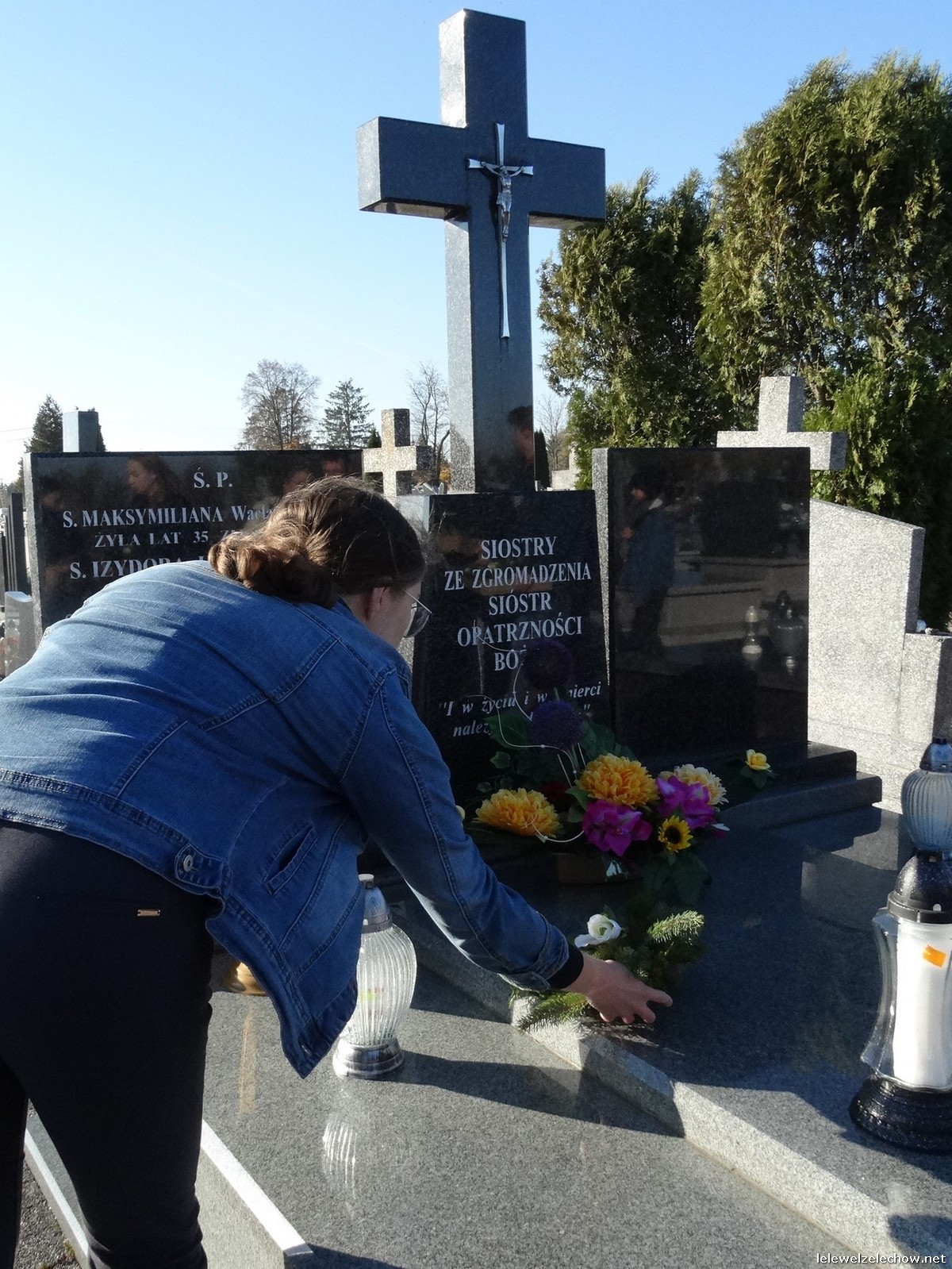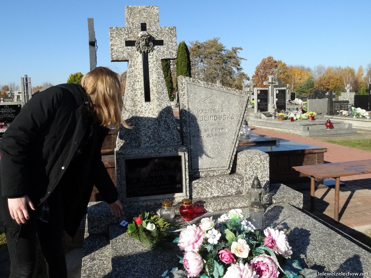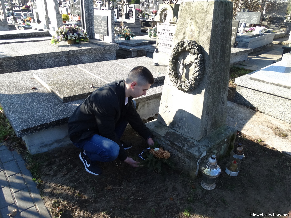 W piątek uczniowie klas 3a i 3b w ramach przedmiotu historia i społeczeństwo rozłożyli na miejscowym cmentarzu przygotowane wcześniej wiązanki (o czym pisaliśmy wczoraj). Mieli jednocześnie okazję poznać miejsca spoczynku ważnych dla społeczności Żelechowa osób, w tym naszych dyrektorów, nauczycieli i pracowników szkoły