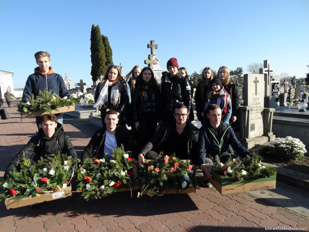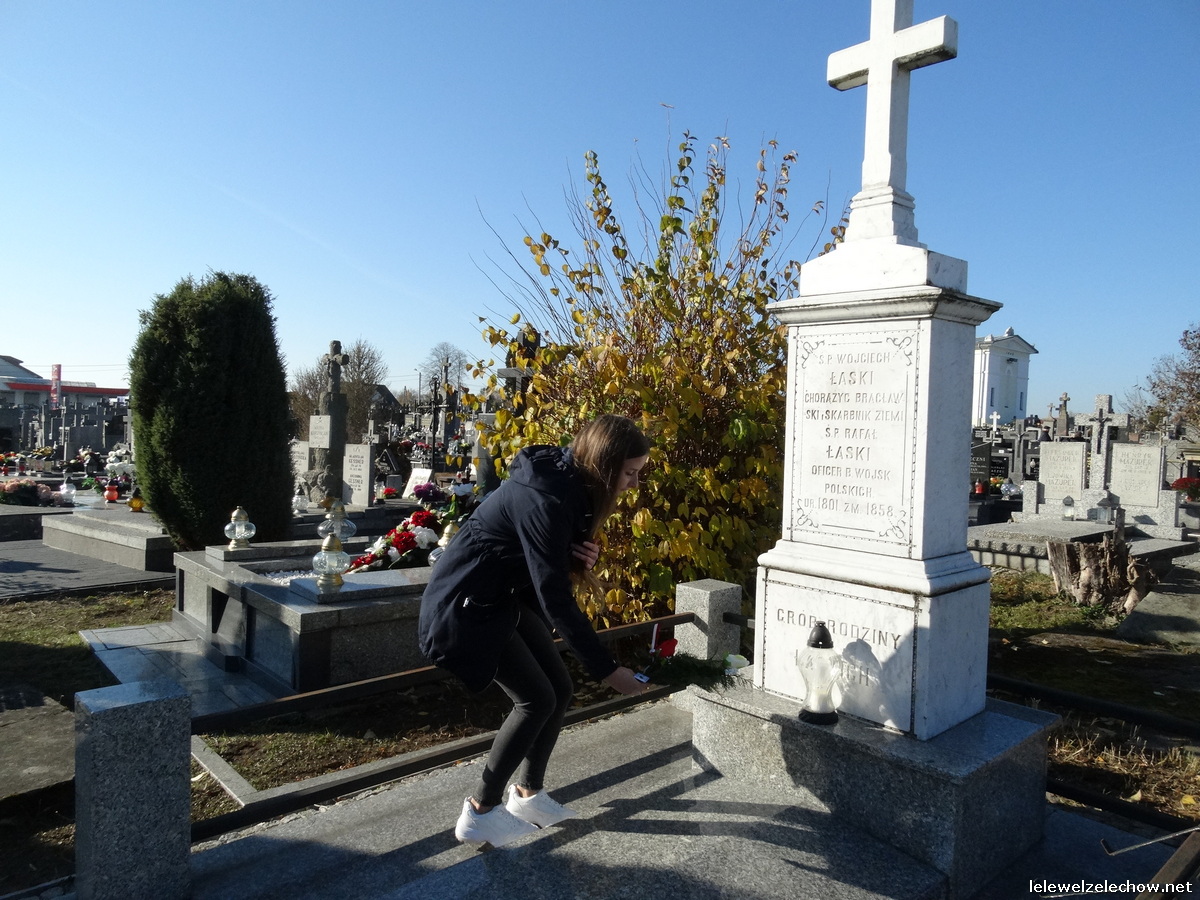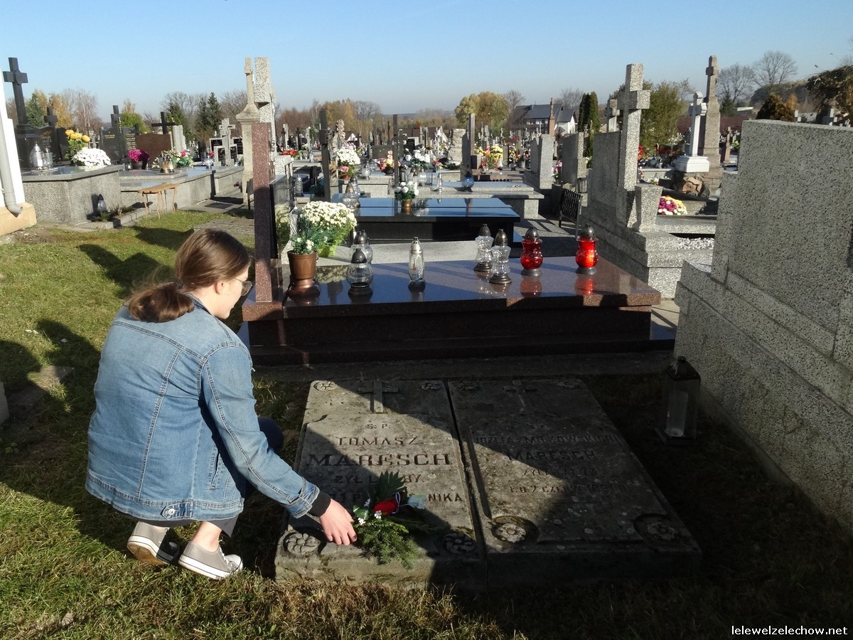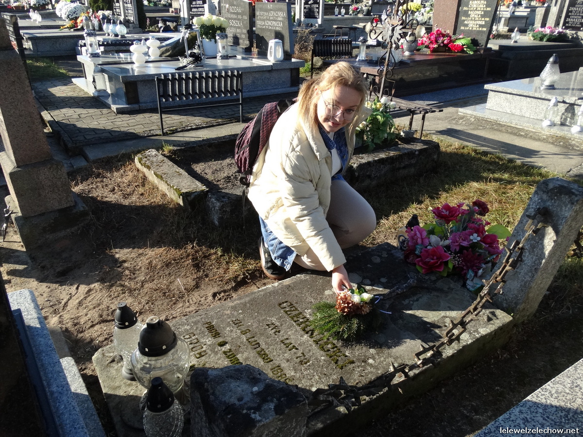 W piątek uczniowie klas 3a i 3b w ramach przedmiotu historia i społeczeństwo rozłożyli na miejscowym cmentarzu przygotowane wcześniej wiązanki (o czym pisaliśmy wczoraj). Mieli jednocześnie okazję poznać miejsca spoczynku ważnych dla społeczności Żelechowa osób, w tym naszych dyrektorów, nauczycieli i pracowników szkoły