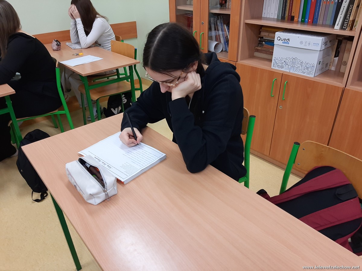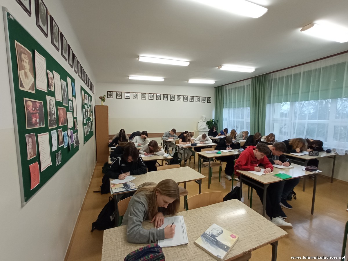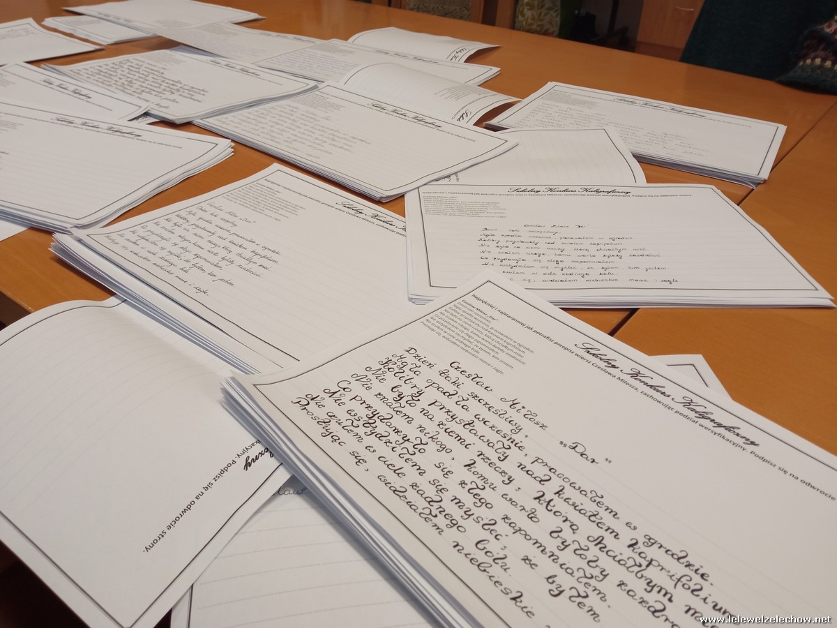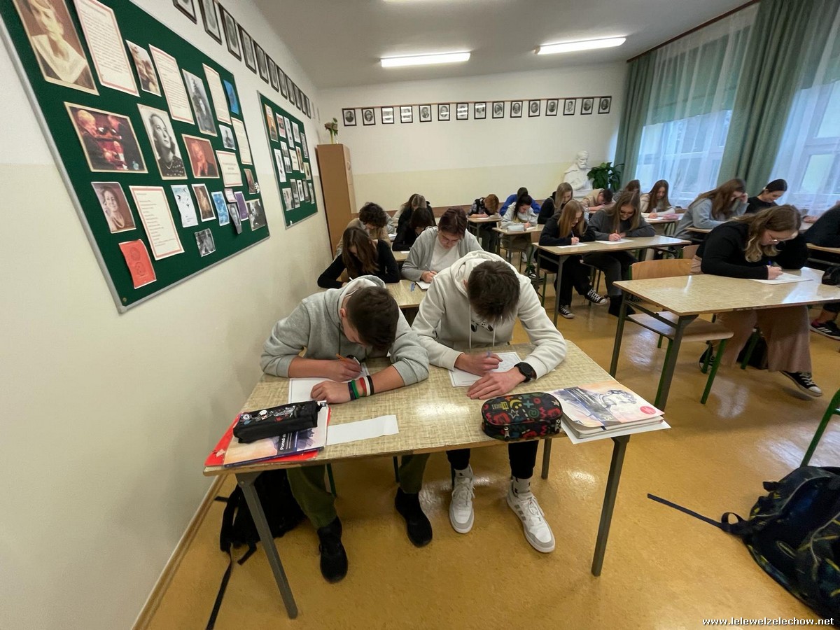 Kaligrafia to sztuka starannego i estetycznego pisania. Dawniej nauka pięknego pisania była obowiązkowym przedmiotem w szkole. Odręczne pismo kształtowało charakter, a także uczyło cierpliwości. Nie inaczej jest i dziś, dlatego 6 lutego zorganizowano w Lelewelu Szkolny konkurs kaligraficzny. Uczniowie mieli za zadanie jak najstaranniej i najpiękniej przepisać wiersz Czesława Miłosza pt. „Dar”. W konkursie uczestniczyli wszyscy uczniowie liceum. Każdy z nich starał się wykonać zadanie najlepiej jak potrafi. Pomysłodawczynią konkursu była pani Urszula Kobielus a nad jego przebiegiem czuwały panie polonistki – Magdalena Woźniak i Anna Włodarczyk. Niełatwo było zdecydować, kto pisze najpiękniej i najstaranniej, ale ostatecznie wyłoniono zwycięzców: