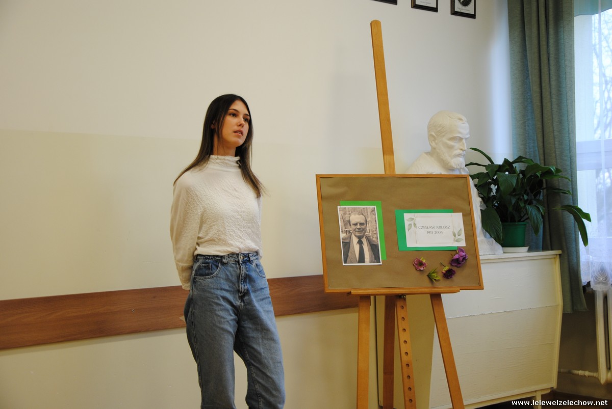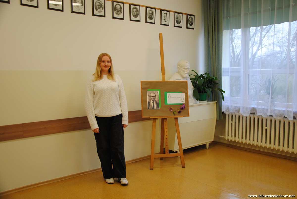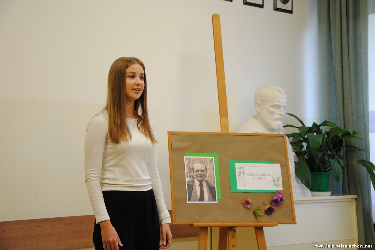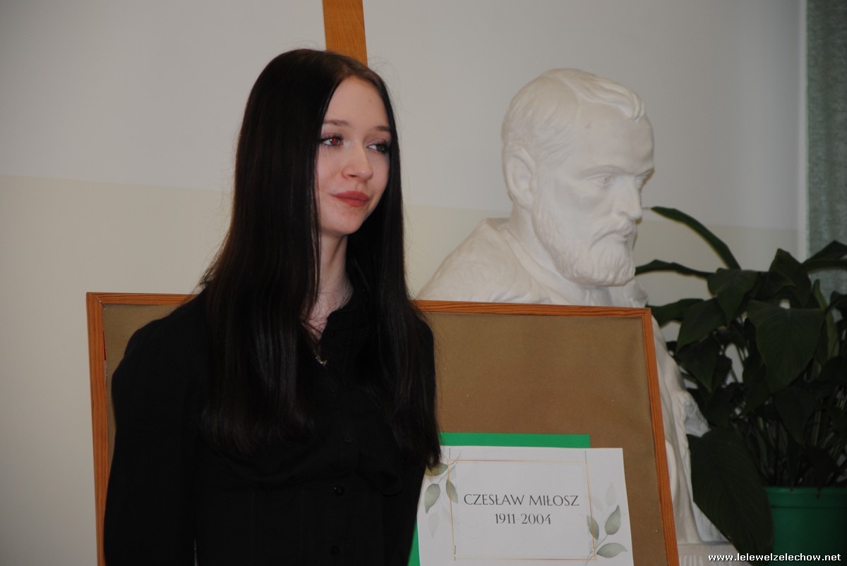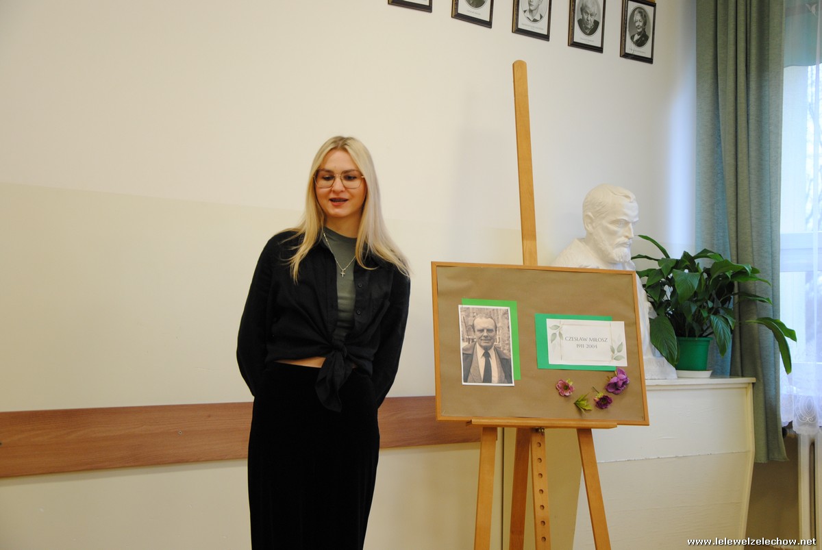 . Wzięło w nim udział 19 uczniów. Mieli oni za zadanie przygotować do recytacji wybrany wiersz Czesława Miłosza, noblisty, który jest jednym z patronów roku 2024. Jury w składzie pani Sylwia Tomaszek, pani Maria Władzińska, pani Magdalena Woźniak, pani Anna Włodarczyk oceniło recytujących i przyznało: