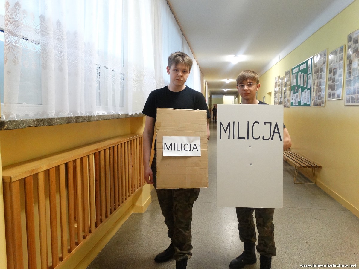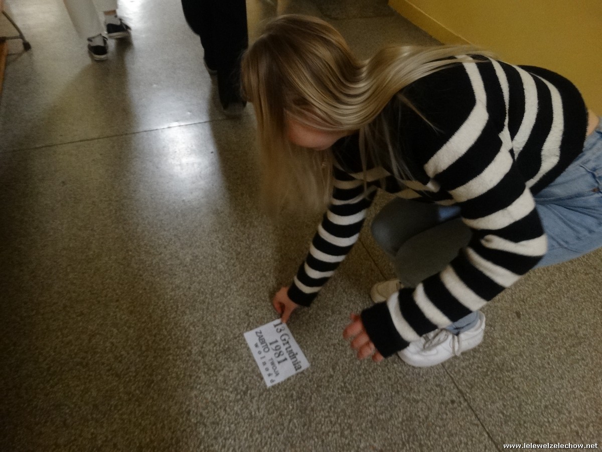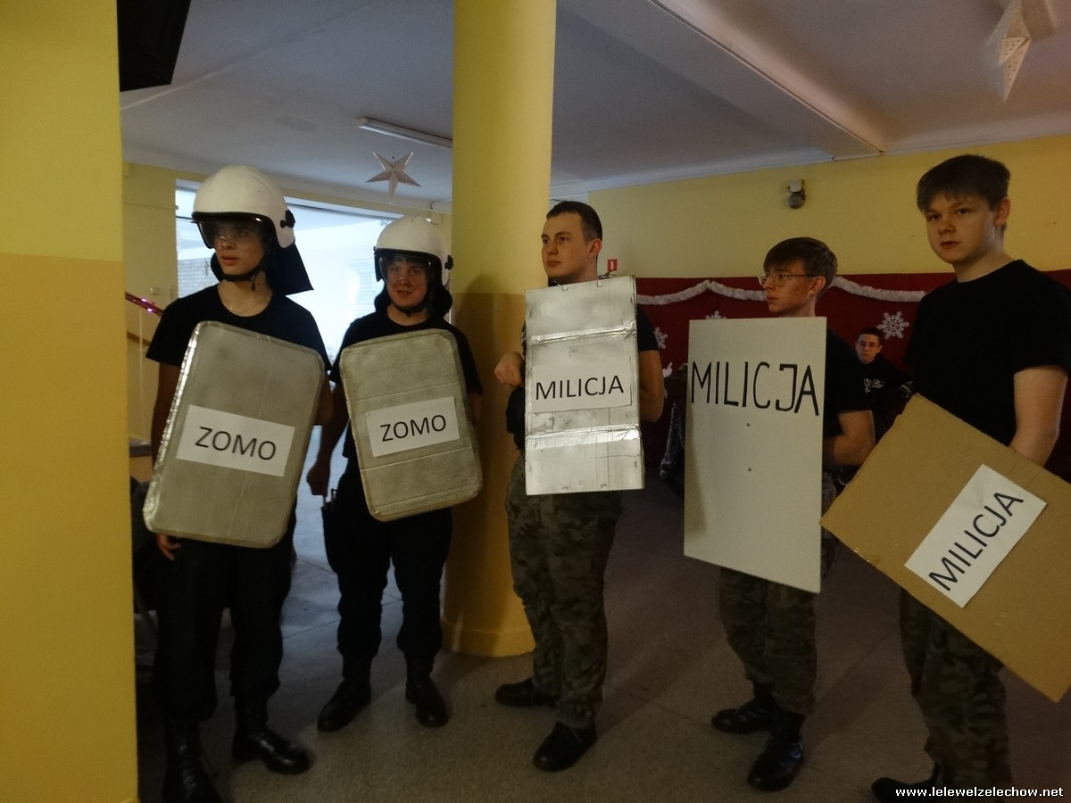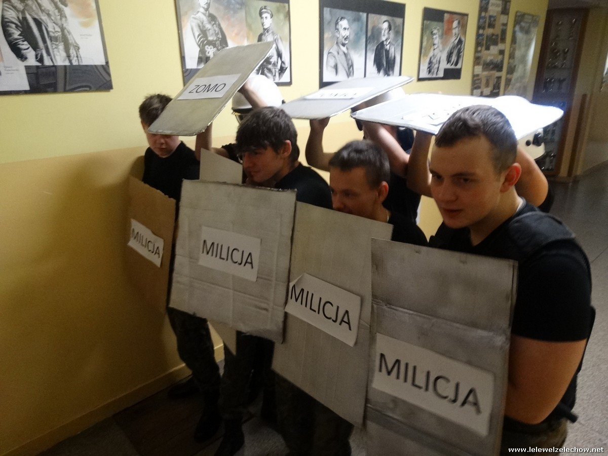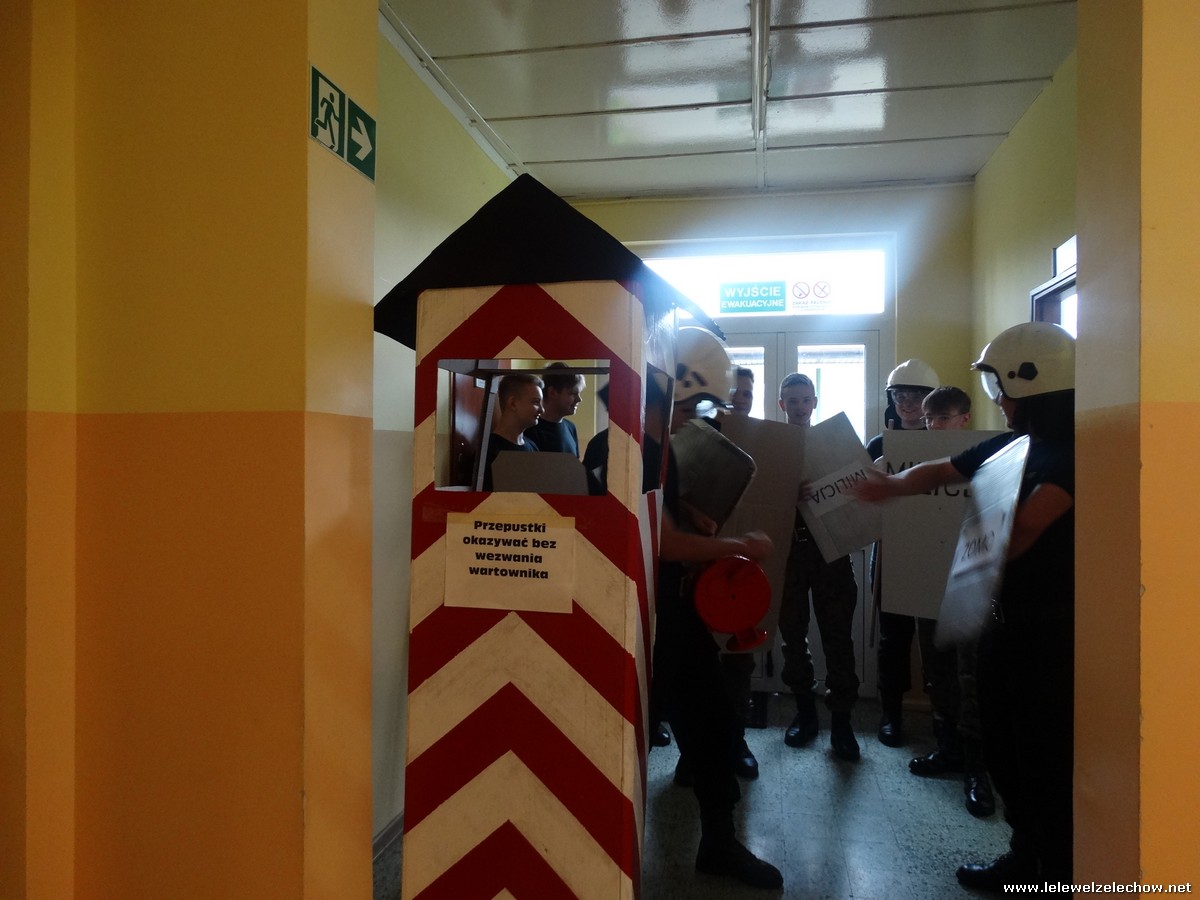 Pod tą nazwą odbyła się dziś na terenie naszej szkoły gra, mająca na celu upamiętnienie 42.rocznicy tych wydarzeń. Uczniowie klas 2a i 2b w ramach lekcji historii zainscenizowali wydarzenia charakterystyczne dla tamtych czasów - patrole milicyjne na ulicach, kontrole obywateli, kolejki przed sklepami i zakupy na kartki, działalność podziemnej ,, Solidarności,, i manifestacje.
