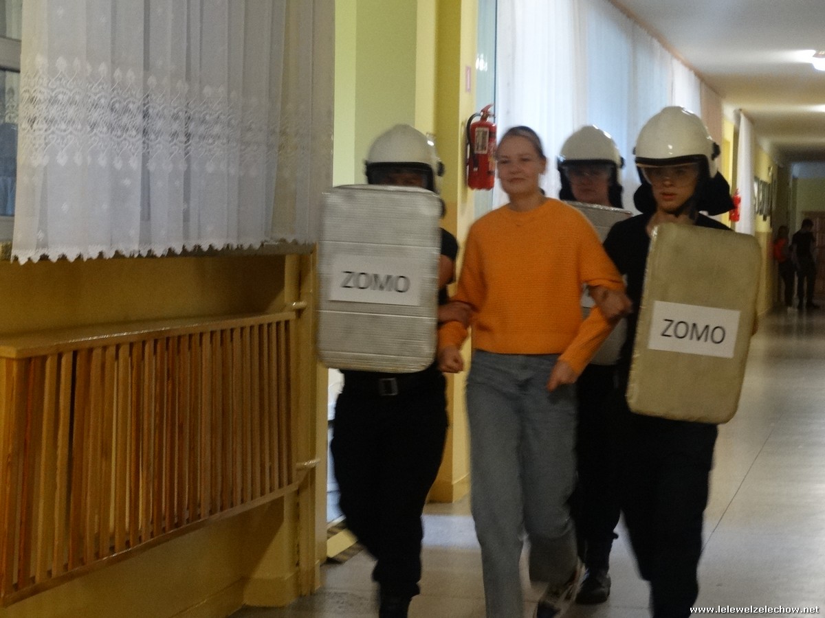 Organizator wydarzenia pani Urszula Kobielus dziękuje wszystkim uczniom za zaangażowanie i wzorowe wcielenie się swoje role, również tym przypadkowo włączonym do akcji.