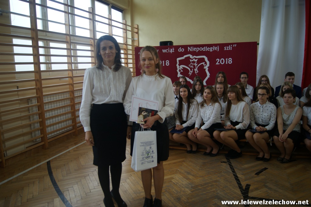 Uroczystość 100 rocznicy odzyskania przez Polskę Niepodległości, odbyła się w piątek , 9 listopada.Nastąpiło wówczas podsumowanie działań szkolnych związanych ze 100- leciem Niepodległości , wręczono również nagrody w szkolnych konkursach historycznych oraz recytatorskim, przeprowadzonych z tej okazji oraz Powiatowym Konkursie Krasomówczym. Wyróżniono uczniów nagrodzonych w konkursie powiatowym ,,Józef Piłsudski i jego czasy” (III miejsce i wyróżnienie dla uczennic z liceum).
