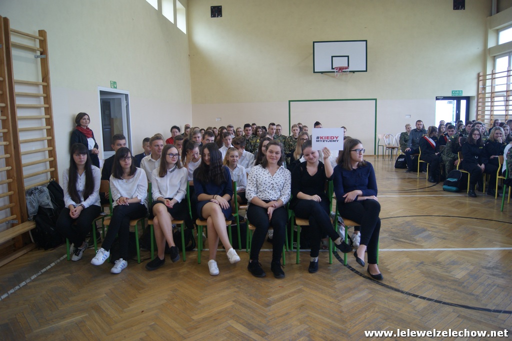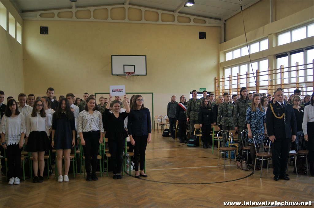 Przed uroczystym odśpiewaniem hymnu państwowego uczniowie zapoznani zostali z ogólnopolską akcją #KIEDYMYŻYJEMY. Po wykonaniu pamiątkowego zdjęcia, odśpiewaliśmy HYMN RZECZYPOSPOLITEJ.