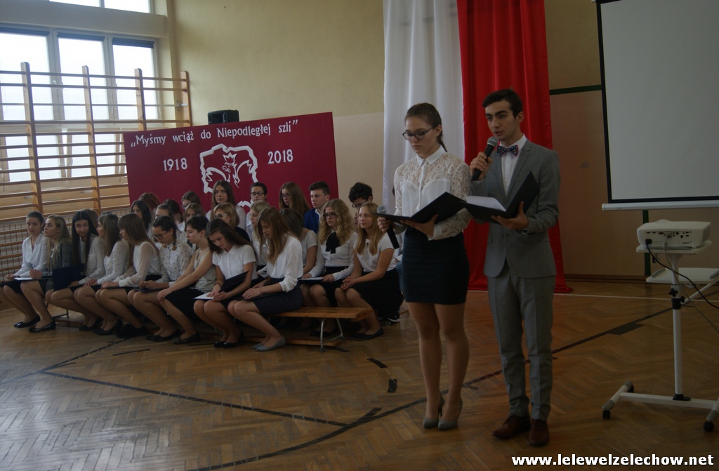 Po uroczystym wprowadzeniu sztandaru liceum, uczniowie odczytali przygotowany z okazji 100.lecia Niepodległości apel pamięci. Tekst ten, zdobył wyróżnienie w ogólnopolskim konkursie historycznym.