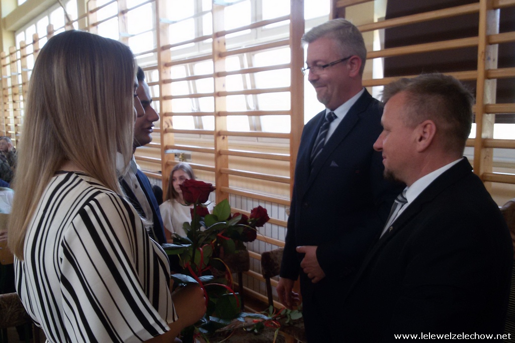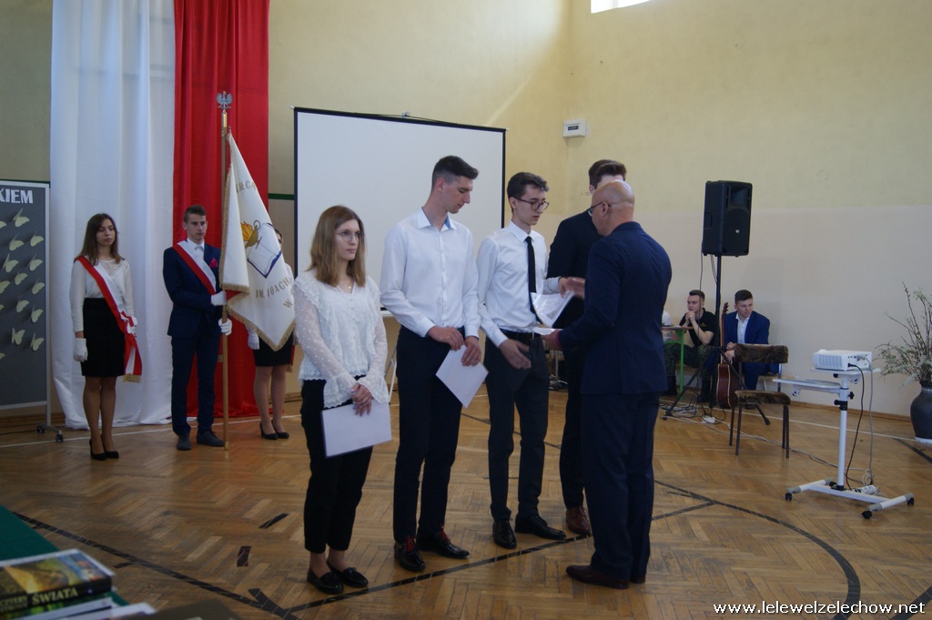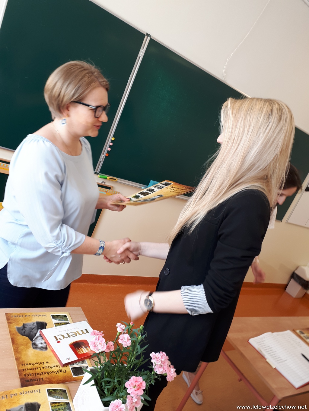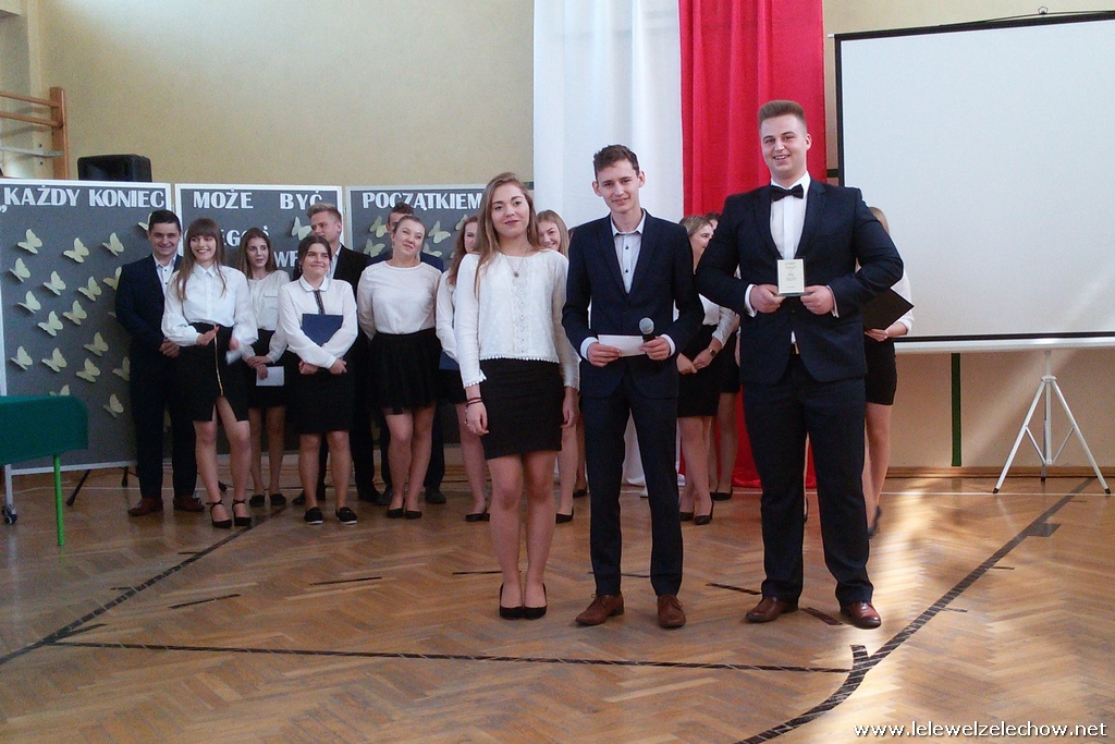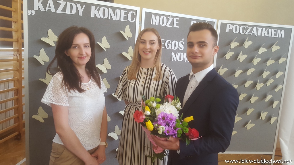 Za wysokie wyniki w nauce oraz szczególne zaangażowanie w promocję gminy Żelechów Alicji Gendek nagrodę wręczył Burmistrz Żelechowa pan Łukasz Bogusz. Pan Łukasz Bogusz z sentymentem wspomniał swoje zakończenie szkoły w liceum ,,Lelewela” i życzył aby uczniowie, tak jak on do tej pory, miło wspominali ten czas spędzony w murach tej szkoły.