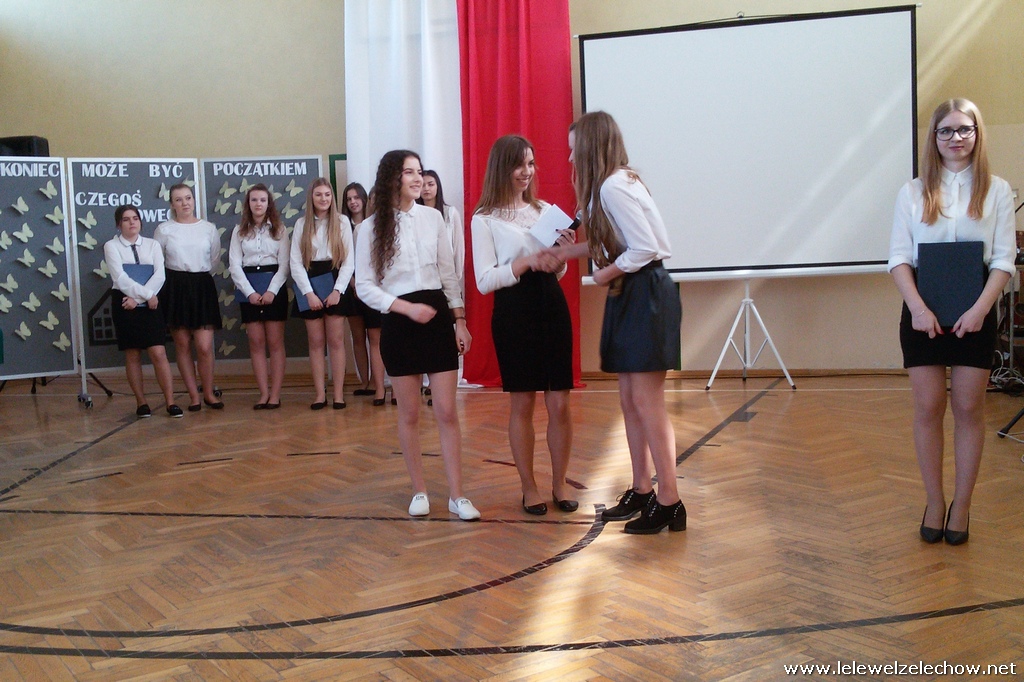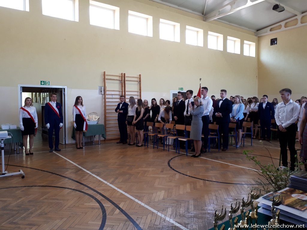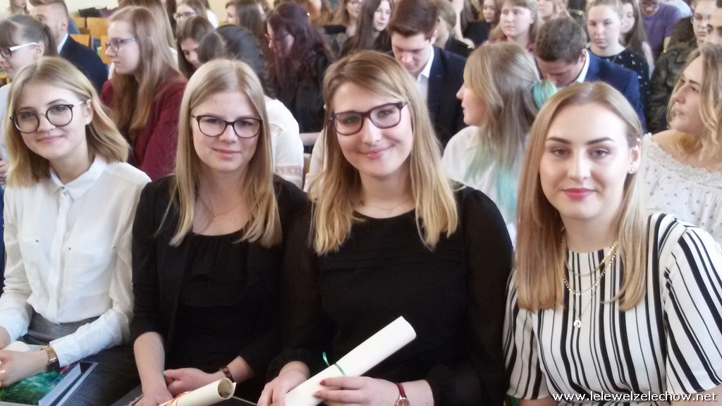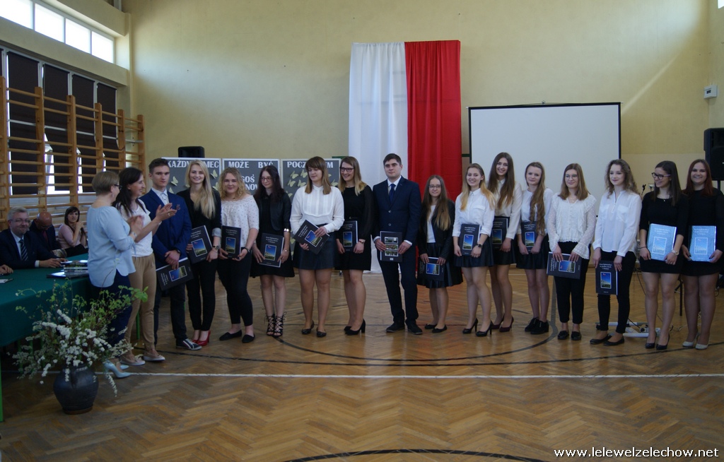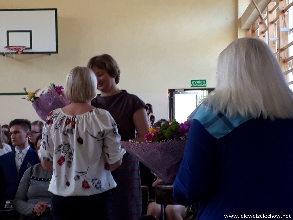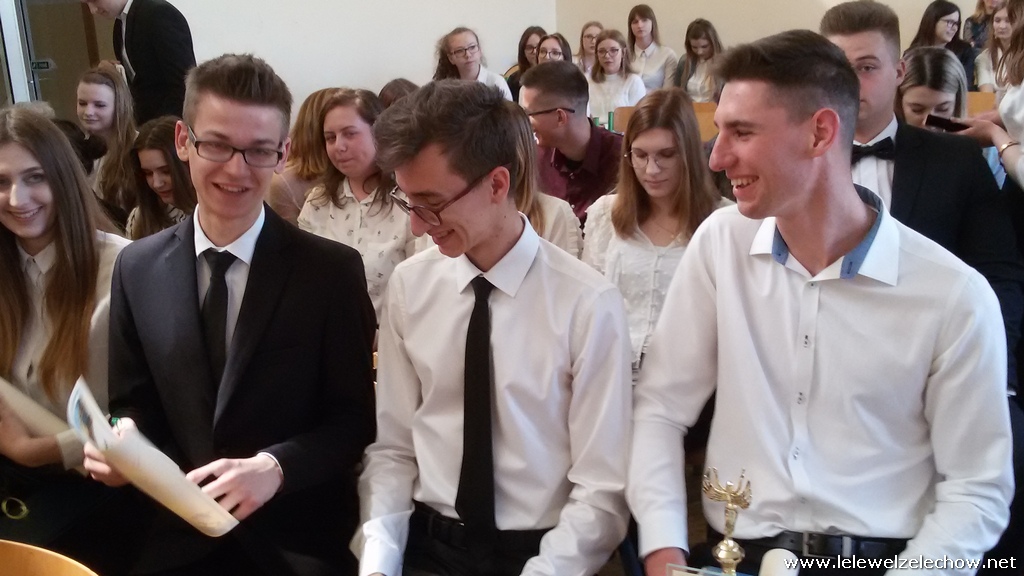 Za wysokie wyniki w nauce oraz szczególne zaangażowanie w promocję gminy Żelechów Alicji Gendek nagrodę wręczył Burmistrz Żelechowa pan Łukasz Bogusz. Pan Łukasz Bogusz z sentymentem wspomniał swoje zakończenie szkoły w liceum ,,Lelewela” i życzył aby uczniowie, tak jak on do tej pory, miło wspominali ten czas spędzony w murach tej szkoły.