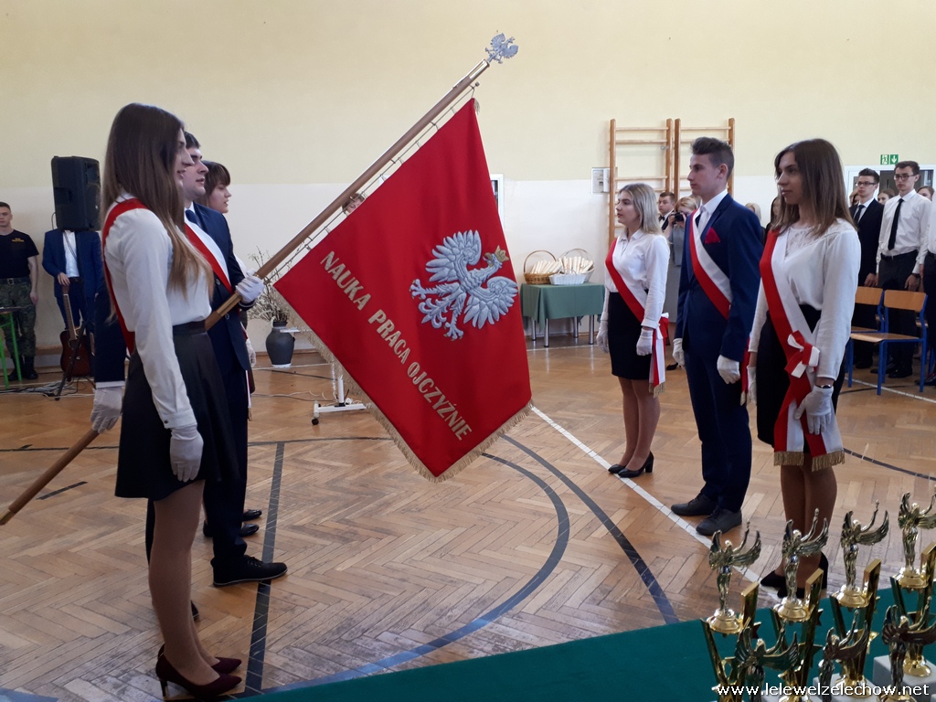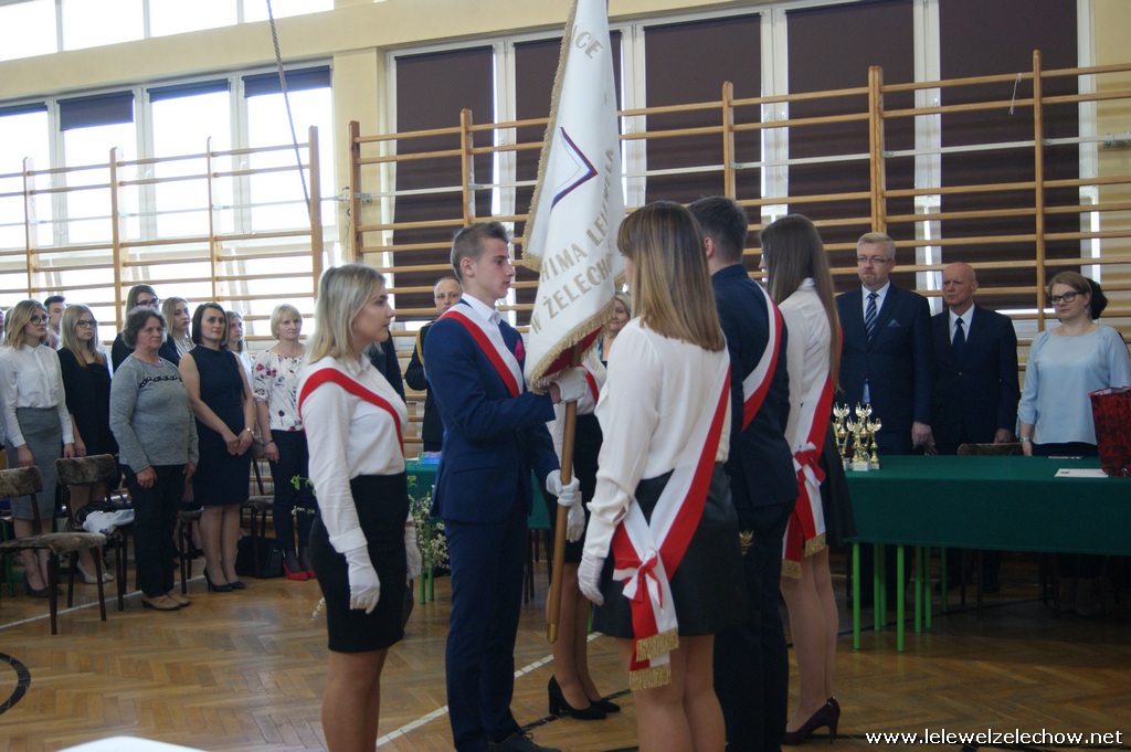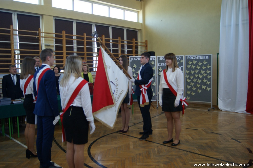 Tradycyjnie uroczystość rozpoczęła się od wprowadzenia sztandaru szkoły i odśpiewania hymnu państwowego. Następnie głos zabrała pani Dyrektor Regina Gromoł, która przywitała Gości, wychowawców i nauczycieli, rodziców, abiturientów i zarazem przyszłych maturzystów oraz całą społeczność szkolną. Główną częścią uroczystości było przekazanie sztandaru przez klasy III uczniom klas II. Reprezentanci klas wygłosili uroczystą rotę przysięgi. Tę część poprowadził pan Marcin Cichecki.