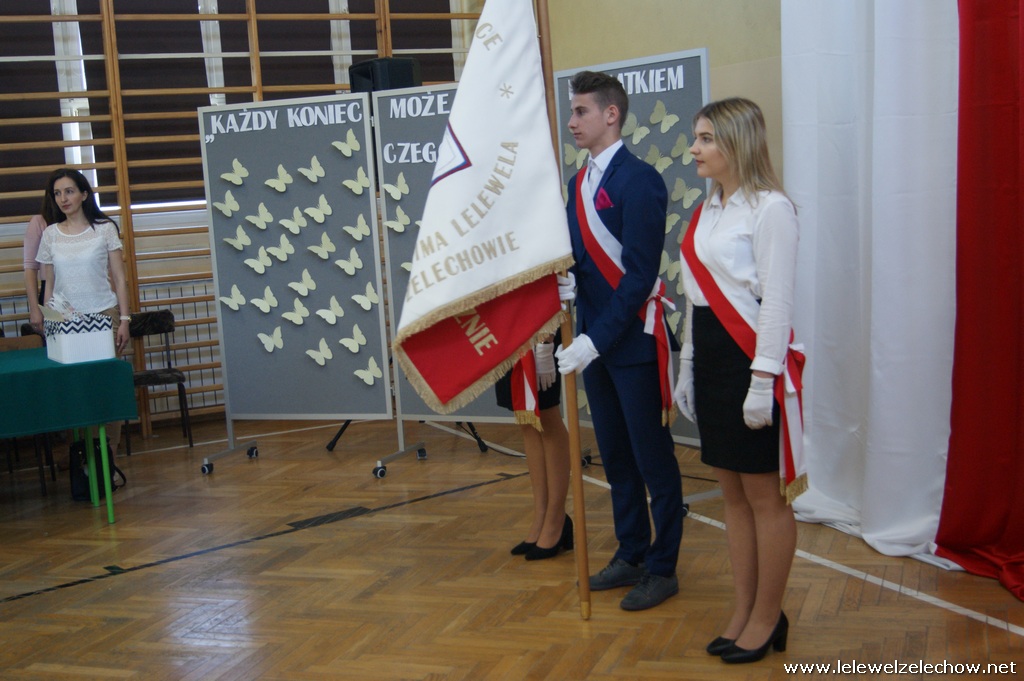 Po części oficjalnej rozpoczęła się część artystyczna przygotowana przez uczniów klas II. Młodzież przypomniała swoim programem miłe chwile spędzone przez maturzystów w liceum i złożyła życzenia powodzenia na maturze i w dalszym życiu.Nieodzownym elementem tej części uroczystości są tradycyjne już ,,Lelewele”, nagrody wręczane przez uczniów uczniom. Wyróżnienia za niebanalną działalność czy zachowanie co roku wzbudzają wiele radości. Na zakończenie uczniowie klas II wręczyli swoim starszym koleżankom i kolegom pamiątkowe listy gratulacyjne oraz długopisy ,,Matura 2019”.