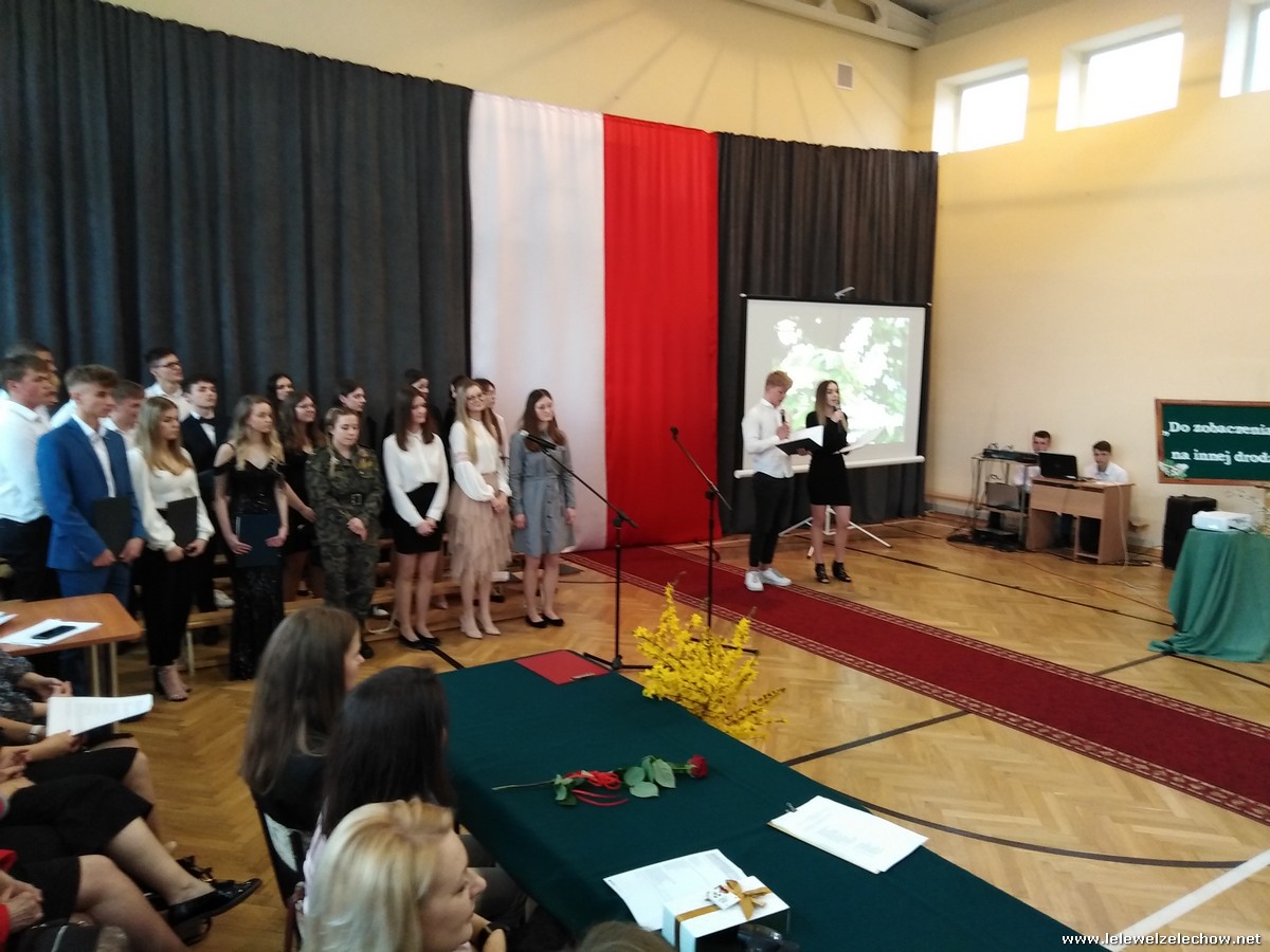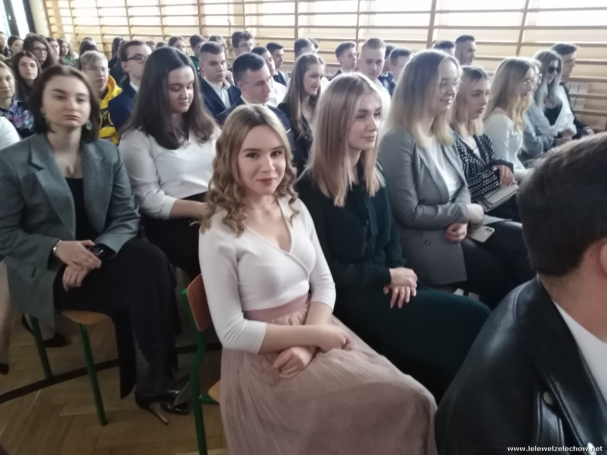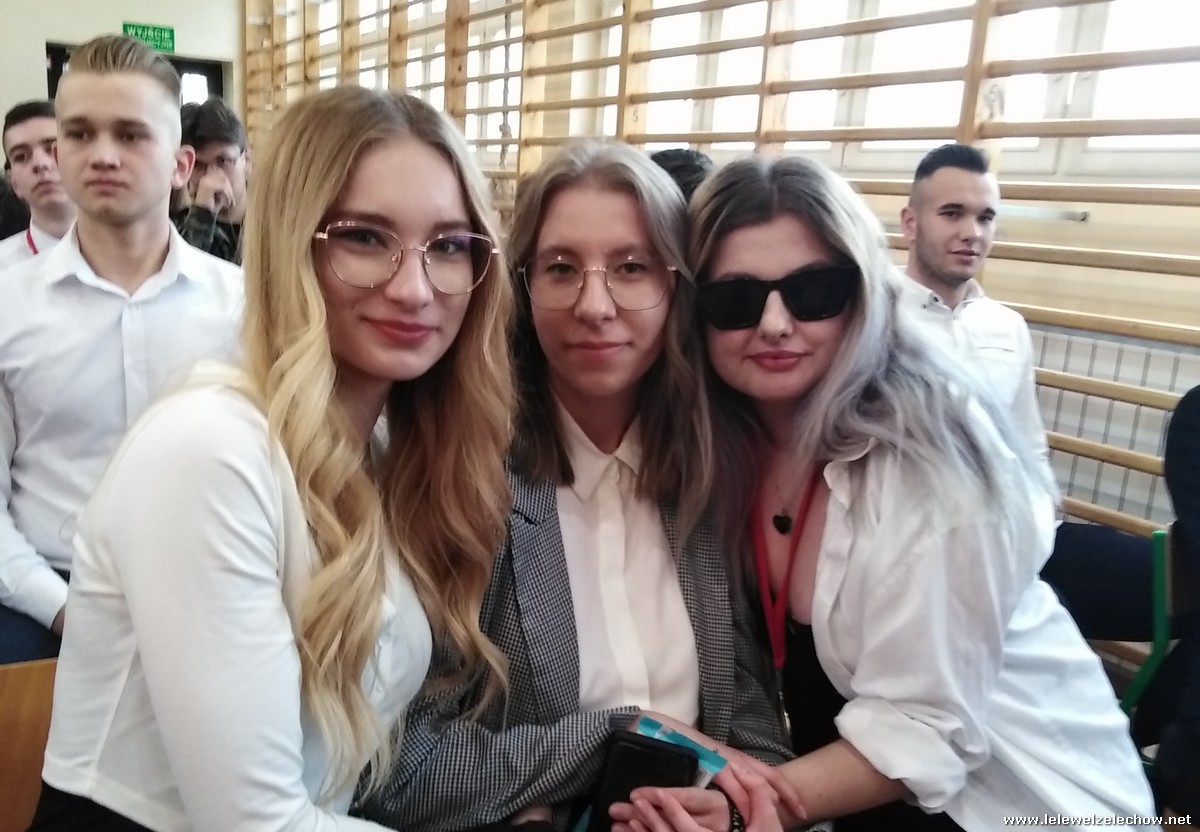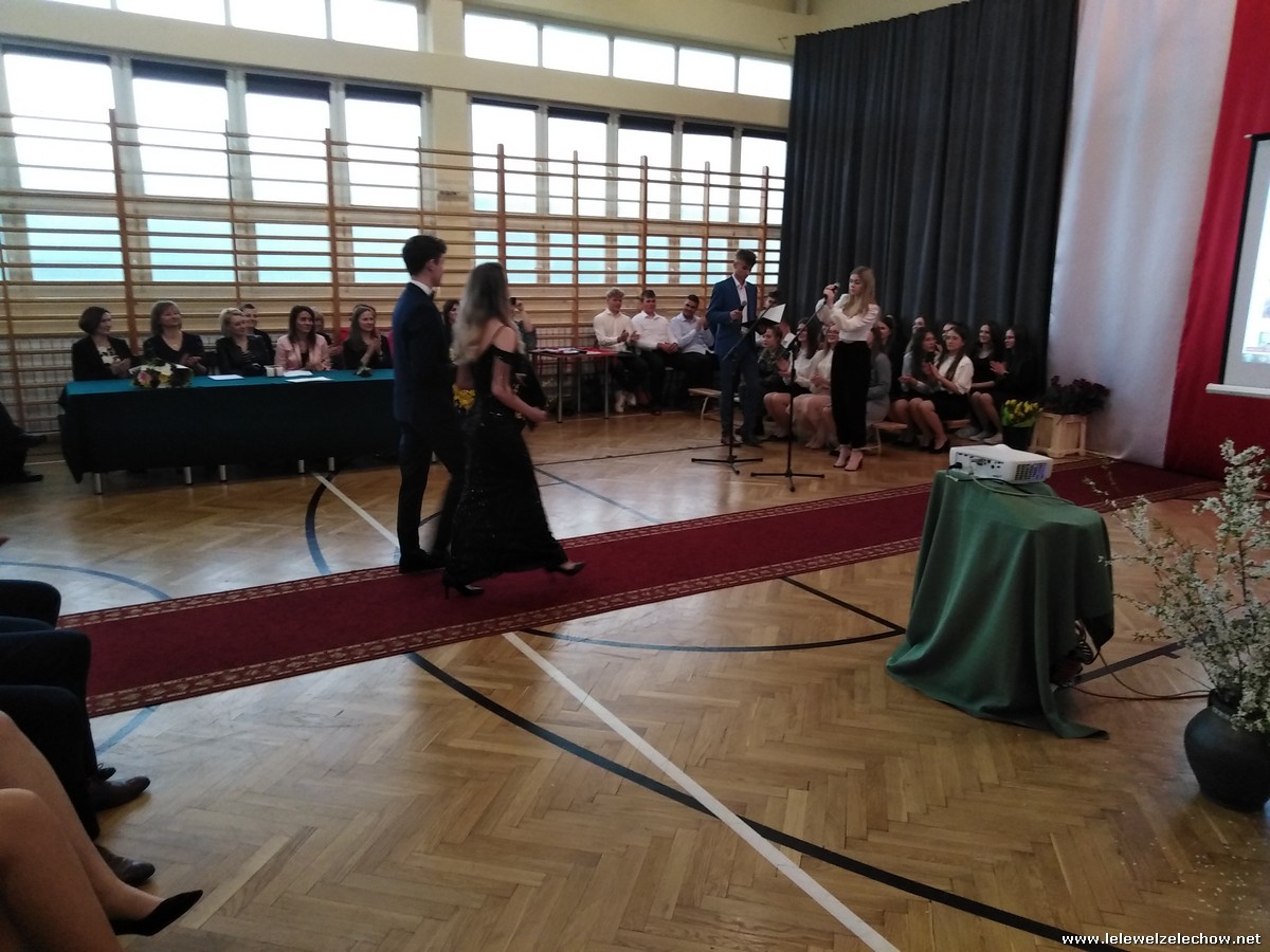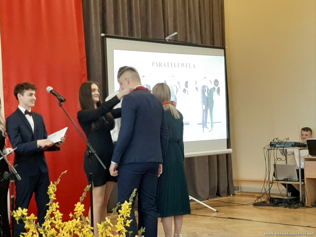 Klasy młodsze - czyli klasy III c i III d z humorem ale i pewną doza refleksji pożegnały swoje starsze koleżanki i starszych kolegów. Nie obyło się bez kilku porad przed maturą i życzeń na dalszy czas. Jednak największe emocje wzbudziła jak zawsze gala ,,Leleweli”- ciekawe nominacje i oczekiwane/ nieoczekiwane? wygrane wywoływały wiele uśmiechów tak wśród uczniów jak i nauczycieli.