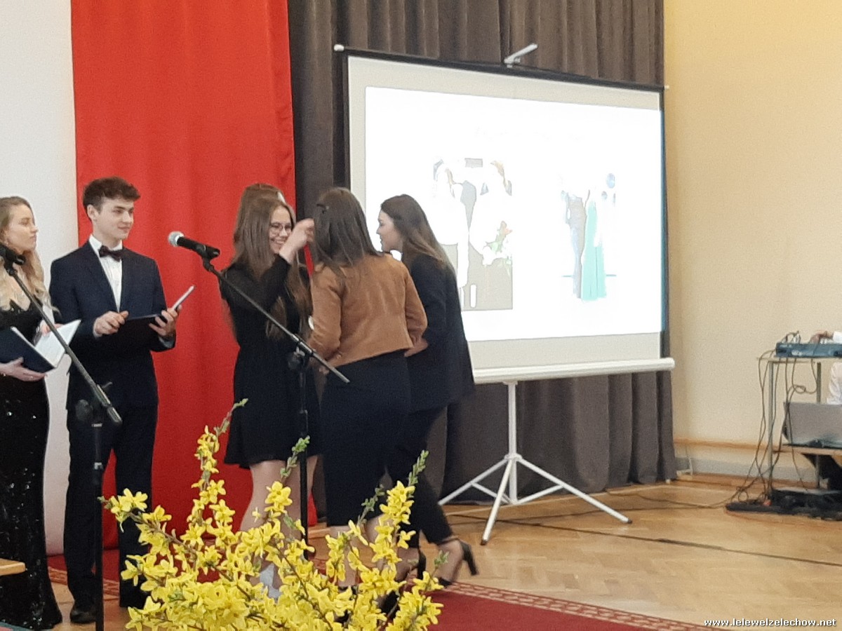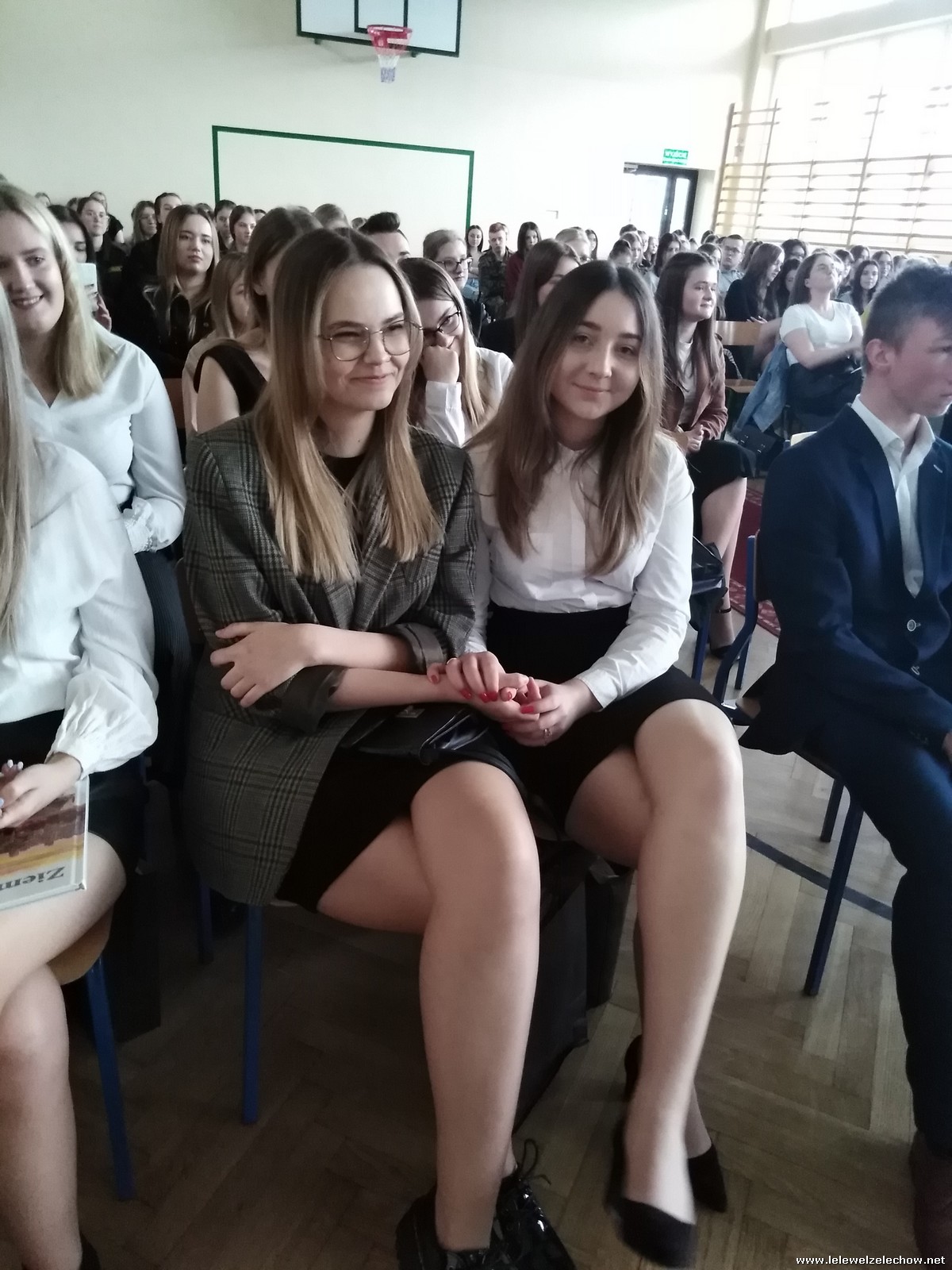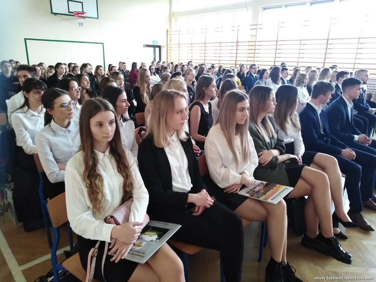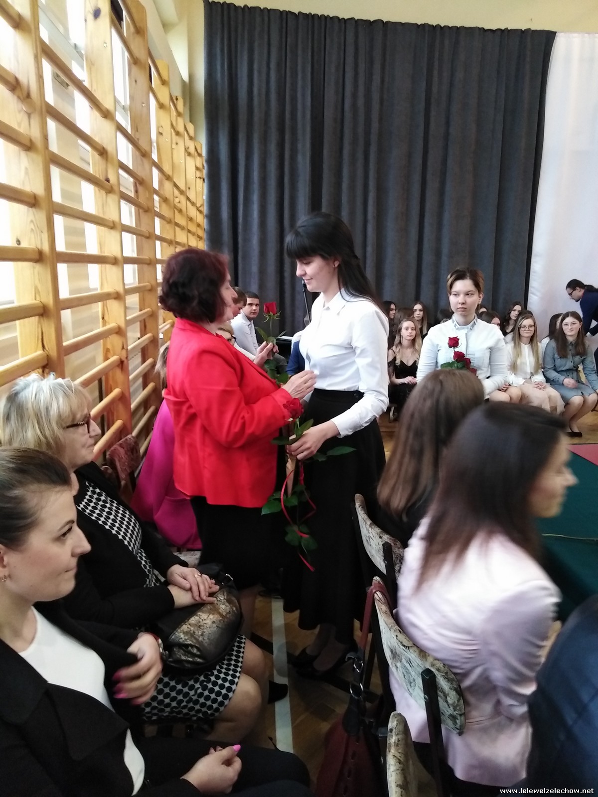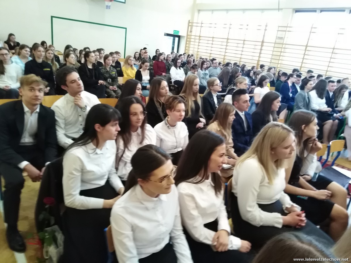Klasy młodsze - czyli klasy III c i III d z humorem ale i pewną doza refleksji pożegnały swoje starsze koleżanki i starszych kolegów. Nie obyło się bez kilku porad przed maturą i życzeń na dalszy czas. Jednak największe emocje wzbudziła jak zawsze gala ,,Leleweli”- ciekawe nominacje i oczekiwane/ nieoczekiwane? wygrane wywoływały wiele uśmiechów tak wśród uczniów jak i nauczycieli.