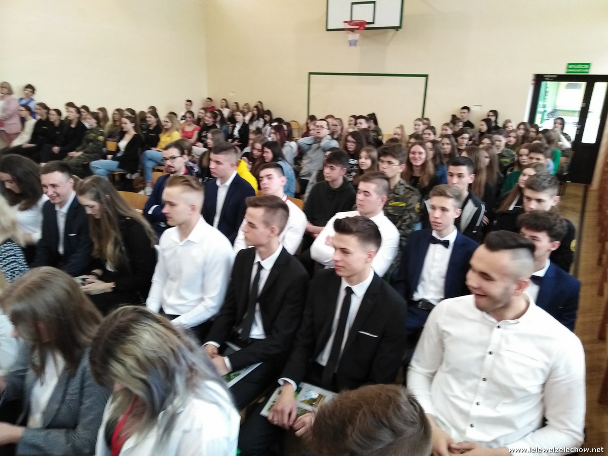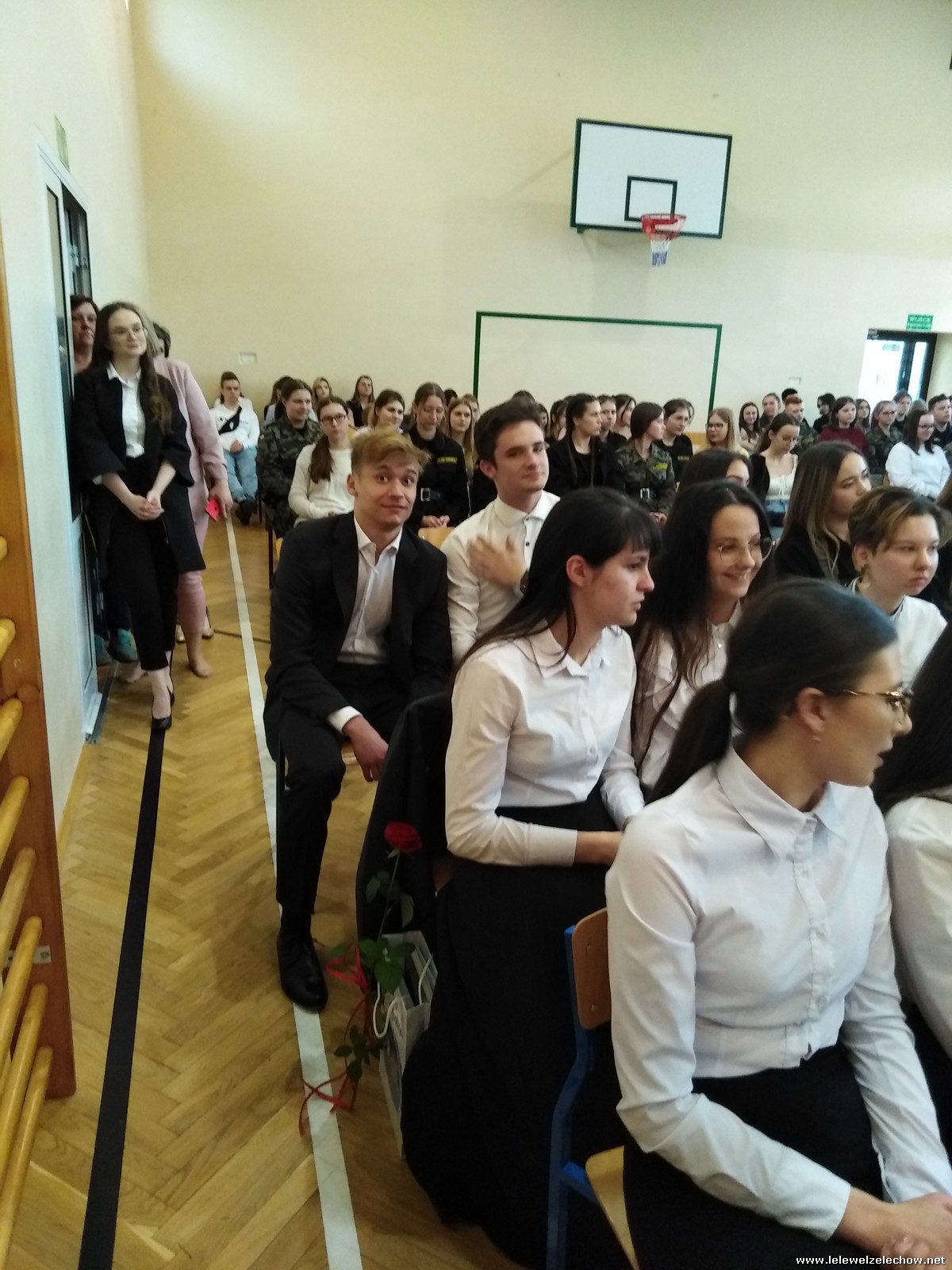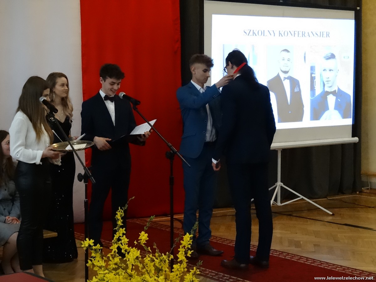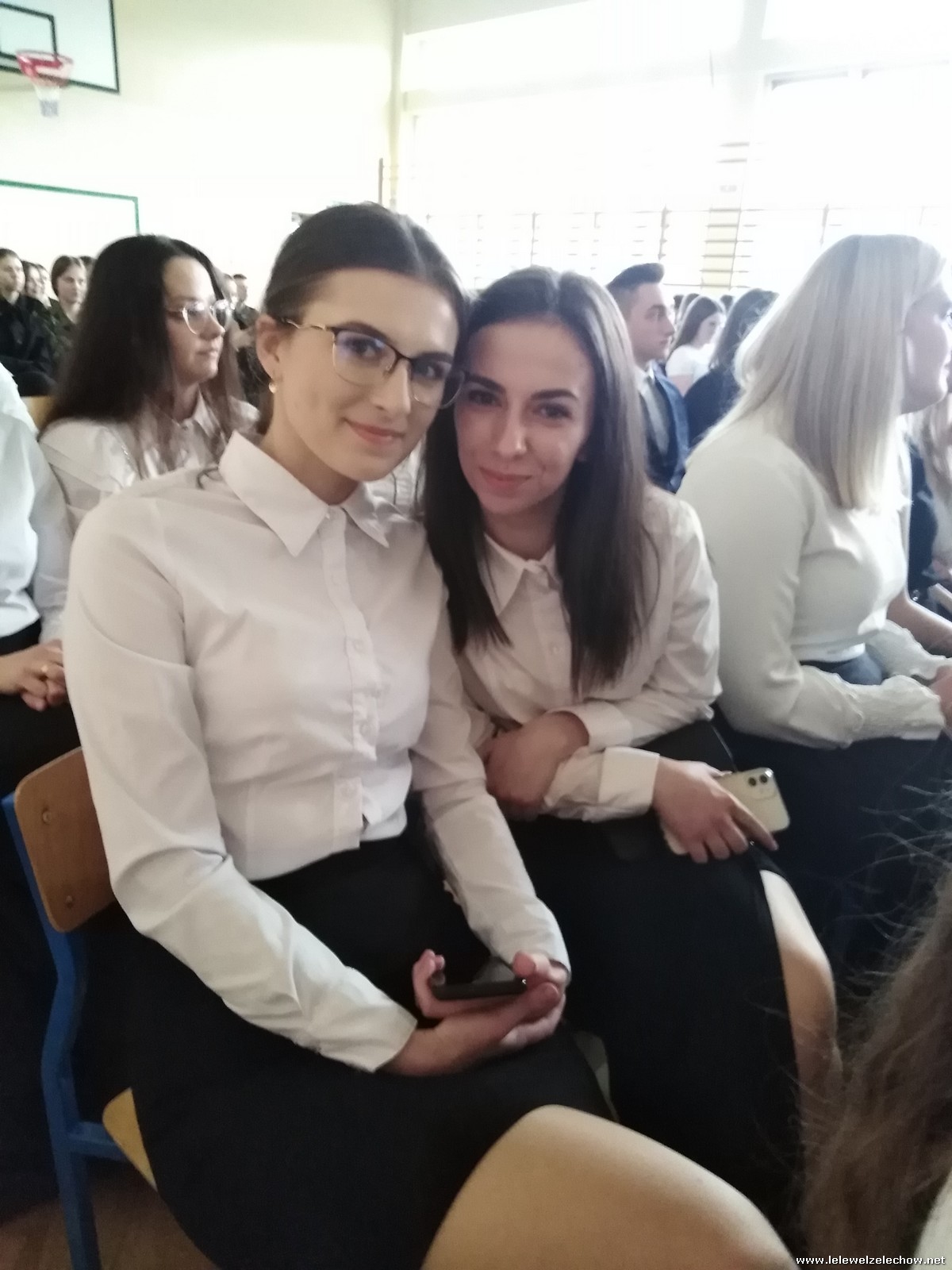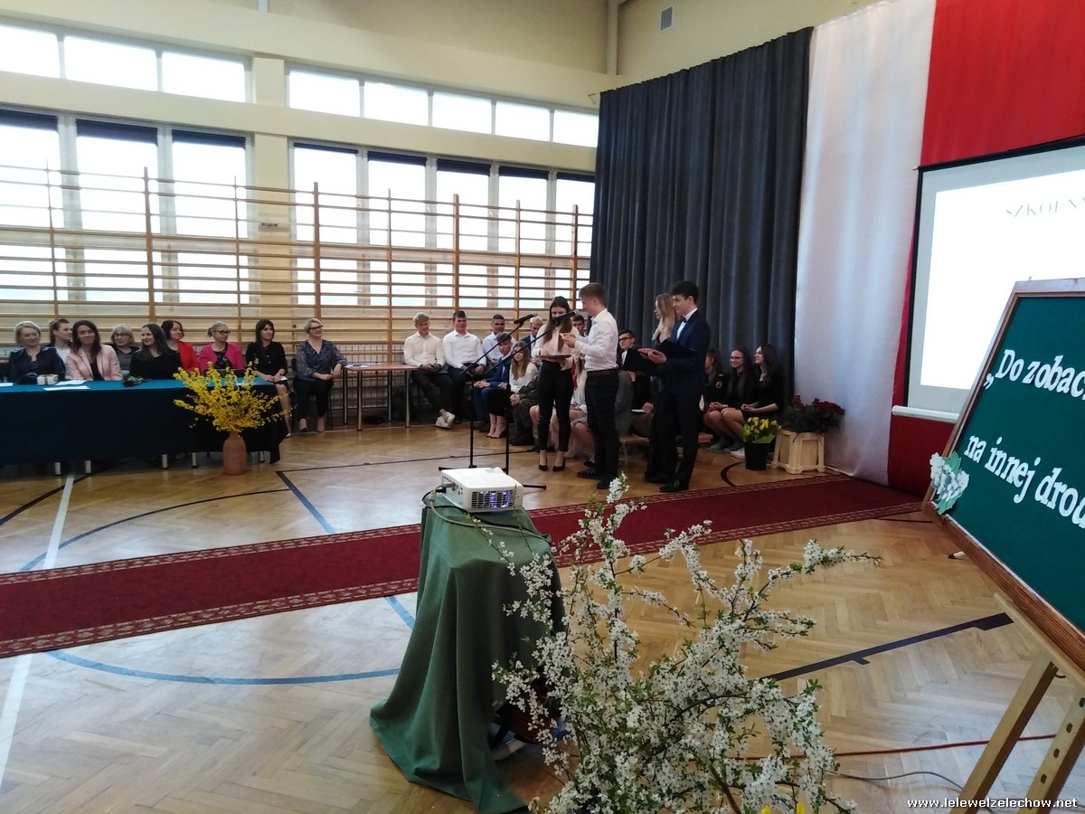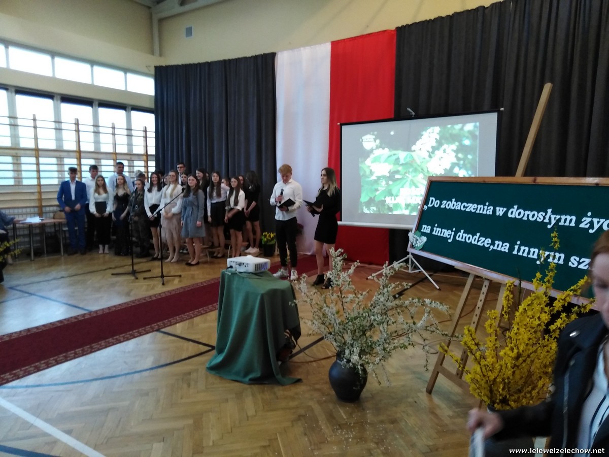 Klasy młodsze - czyli klasy III c i III d z humorem ale i pewną doza refleksji pożegnały swoje starsze koleżanki i starszych kolegów. Nie obyło się bez kilku porad przed maturą i życzeń na dalszy czas. Jednak największe emocje wzbudziła jak zawsze gala ,,Leleweli”- ciekawe nominacje i oczekiwane/ nieoczekiwane? wygrane wywoływały wiele uśmiechów tak wśród uczniów jak i nauczycieli.