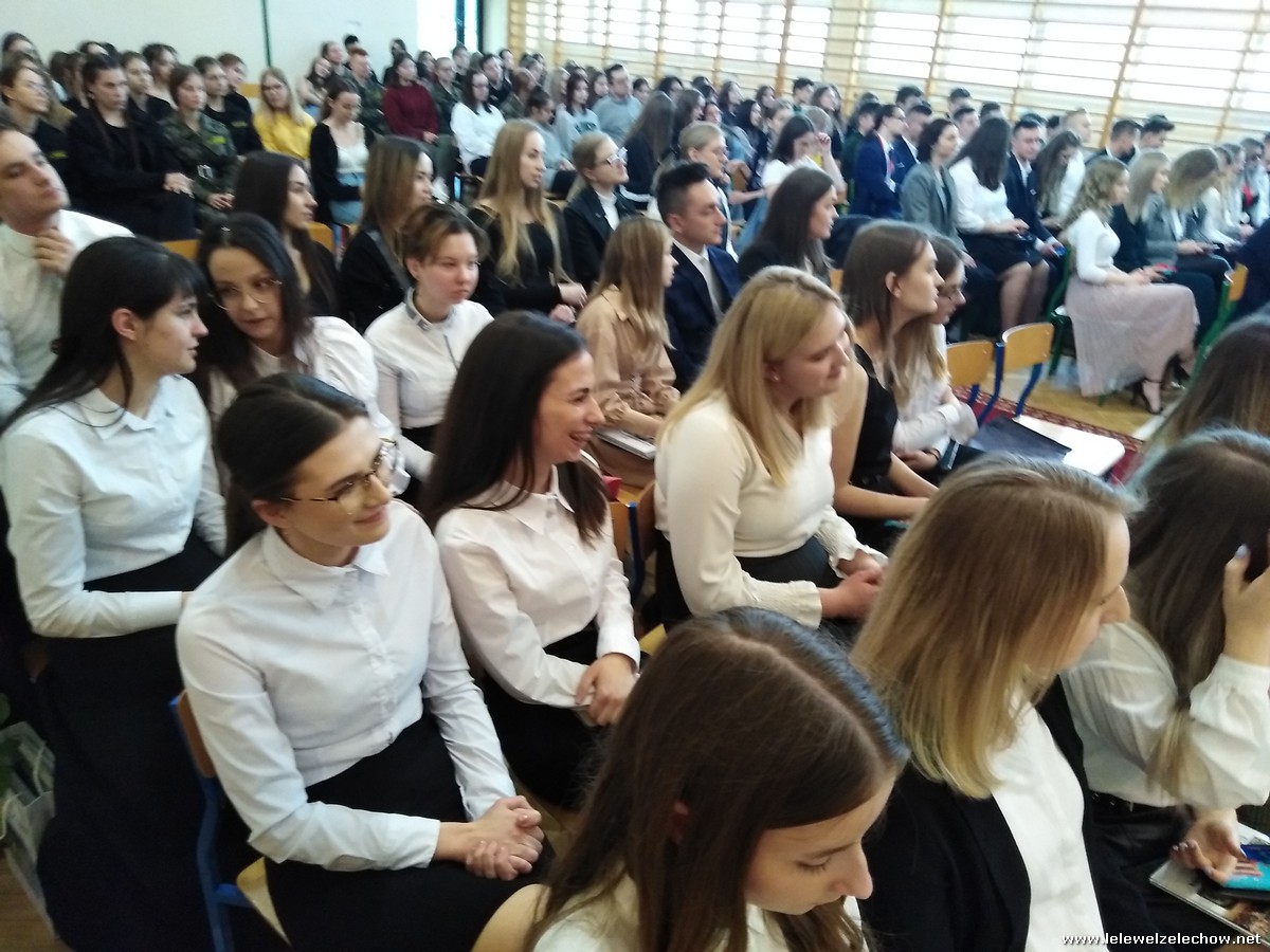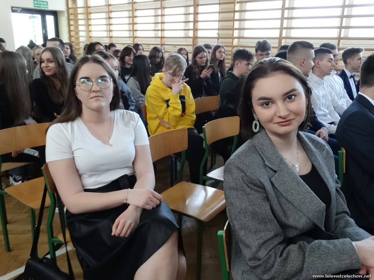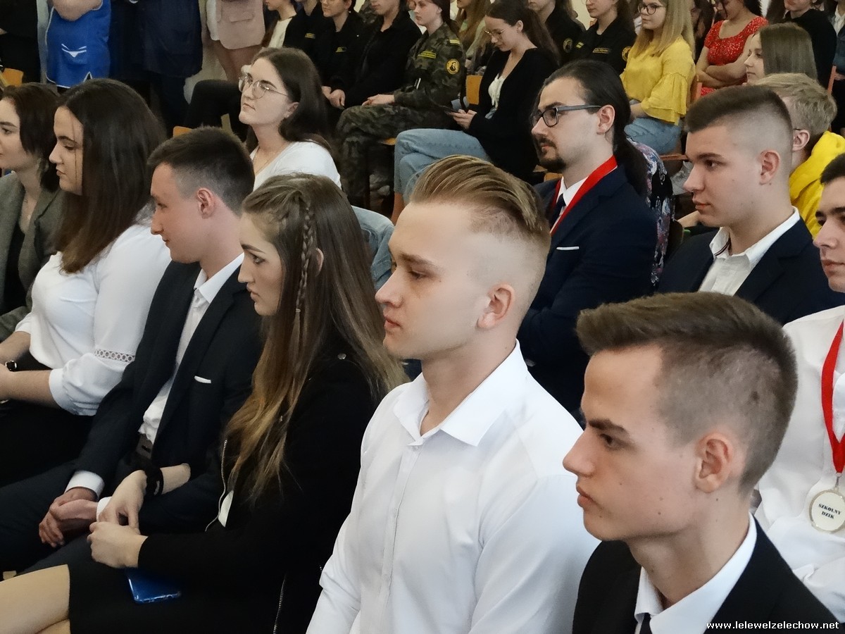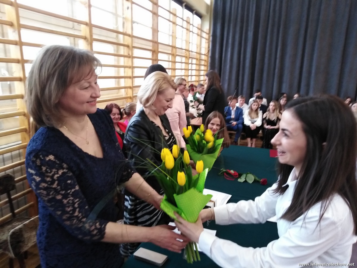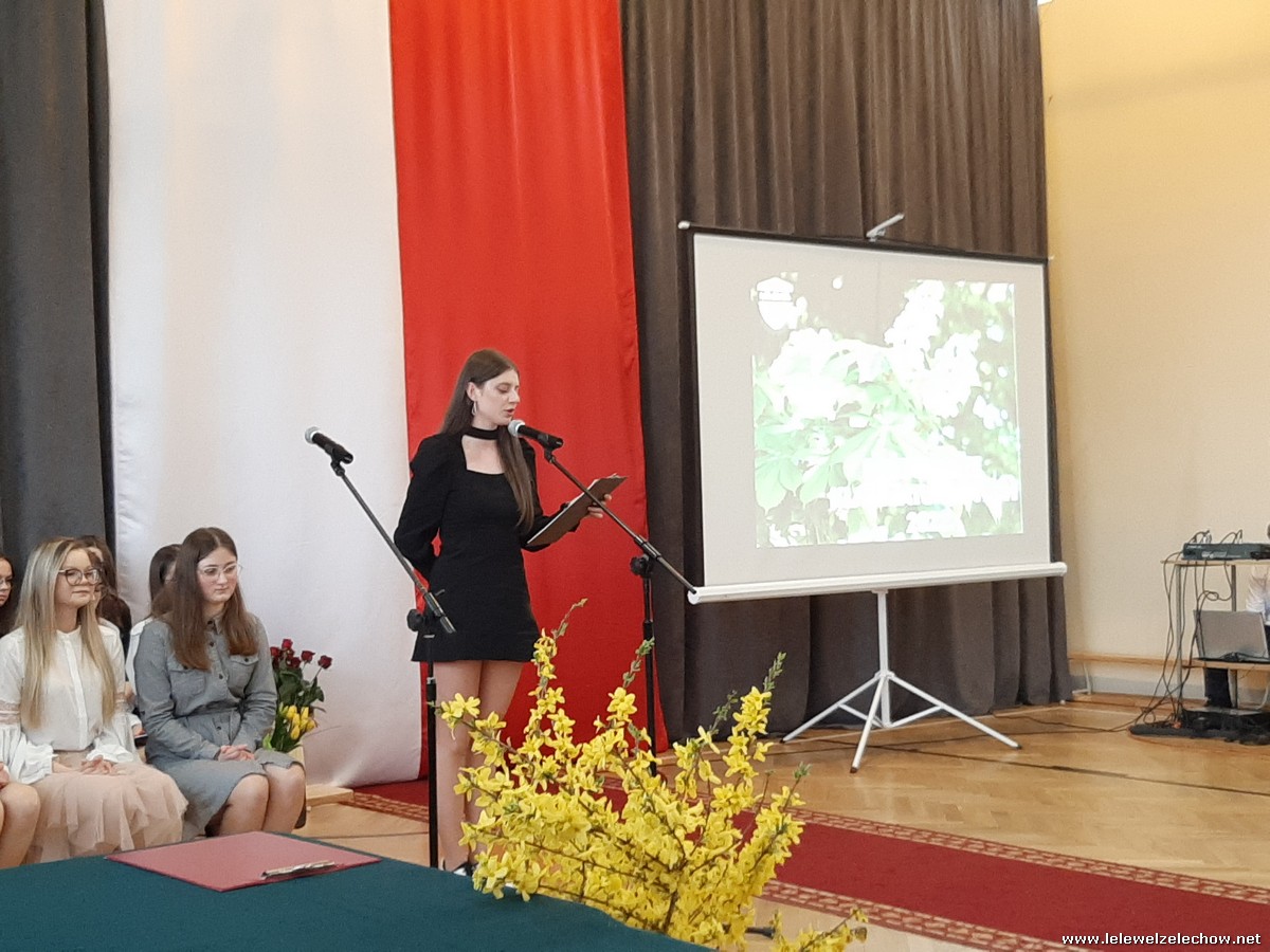 Klasy młodsze - czyli klasy III c i III d z humorem ale i pewną doza refleksji pożegnały swoje starsze koleżanki i starszych kolegów. Nie obyło się bez kilku porad przed maturą i życzeń na dalszy czas. Jednak największe emocje wzbudziła jak zawsze gala ,,Leleweli”- ciekawe nominacje i oczekiwane/ nieoczekiwane? wygrane wywoływały wiele uśmiechów tak wśród uczniów jak i nauczycieli.