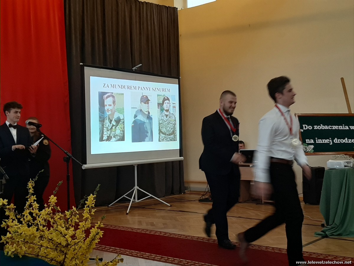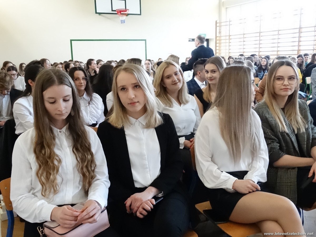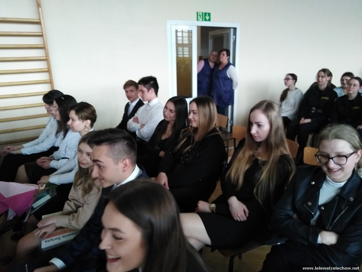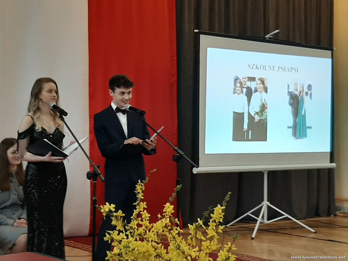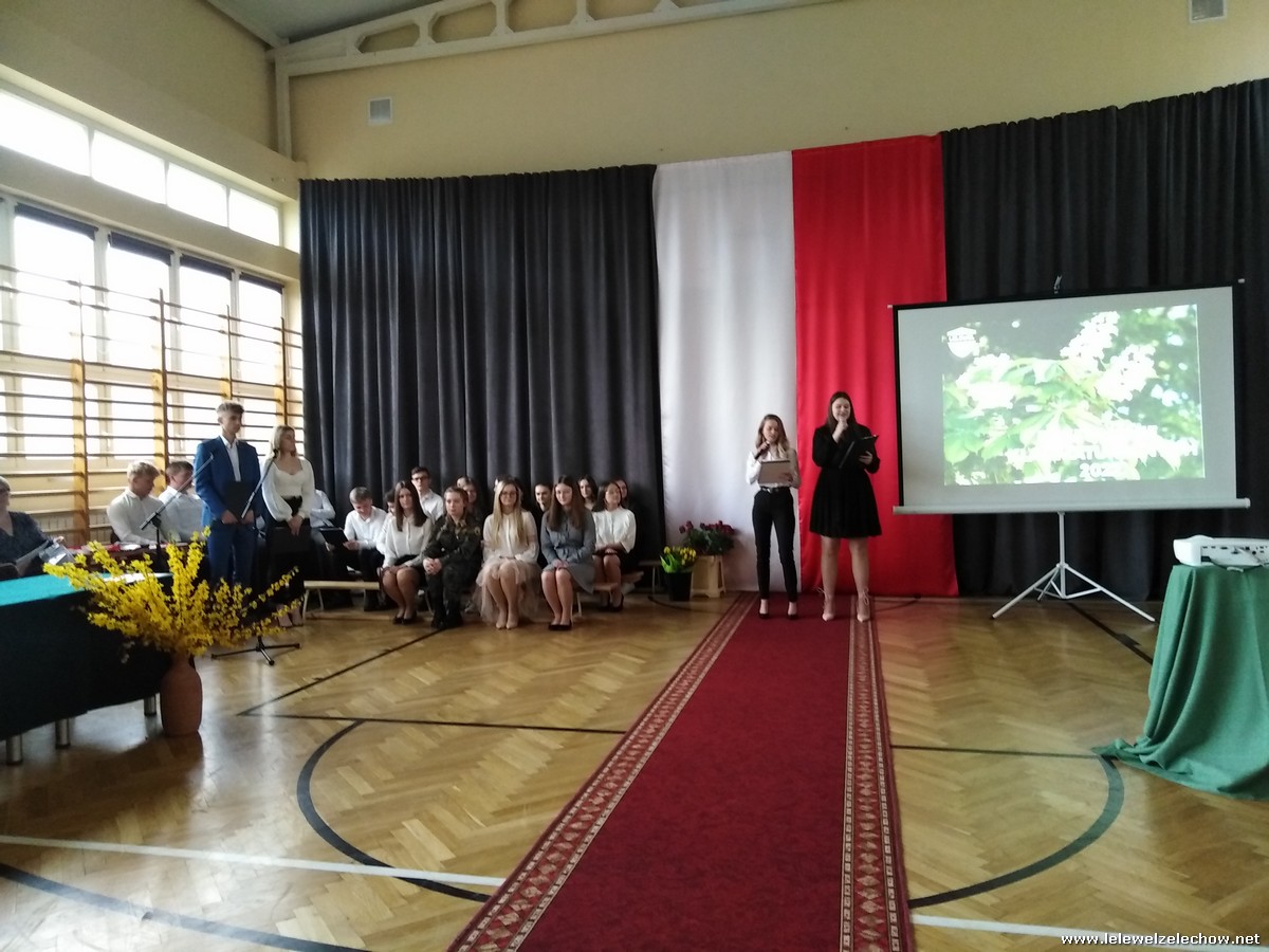Klasy młodsze - czyli klasy III c i III d z humorem ale i pewną doza refleksji pożegnały swoje starsze koleżanki i starszych kolegów. Nie obyło się bez kilku porad przed maturą i życzeń na dalszy czas. Jednak największe emocje wzbudziła jak zawsze gala ,,Leleweli”- ciekawe nominacje i oczekiwane/ nieoczekiwane? wygrane wywoływały wiele uśmiechów tak wśród uczniów jak i nauczycieli.