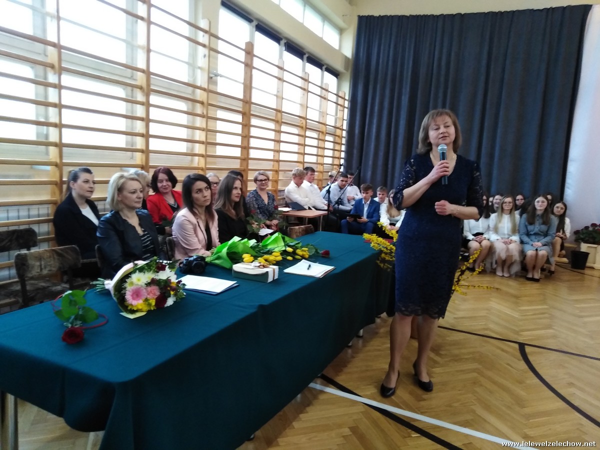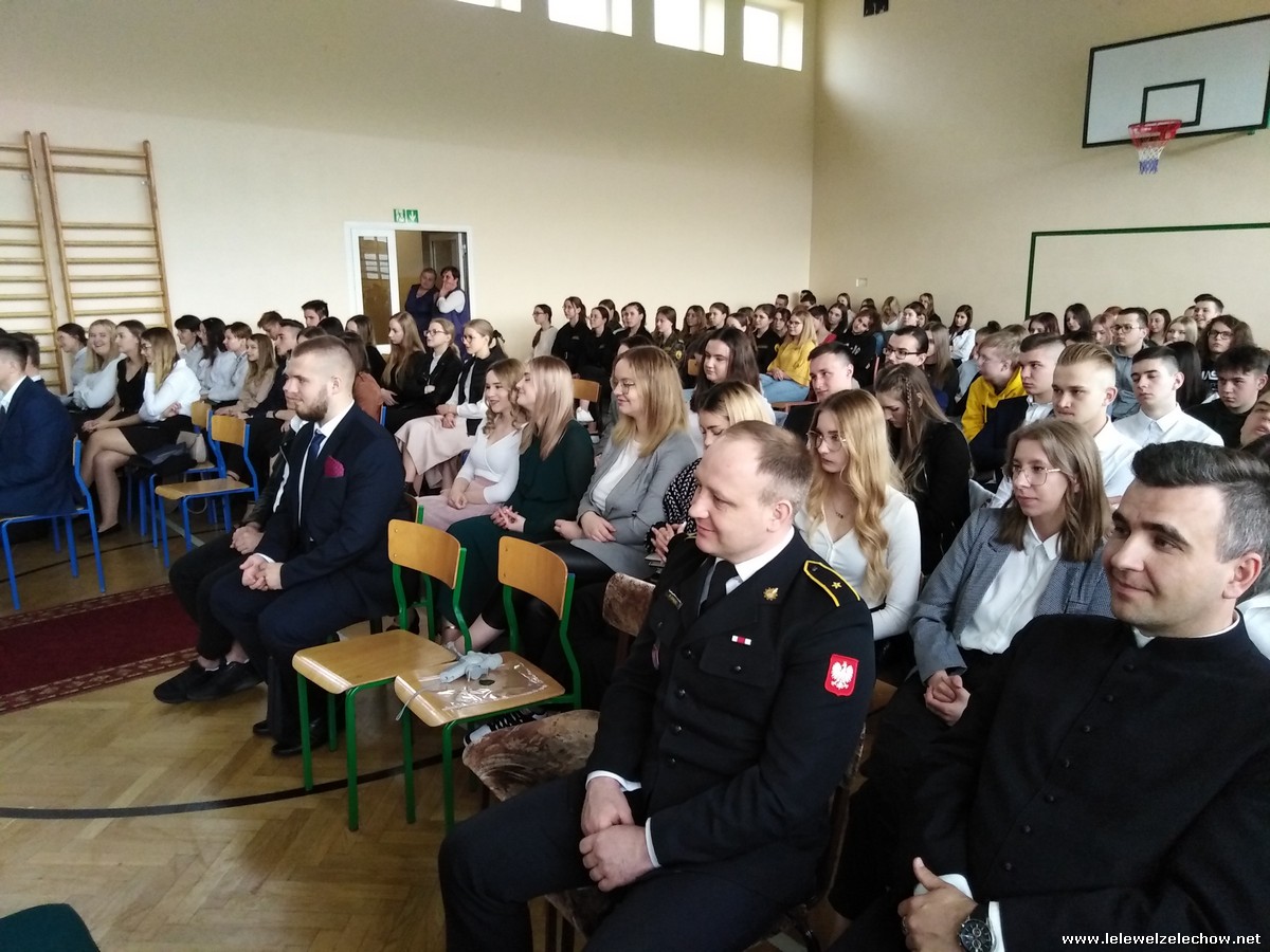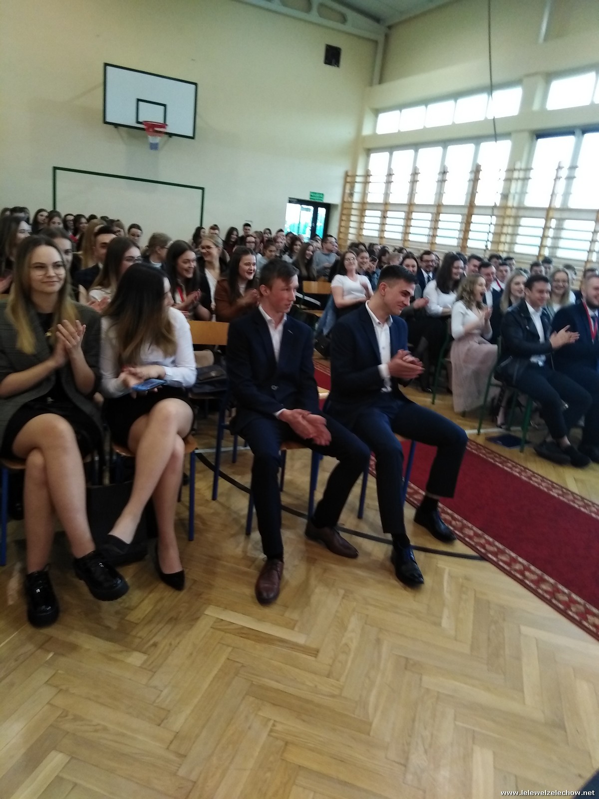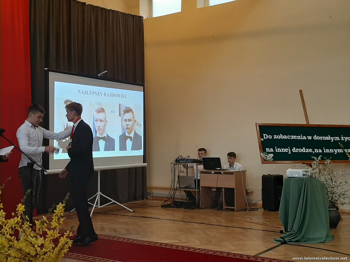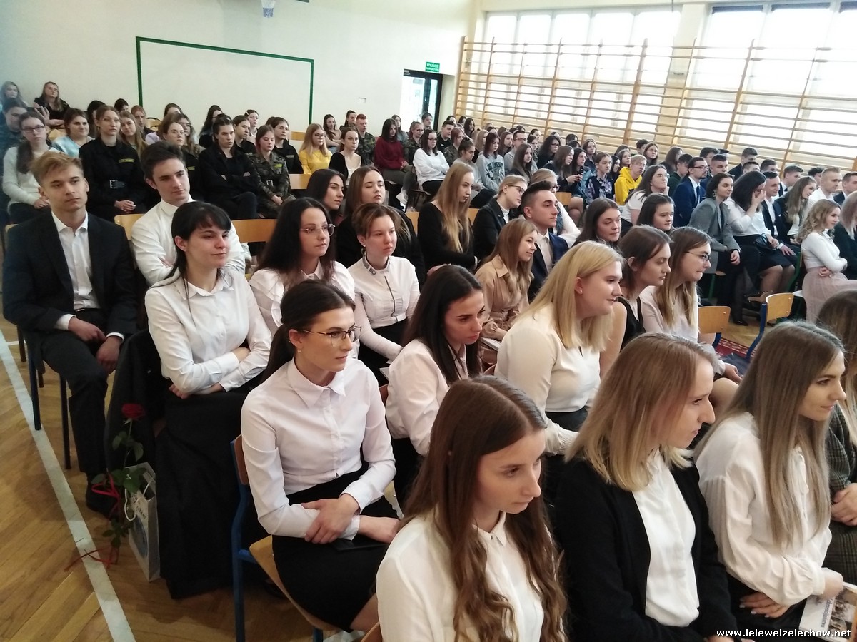 Klasy młodsze - czyli klasy III c i III d z humorem ale i pewną doza refleksji pożegnały swoje starsze koleżanki i starszych kolegów. Nie obyło się bez kilku porad przed maturą i życzeń na dalszy czas. Jednak największe emocje wzbudziła jak zawsze gala ,,Leleweli”- ciekawe nominacje i oczekiwane/ nieoczekiwane? wygrane wywoływały wiele uśmiechów tak wśród uczniów jak i nauczycieli.