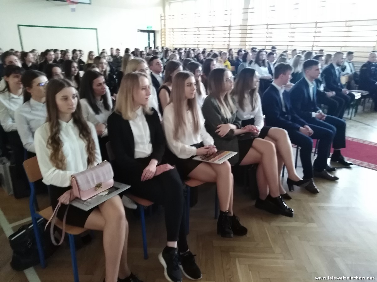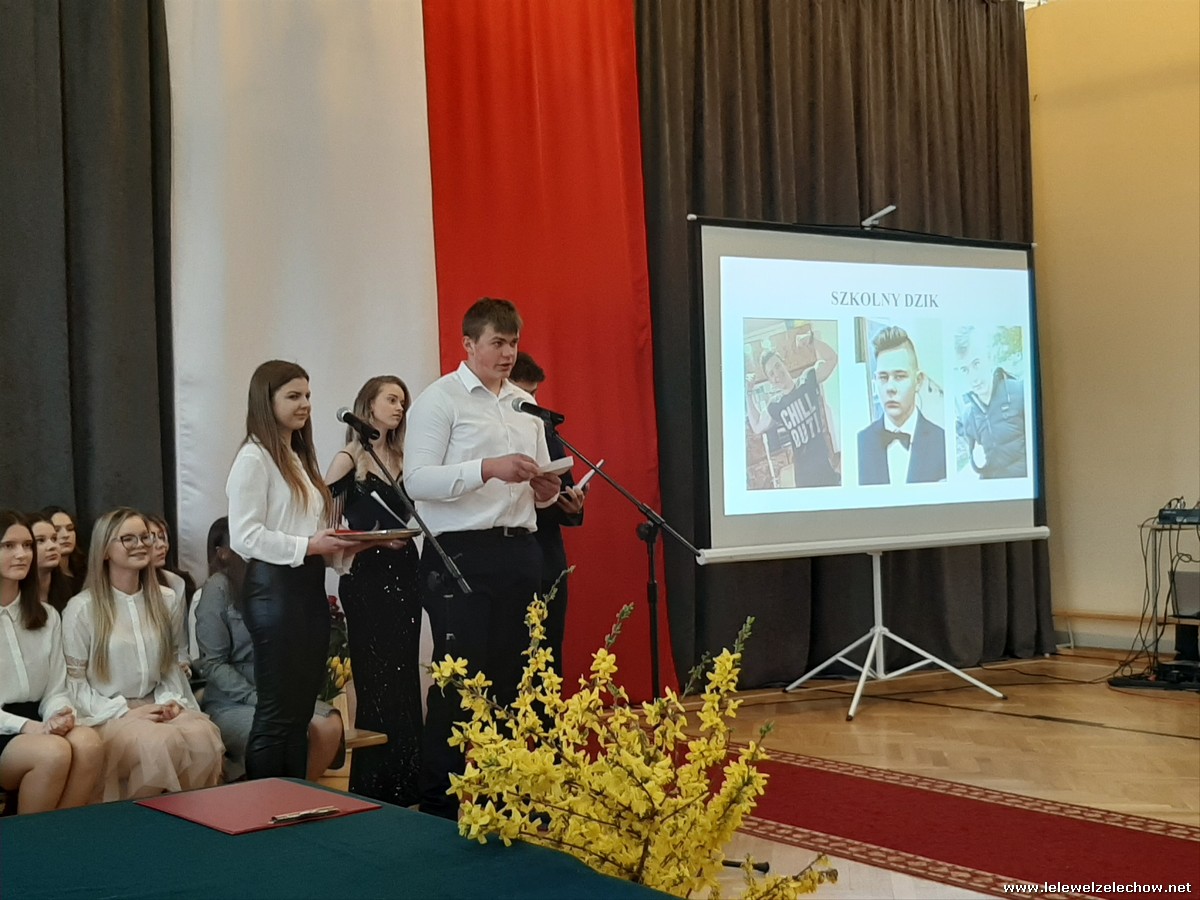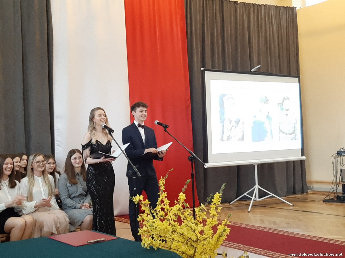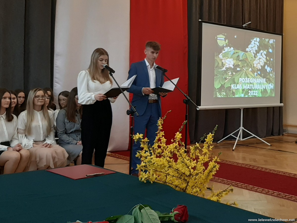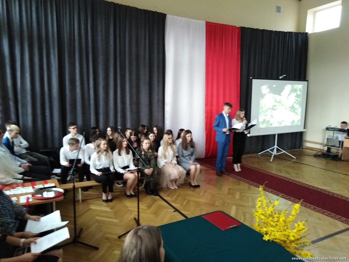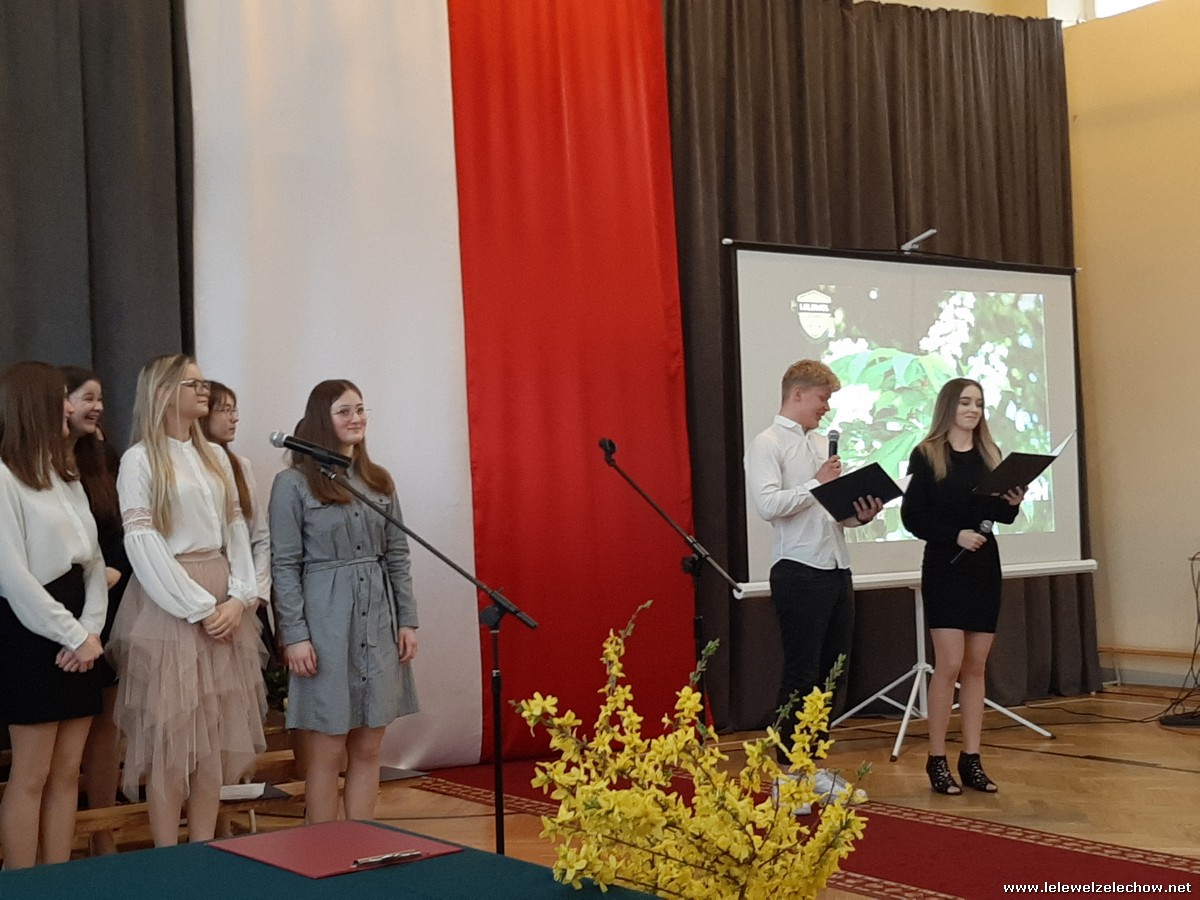 Klasy młodsze - czyli klasy III c i III d z humorem ale i pewną doza refleksji pożegnały swoje starsze koleżanki i starszych kolegów. Nie obyło się bez kilku porad przed maturą i życzeń na dalszy czas. Jednak największe emocje wzbudziła jak zawsze gala ,,Leleweli”- ciekawe nominacje i oczekiwane/ nieoczekiwane? wygrane wywoływały wiele uśmiechów tak wśród uczniów jak i nauczycieli.