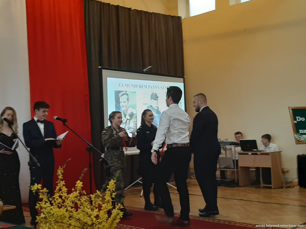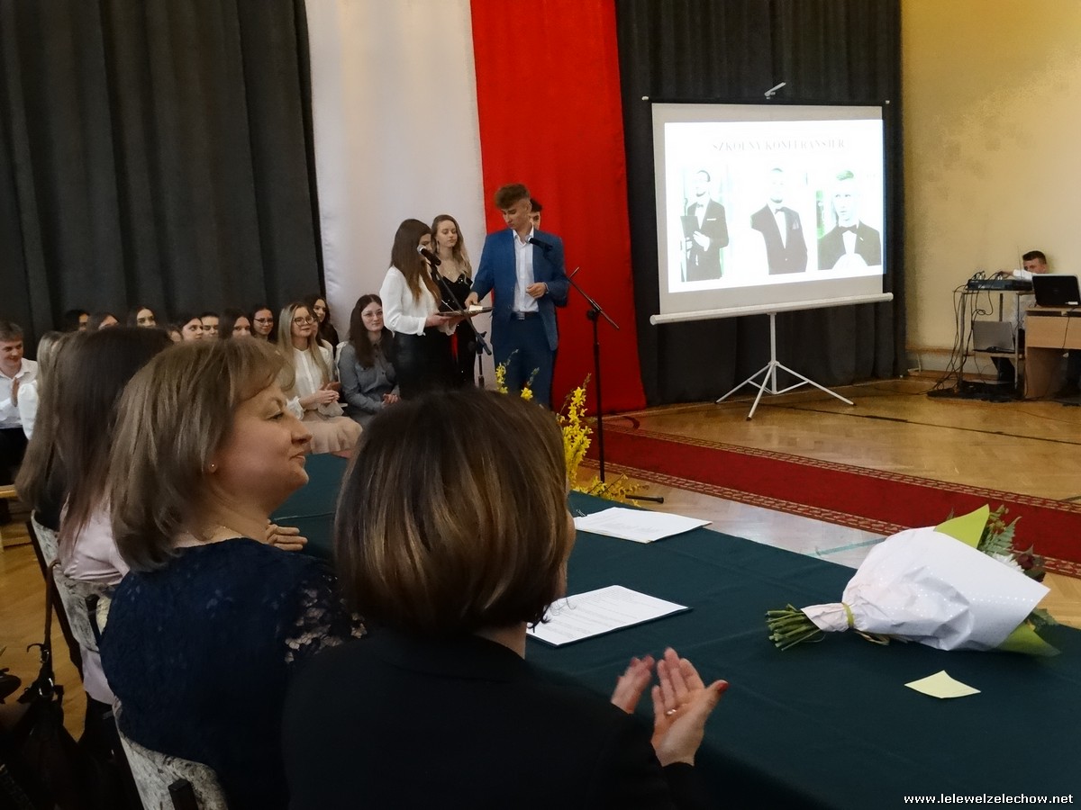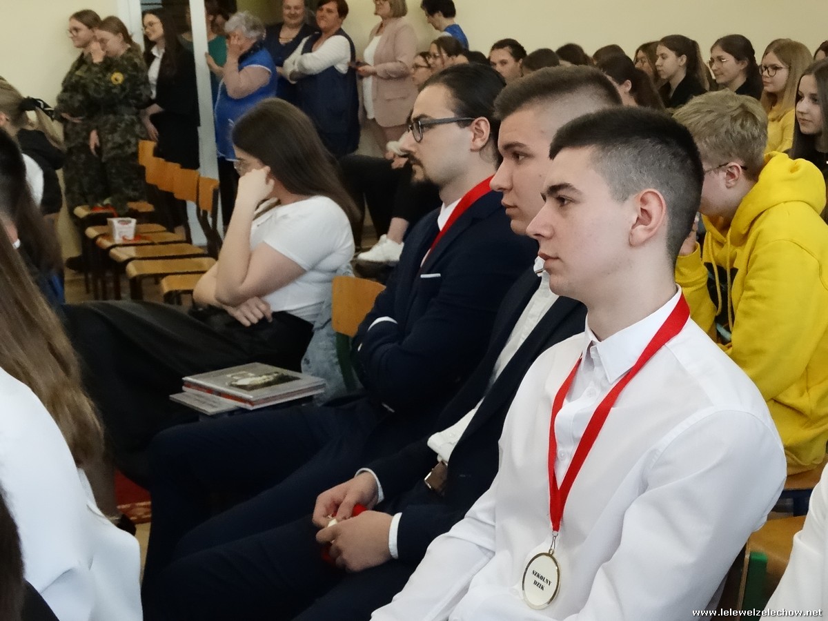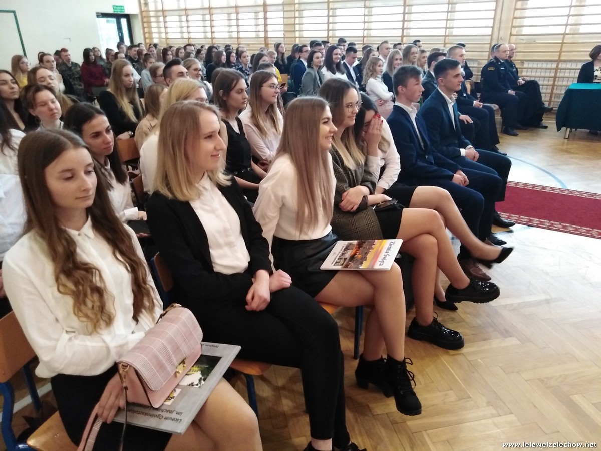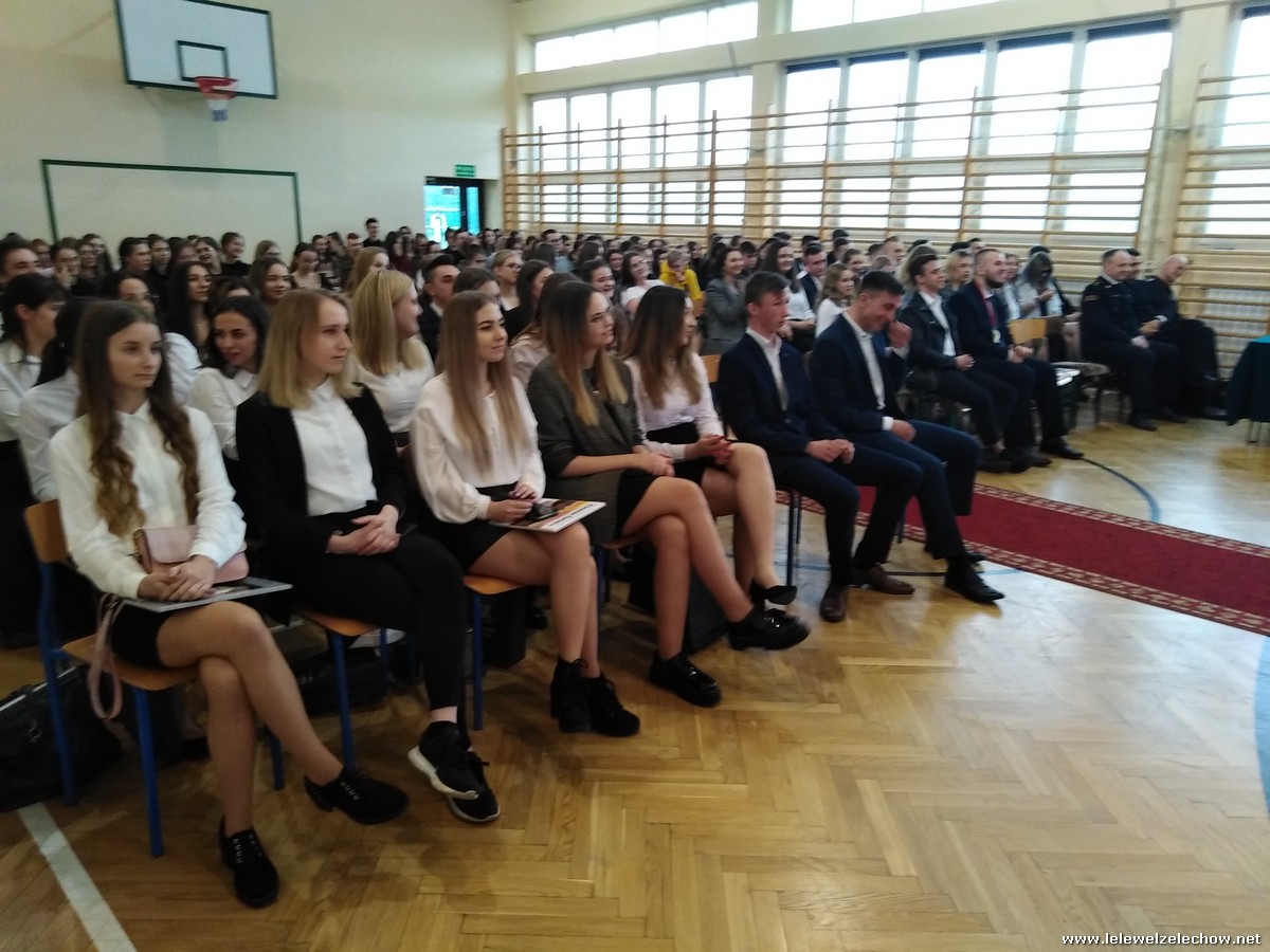 Klasy młodsze - czyli klasy III c i III d z humorem ale i pewną doza refleksji pożegnały swoje starsze koleżanki i starszych kolegów. Nie obyło się bez kilku porad przed maturą i życzeń na dalszy czas. Jednak największe emocje wzbudziła jak zawsze gala ,,Leleweli”- ciekawe nominacje i oczekiwane/ nieoczekiwane? wygrane wywoływały wiele uśmiechów tak wśród uczniów jak i nauczycieli.