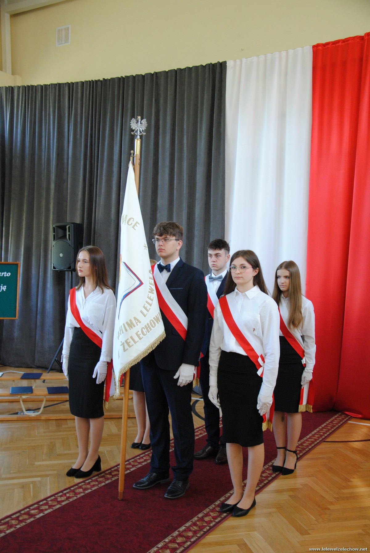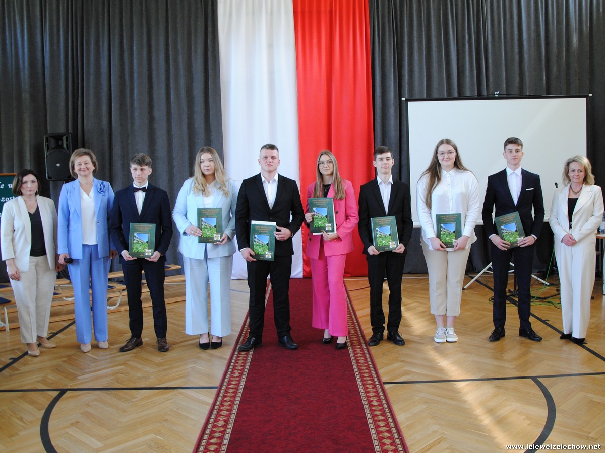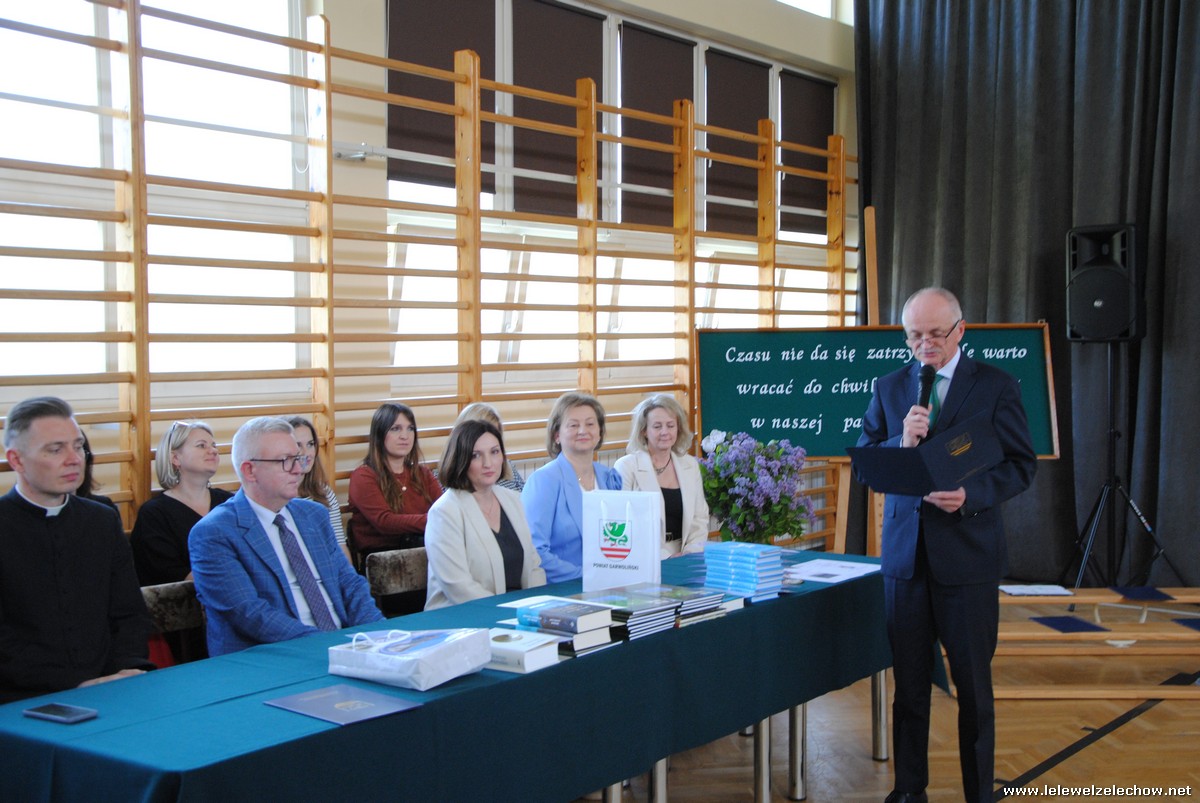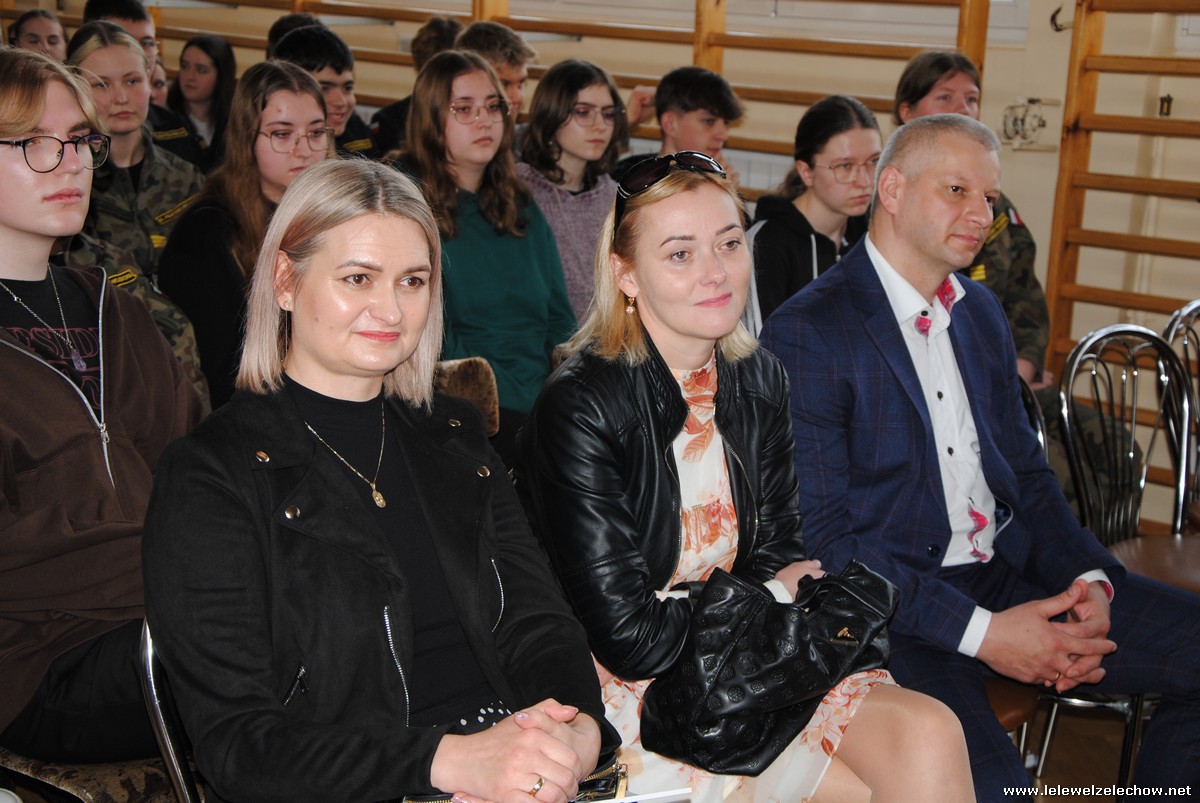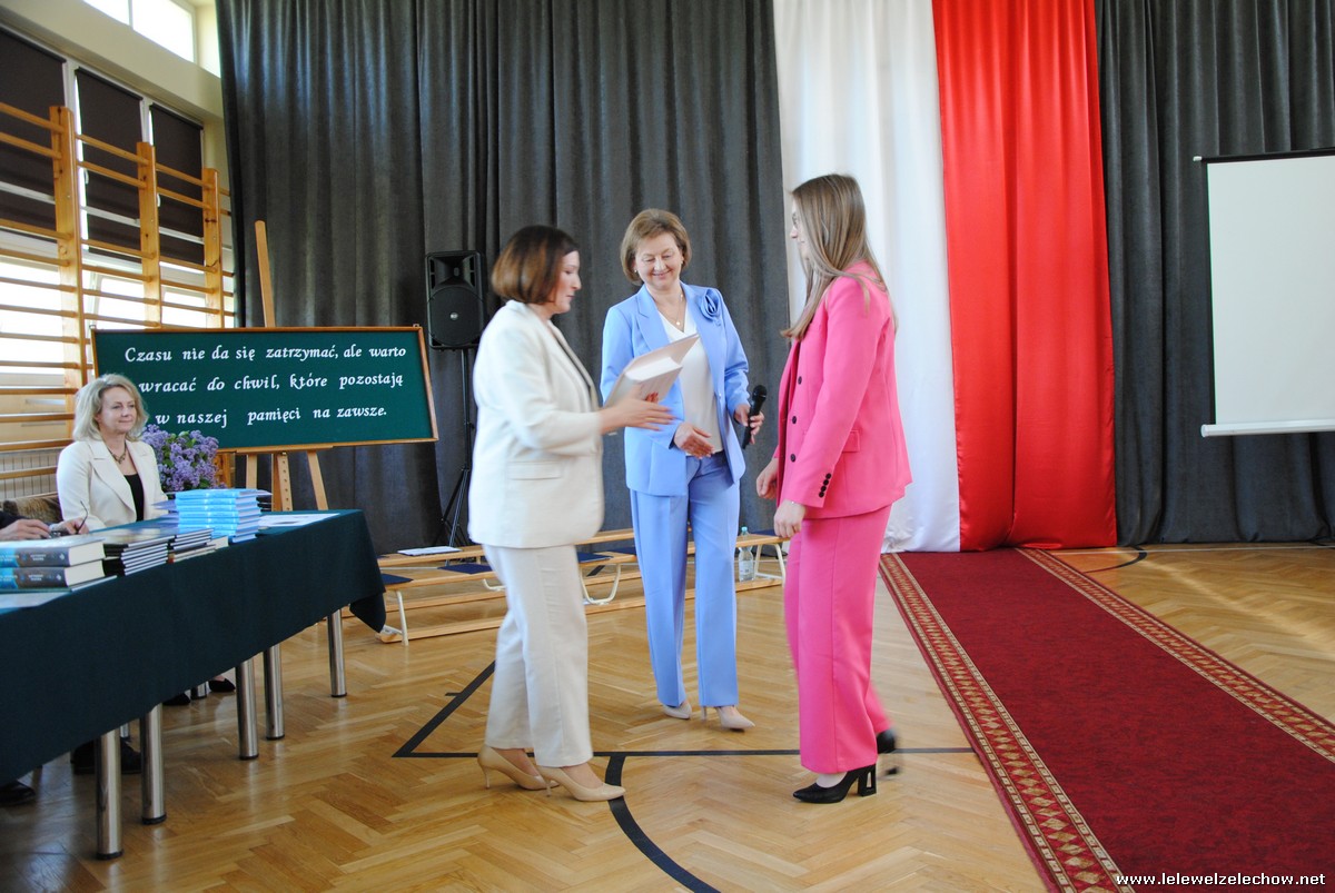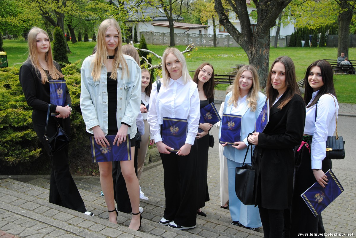 Głos zabrali również zaproszeni goście. Pan Krzysztof Ośka – członek zarządu Powiatu Garwolińskiego odczytał list pana Mirosława Walickiego - Starosty Powiatu Garwolińskiego, skierował do uczniów ciepłe słowa oraz wręczył nagrodę dla najlepszej uczennicy – Oliwii Długaszek. Pan Łukasz Bogusz – Burmistrz Żelechowa w swoim wystąpieniu podkreślił, że też jest absolwentem Lelewela i z sentymentem wspomina czas spędzony w tej szkole. Życzył maturzystom wielu sukcesów w dorosłym życiu oraz powodzenia na egzaminach maturalnych. Z rąk Pana Burmistrza nagrodę otrzymała Maria Majek za udział w uroczystościach lokalnych i godne reprezentowanie Gminy Żelechów.