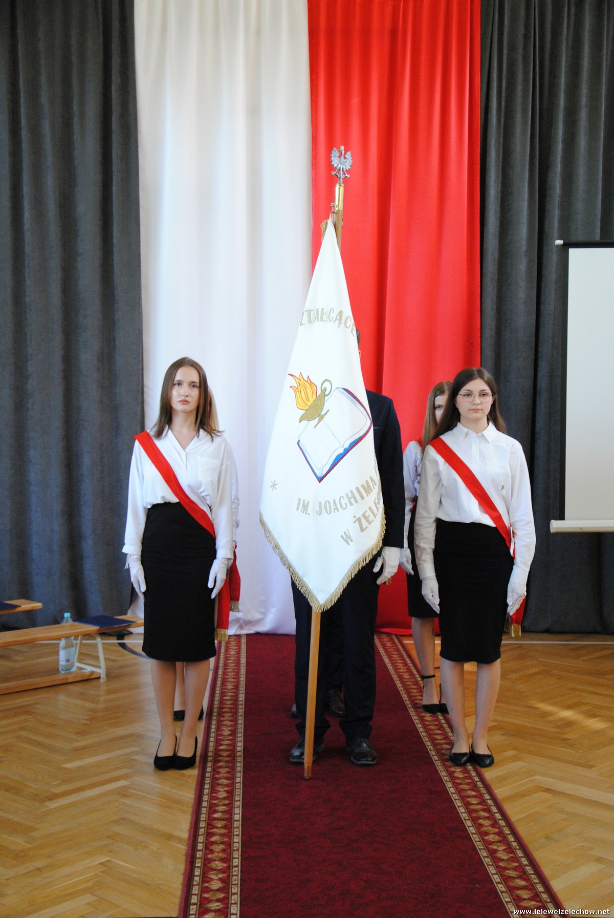 Po odśpiewaniu hymnu czwartoklasiści przekazali sztandar trzecioklasistom, którzy wypowiadając słowa przysięgi zobowiązali się do godnego reprezentowania szkoły i dbania o jej dobre imię.