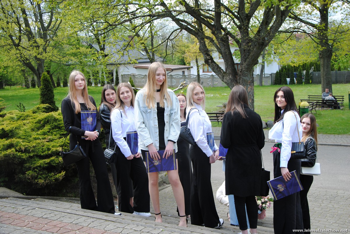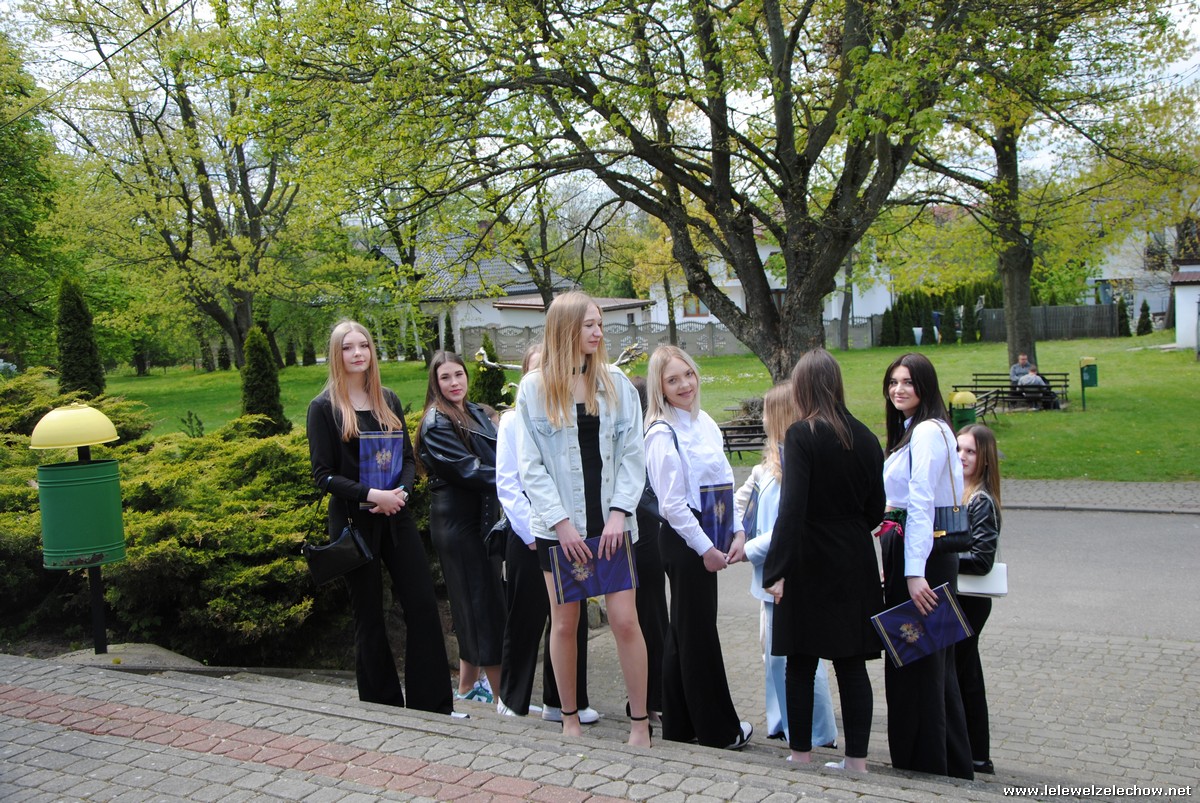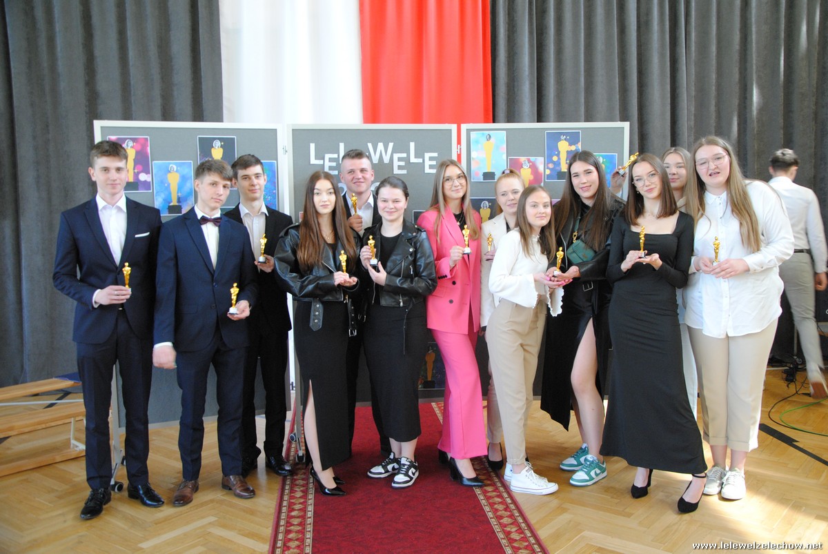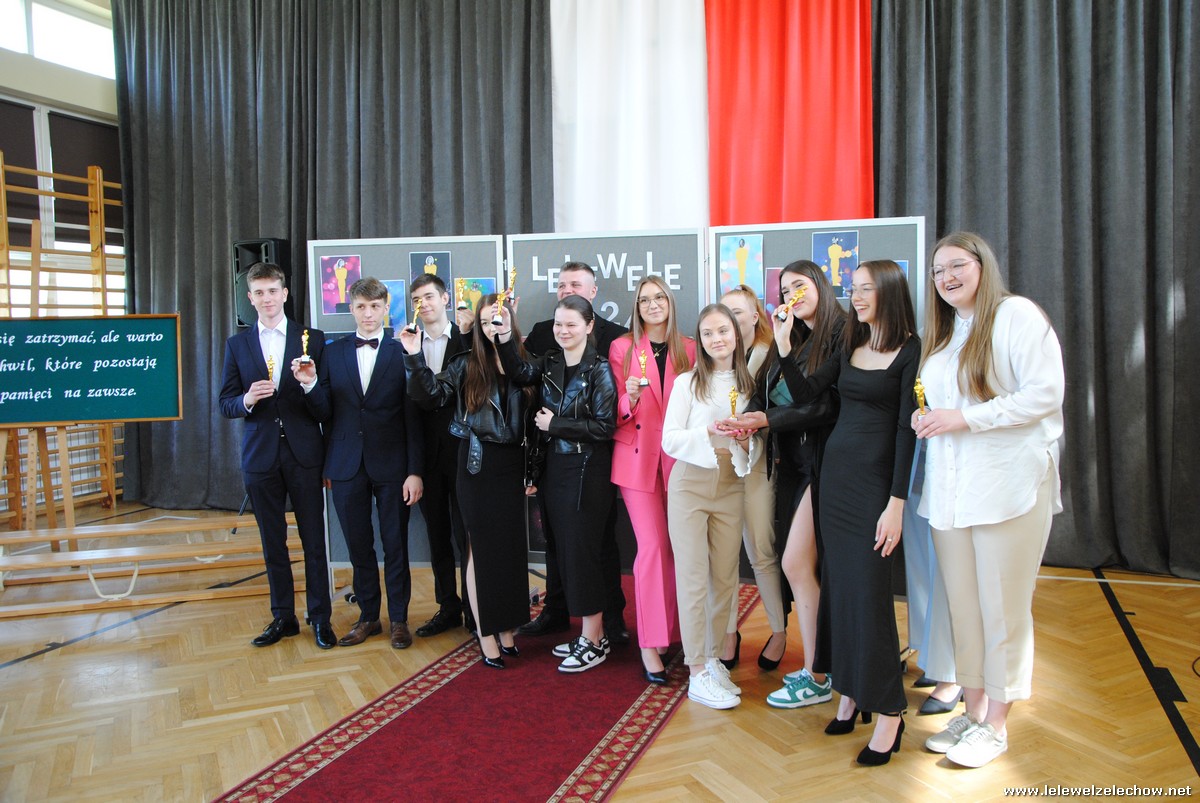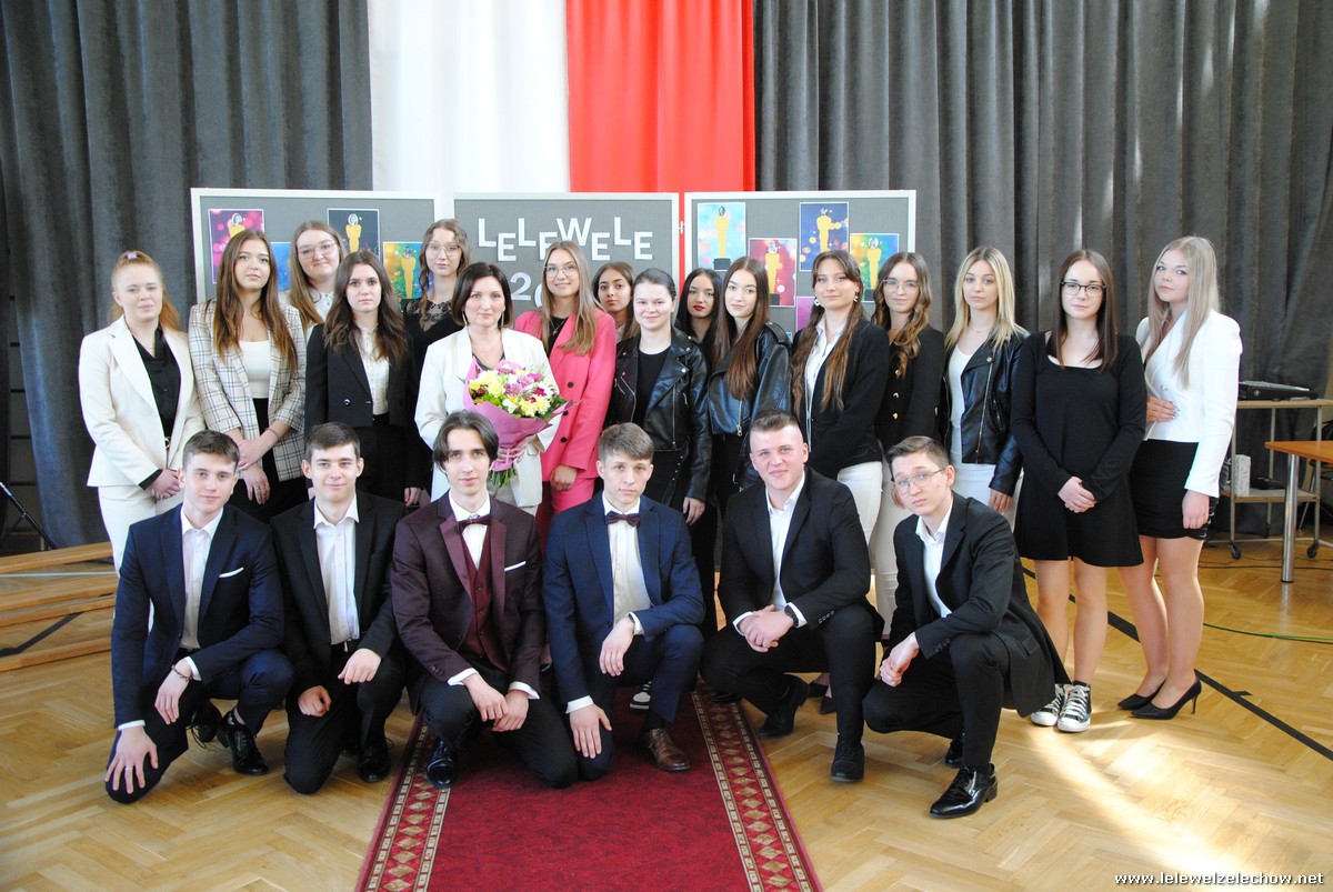 Następnie oddano głos klasom trzecim, które pożegnały Koleżanki i Kolegów pięknym programem artystycznym. Prezentacja, scenka kabaretowa, piosenki z ważnym przesłaniem sprawiły, że maturzyści na przemian wzruszali się i śmiali. Nie mogło również zabraknąć tradycyjnej Gali Leleweli, która zawsze wzbudza wiele pozytywnych emocji i jest jednym z najbardziej wyczekiwanych punktów programu artystycznego. Podczas gali doceniono tych, którzy swoim zachowaniem, postawą czy wyglądem wyróżniali się spośród grona uczniów. Cały program zakończyły życzenia, jakie trzecioklasiści złożyli absolwentom, oraz wręczenie upominków.