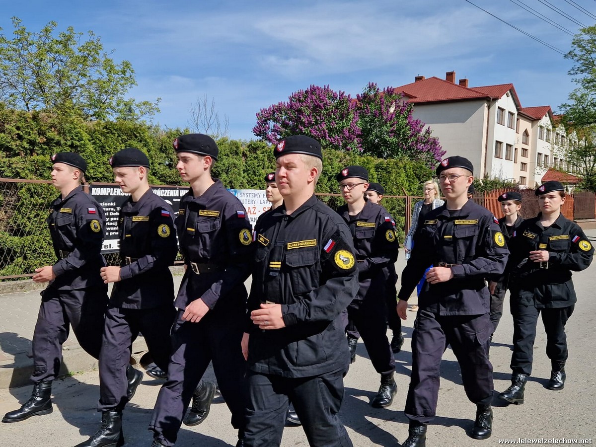 Poczet sznanarowy oraz kadeci grupy strażackiej uczestniczyli w Mszy św. a następnie przemaszerowali pod pomnik Konstytucji, gdzie delegacja mundurowych złożyła kwiaty. Wraz z zebranymi uczestniczyli również w uroczystości poświęcenia Izby Pamięci.
