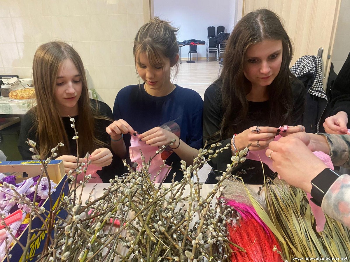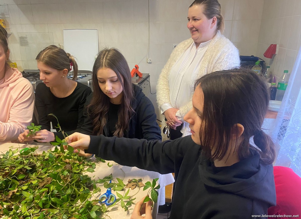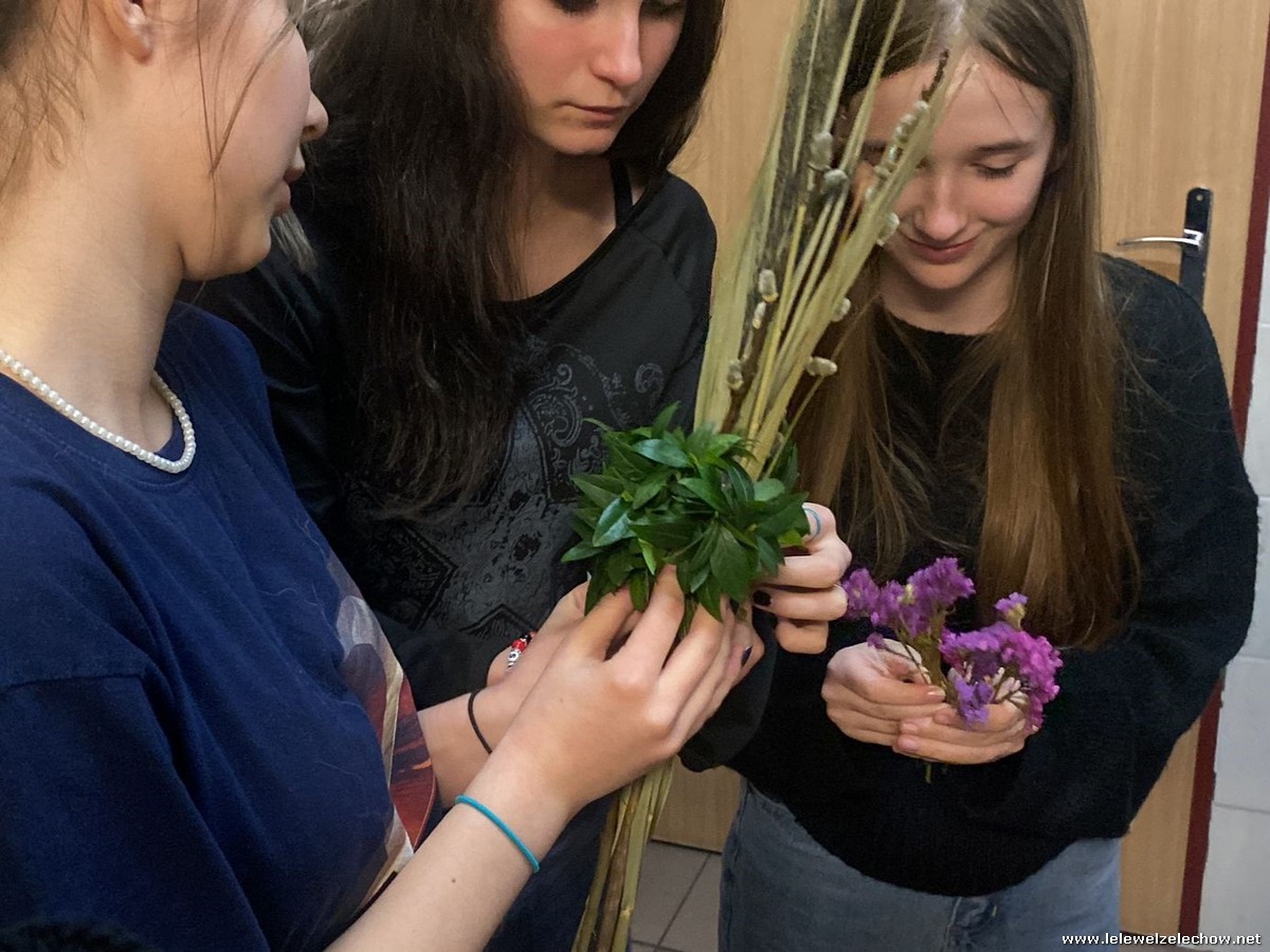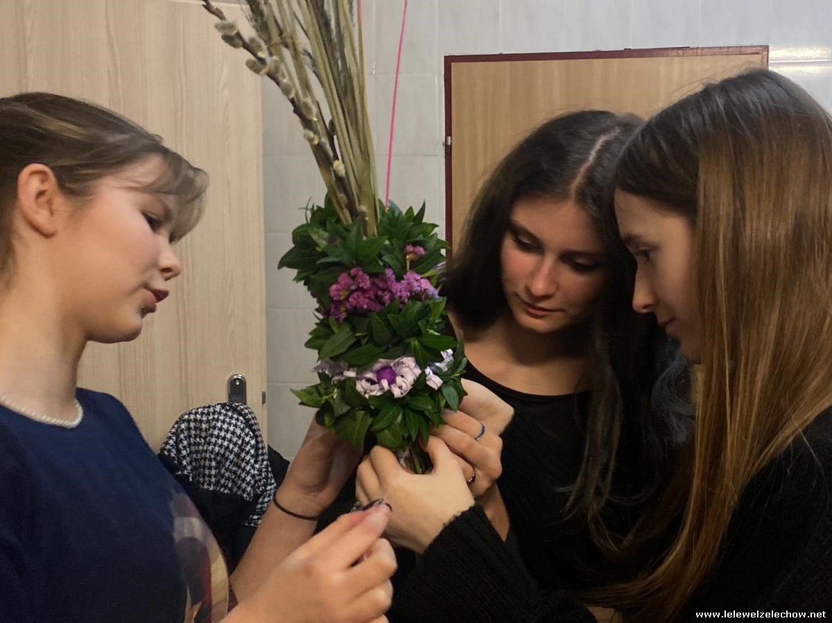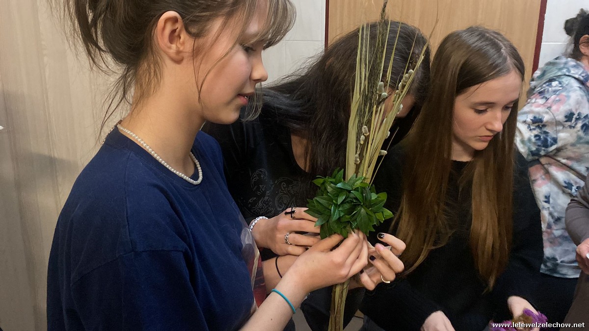 19 marca w ramach realizowanego projektu: ,,Mapa wiosny. Na ludowo” grupa projektowa odwiedziła Koło Gospodyń Wiejskich w Zadybiu Starym. Panie właśnie przystępowały do przygotowania tradycyjnych palm wielkanocnych. Uczennicy mogły zatem przyjrzeć się ich pracy oraz przygotowywać elementy konieczne do stworzenia palm. Dzięki wsparciu doświadczonych twórczyń ludowych nasze uczennice również stworzyły swoje palmy! Naprawdę jest się czym pochwalić!