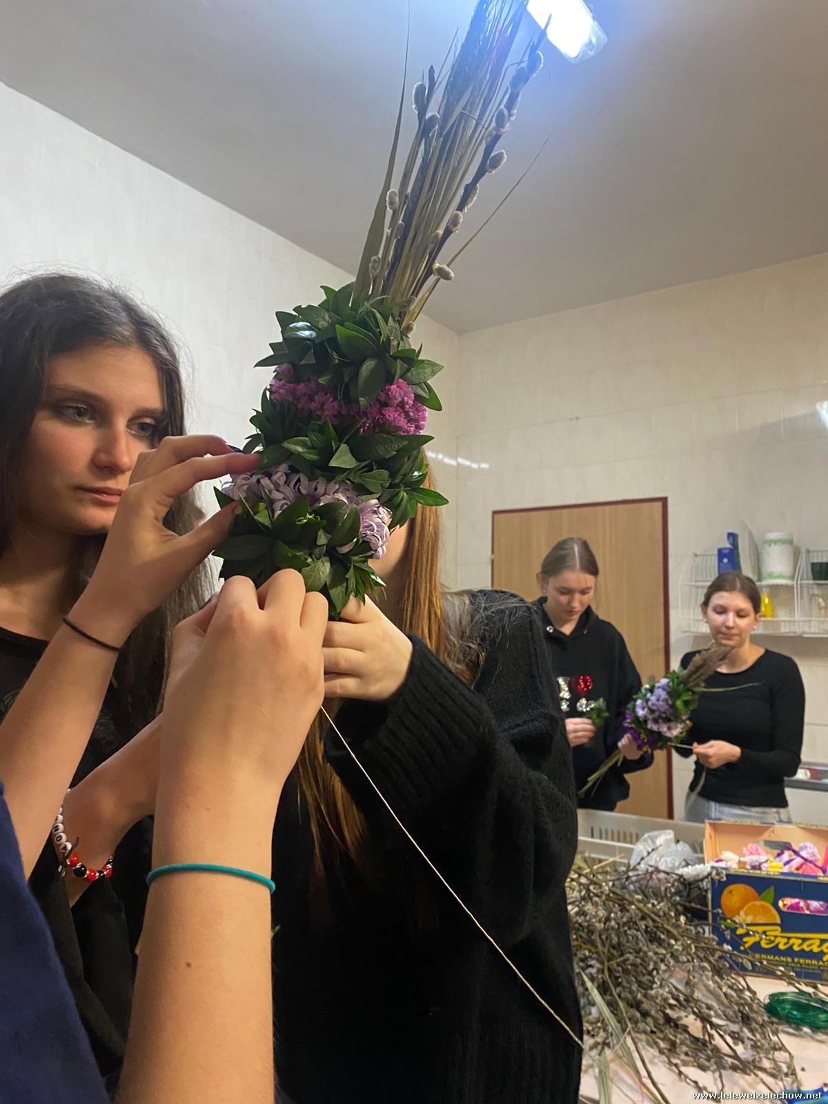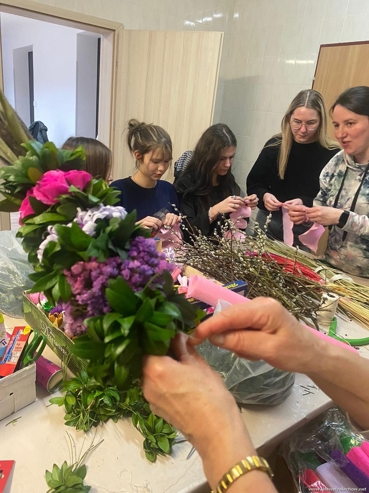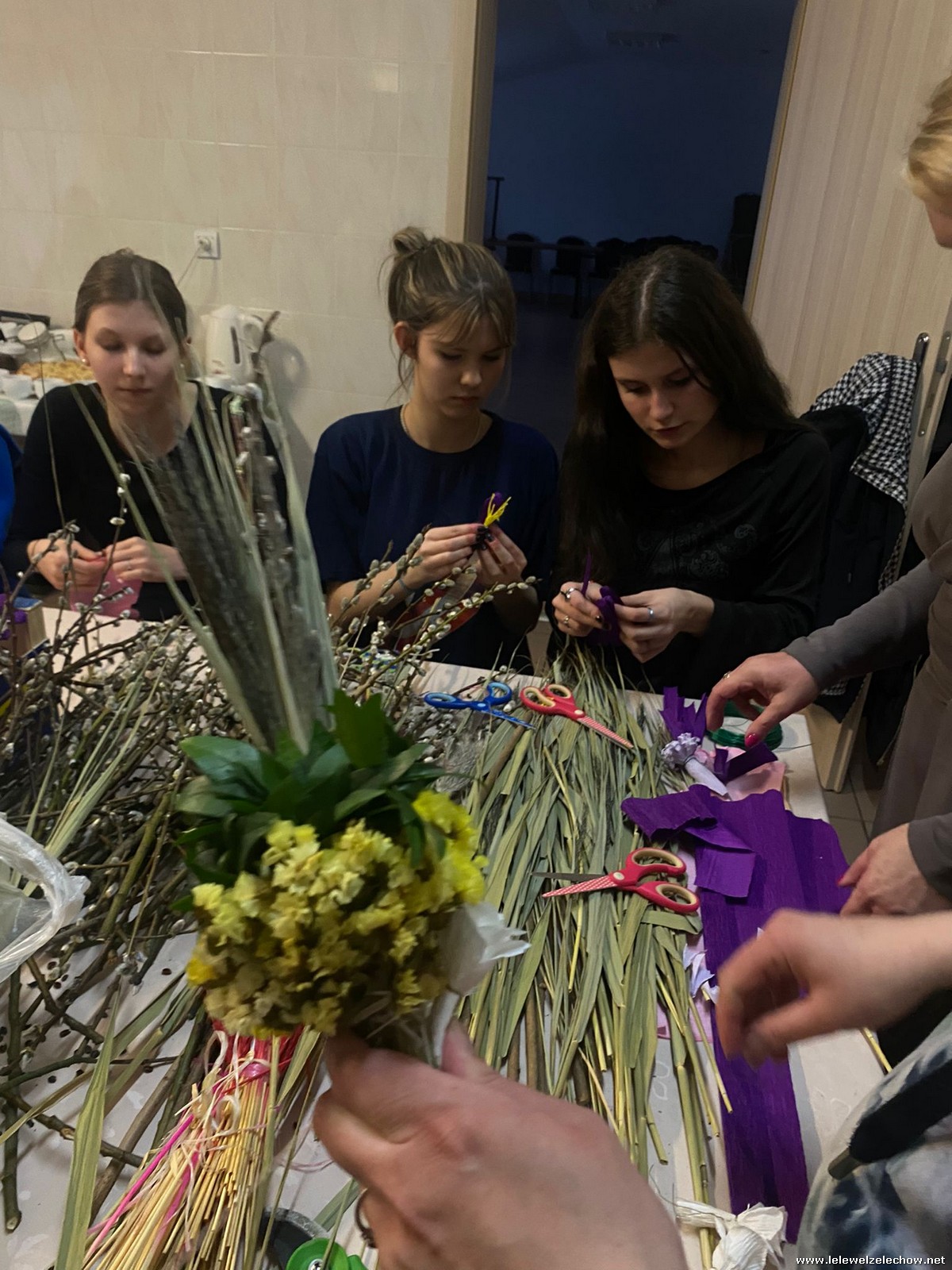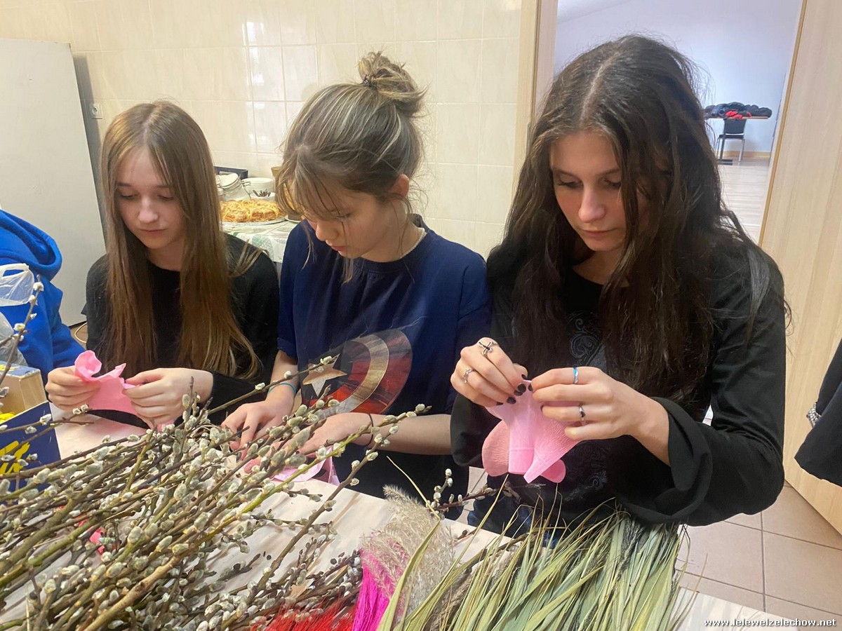 19 marca w ramach realizowanego projektu: ,,Mapa wiosny. Na ludowo” grupa projektowa odwiedziła Koło Gospodyń Wiejskich w Zadybiu Starym. Panie właśnie przystępowały do przygotowania tradycyjnych palm wielkanocnych. Uczennicy mogły zatem przyjrzeć się ich pracy oraz przygotowywać elementy konieczne do stworzenia palm. Dzięki wsparciu doświadczonych twórczyń ludowych nasze uczennice również stworzyły swoje palmy! Naprawdę jest się czym pochwalić!