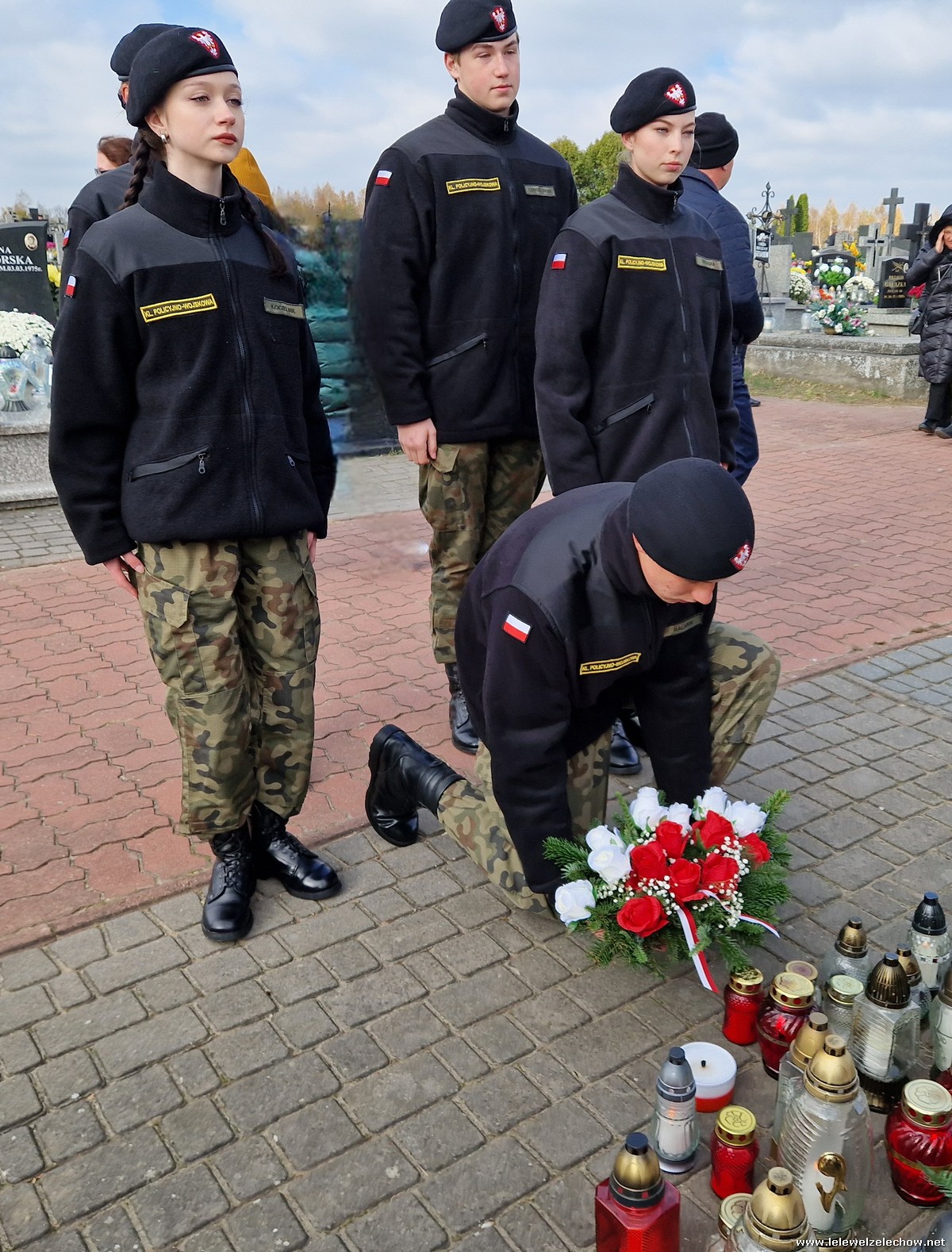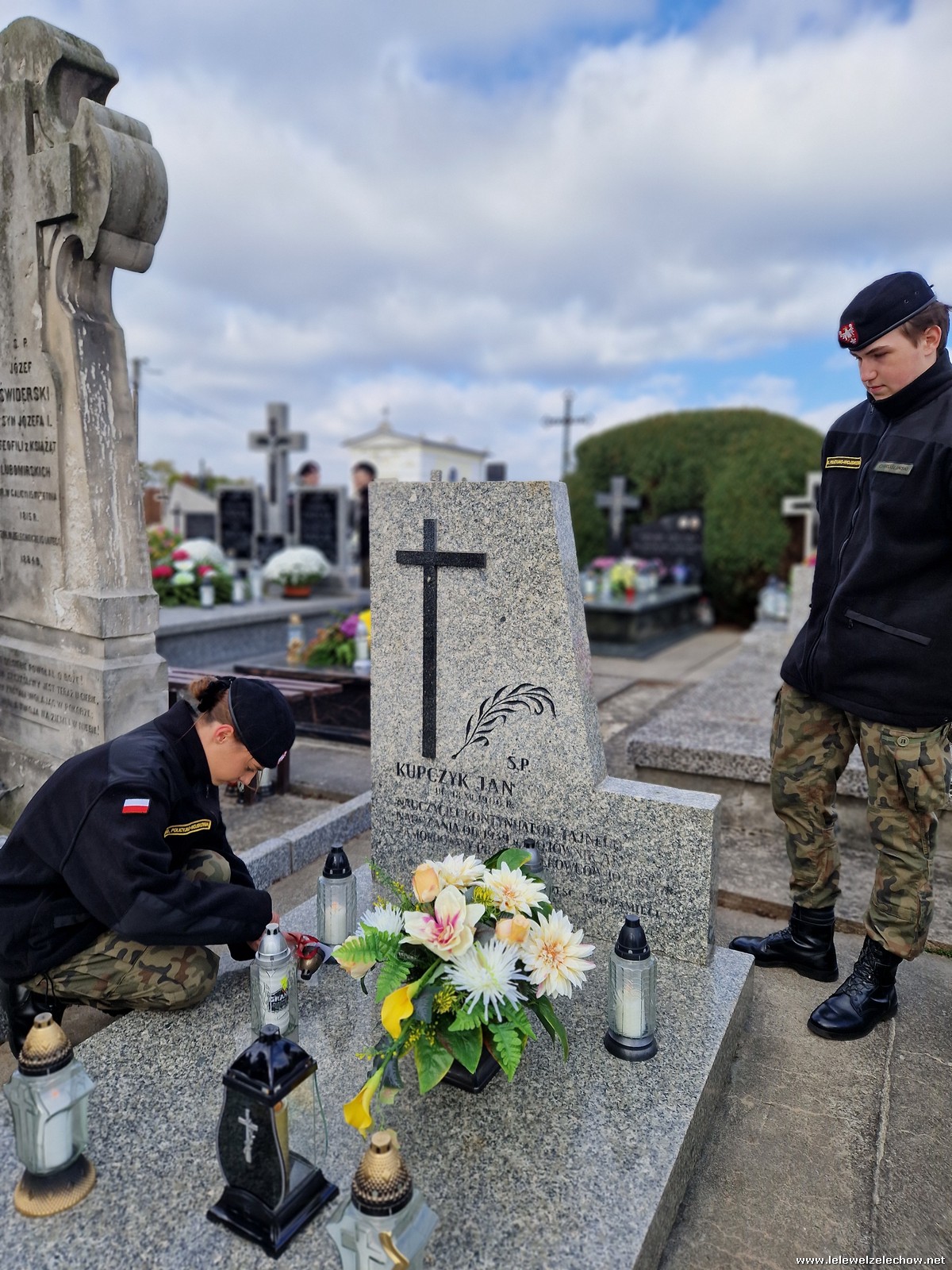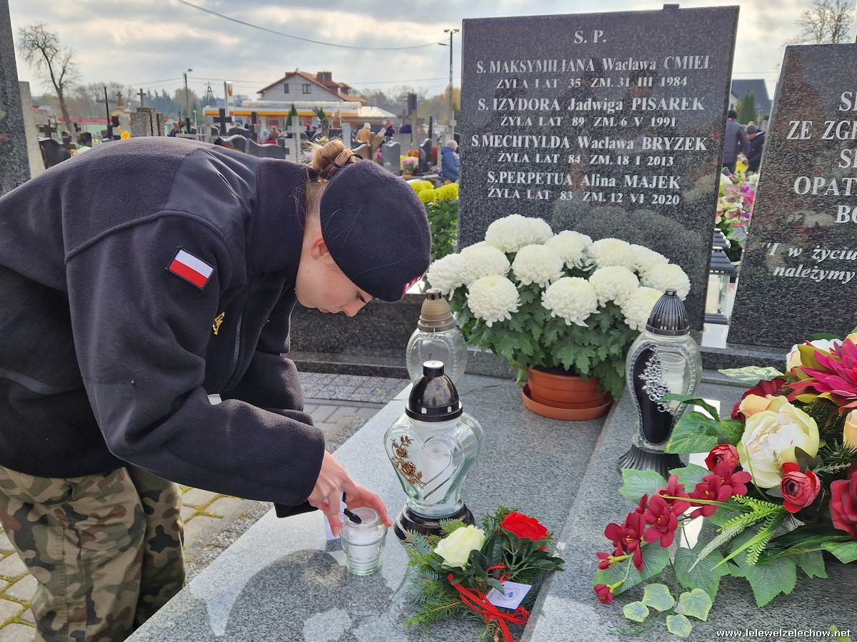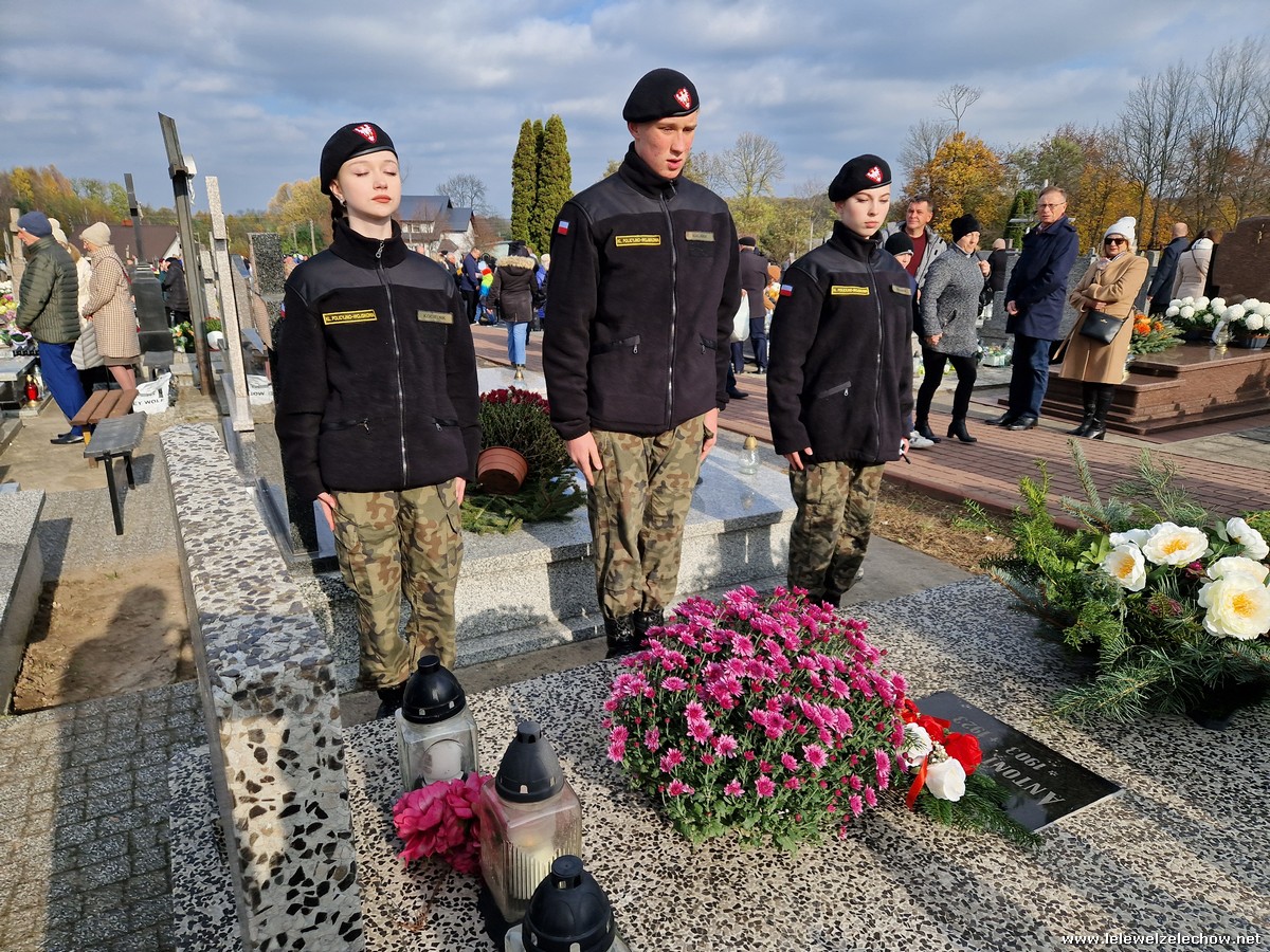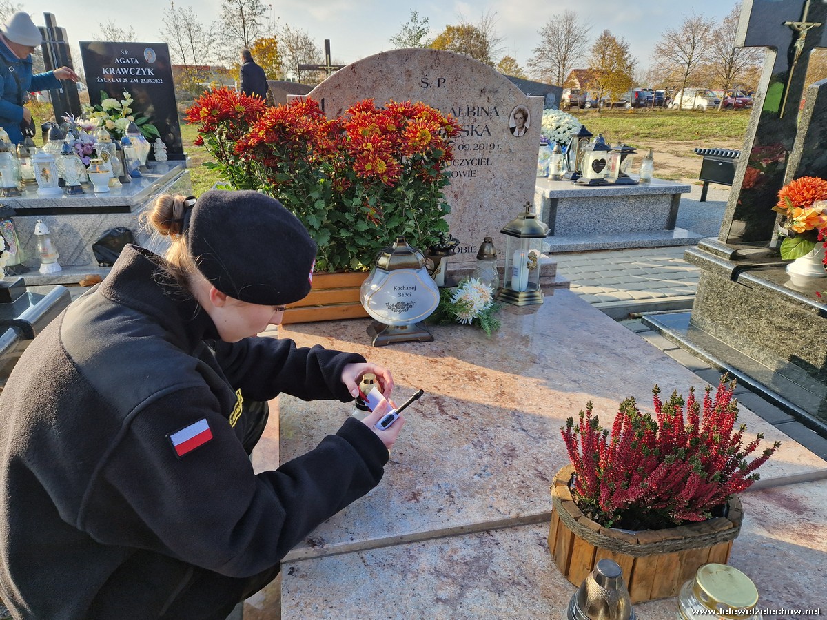 1 listopada tradycyjnie już nasi mundurowi z grupy policyjno-wojskowej klas drugich pełnili honorową wartę przy tablicy AK na miejscowym cmentarzu. Kadeci złożyli biało - czerwone wiązanki przed tablicą AK, a także na grobach naszych Dyrektorów - pani Antoniny Salwy oraz Władysława Opali. Zapalili również znicze. Młodzieży towarzyszyły - pani Dyrektor Sylwia Tomaszek oraz Urszula Kobielus, nauczyciel historii. Wartę mundurowych przygotował mjr Piotr Władziński.
