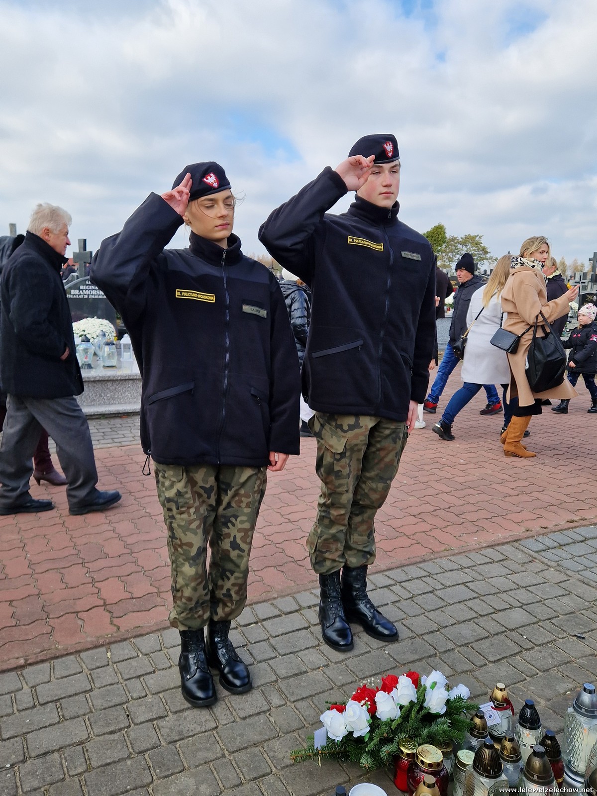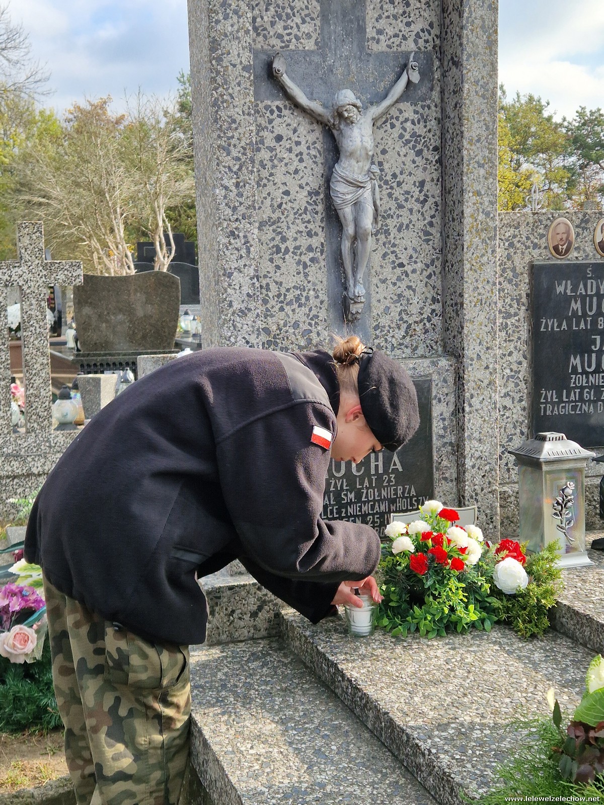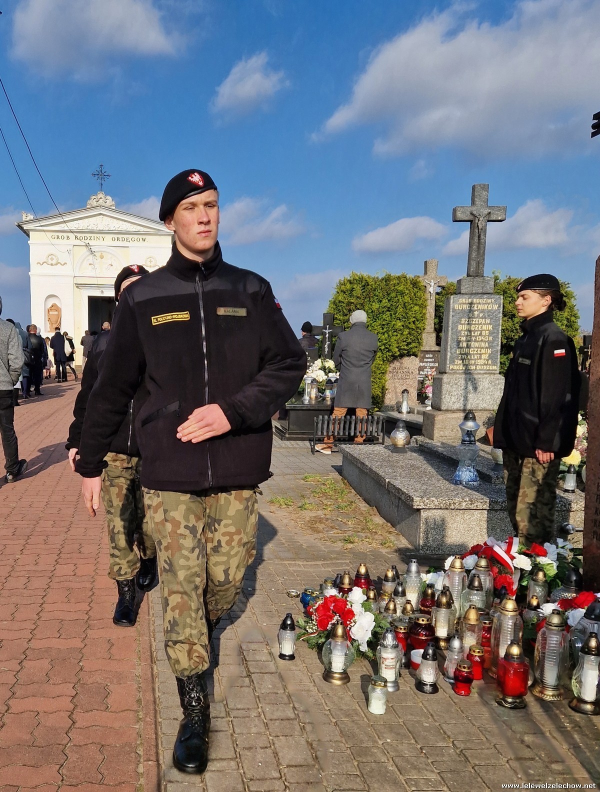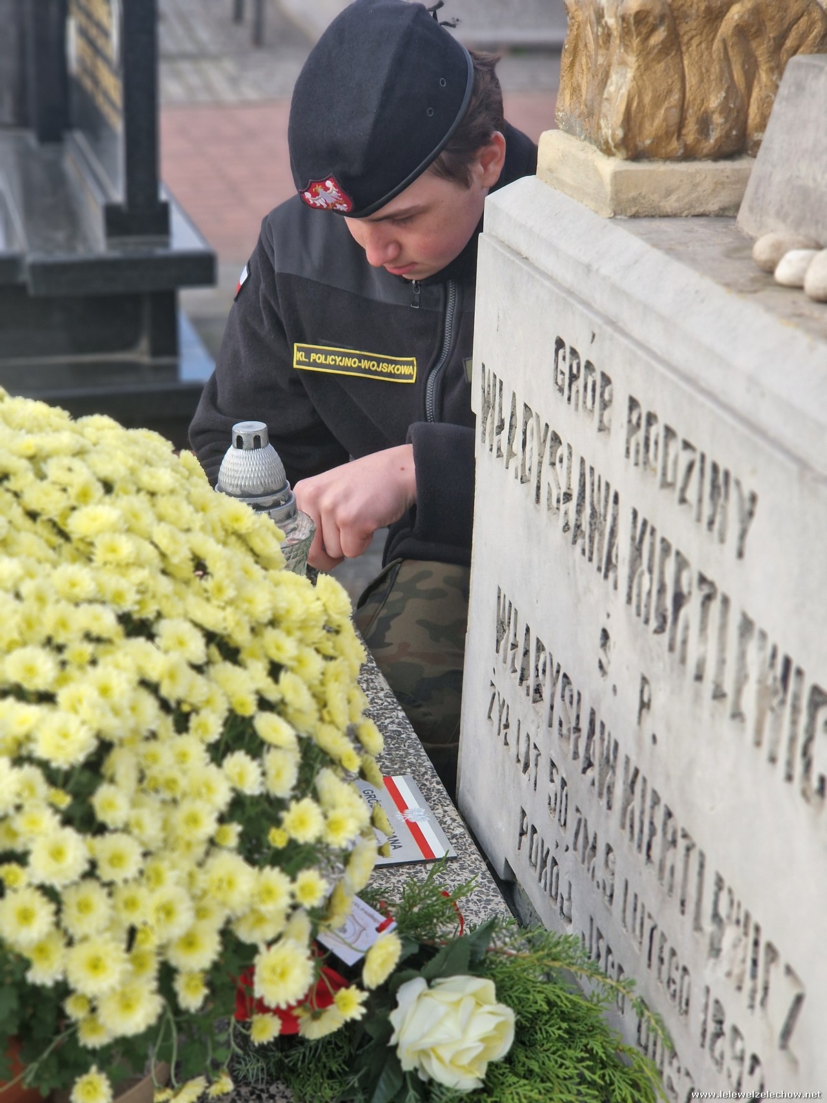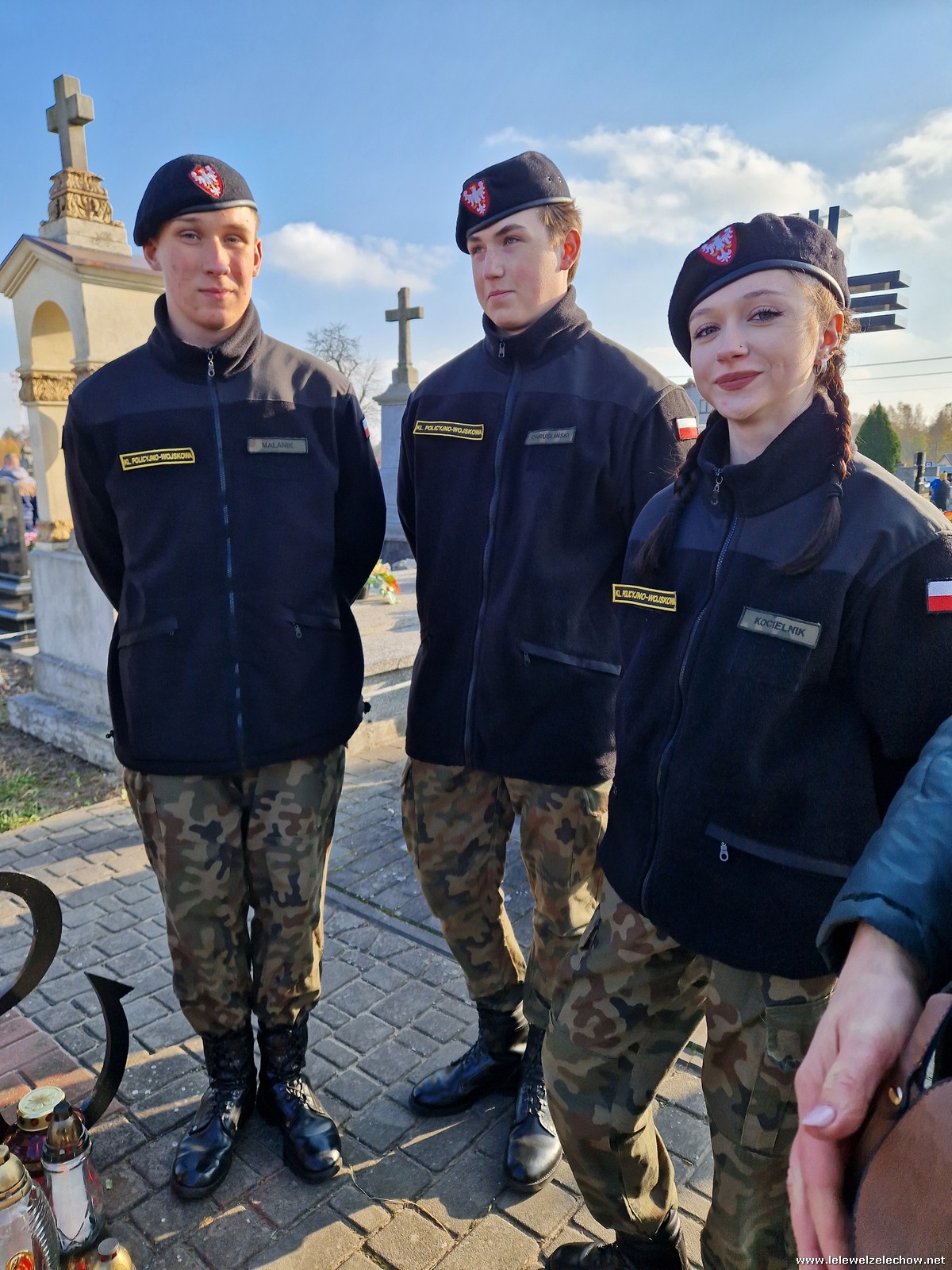 1 listopada tradycyjnie już nasi mundurowi z grupy policyjno-wojskowej klas drugich pełnili honorową wartę przy tablicy AK na miejscowym cmentarzu. Kadeci złożyli biało - czerwone wiązanki przed tablicą AK, a także na grobach naszych Dyrektorów - pani Antoniny Salwy oraz Władysława Opali. Zapalili również znicze. Młodzieży towarzyszyły - pani Dyrektor Sylwia Tomaszek oraz Urszula Kobielus, nauczyciel historii. Wartę mundurowych przygotował mjr Piotr Władziński.