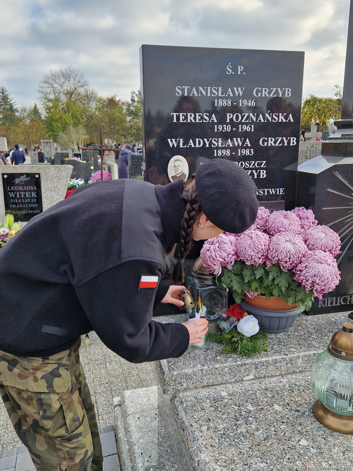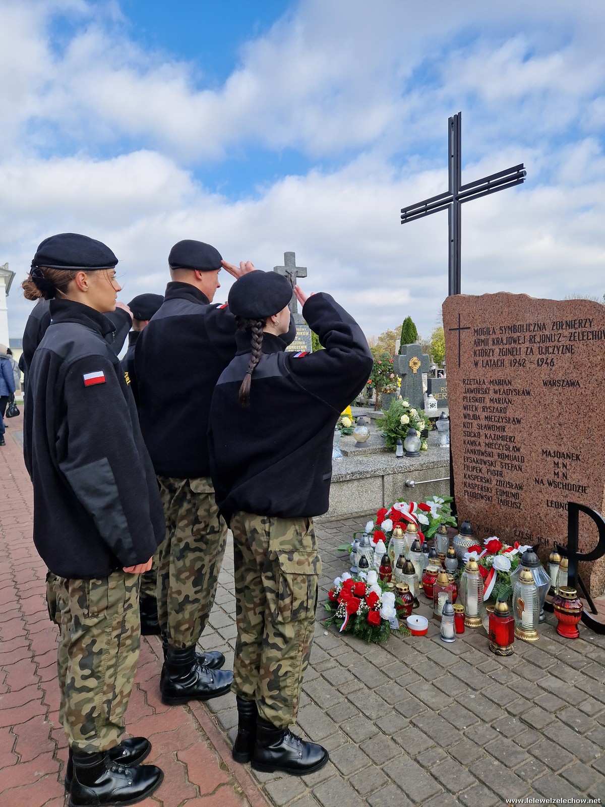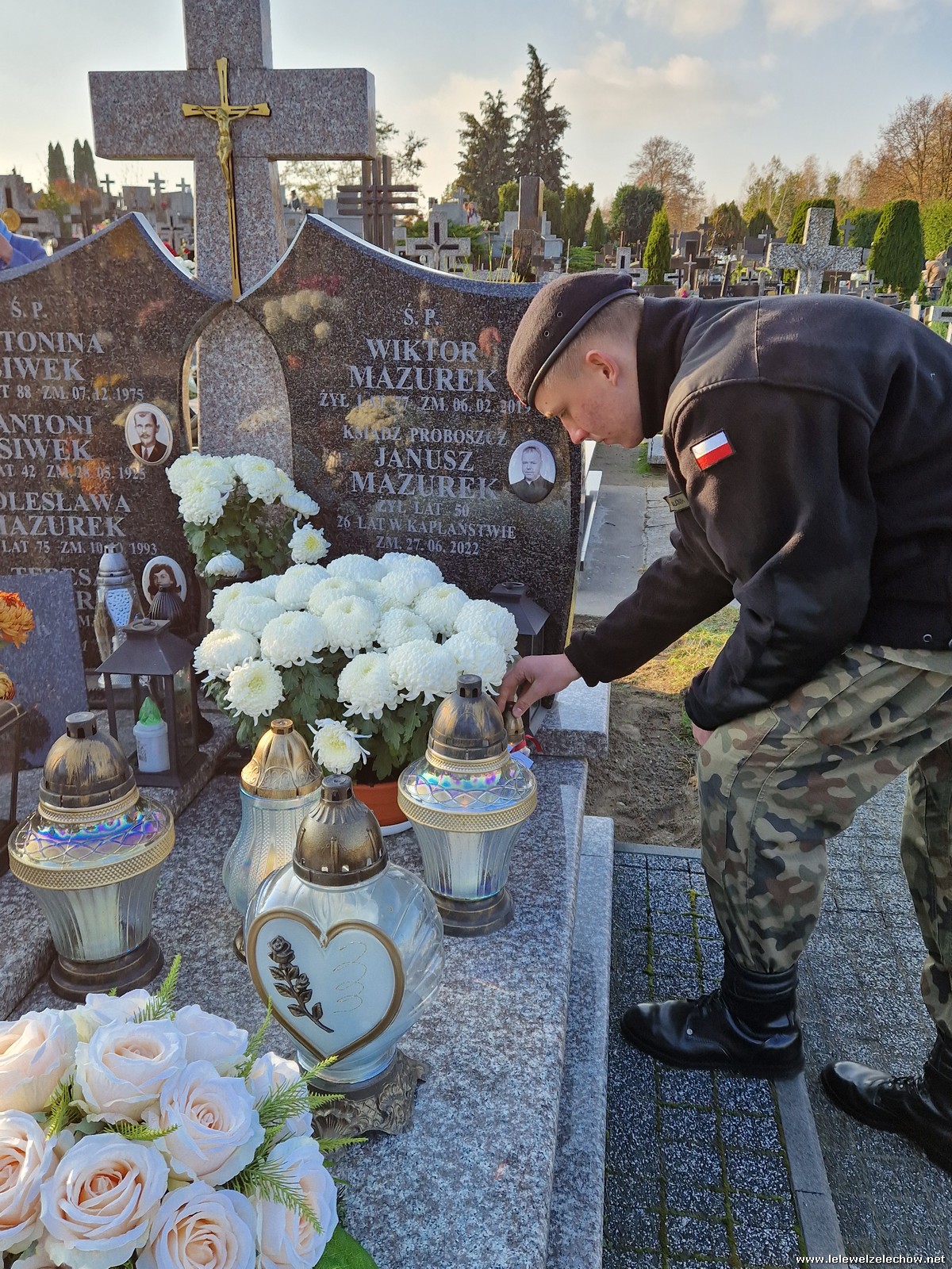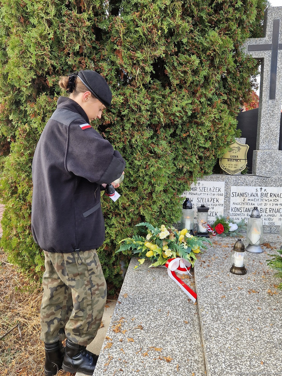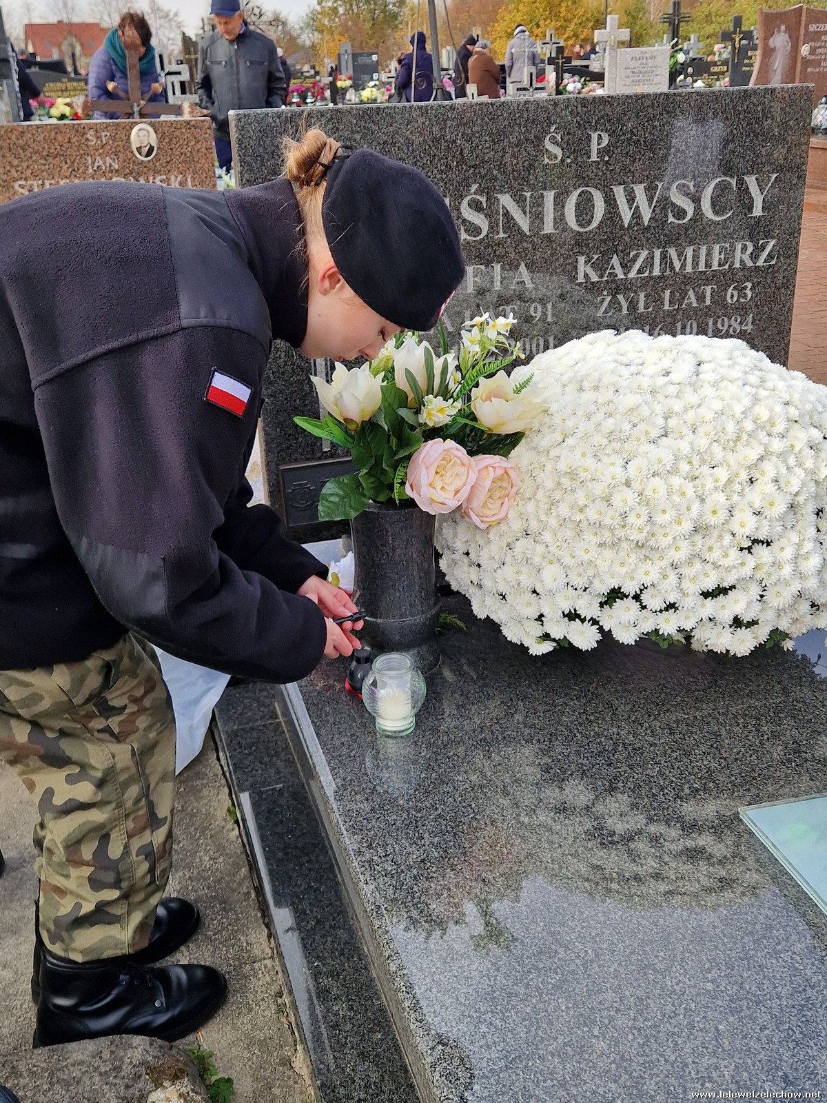 1 listopada tradycyjnie już nasi mundurowi z grupy policyjno-wojskowej klas drugich pełnili honorową wartę przy tablicy AK na miejscowym cmentarzu. Kadeci złożyli biało - czerwone wiązanki przed tablicą AK, a także na grobach naszych Dyrektorów - pani Antoniny Salwy oraz Władysława Opali. Zapalili również znicze. Młodzieży towarzyszyły - pani Dyrektor Sylwia Tomaszek oraz Urszula Kobielus, nauczyciel historii. Wartę mundurowych przygotował mjr Piotr Władziński.