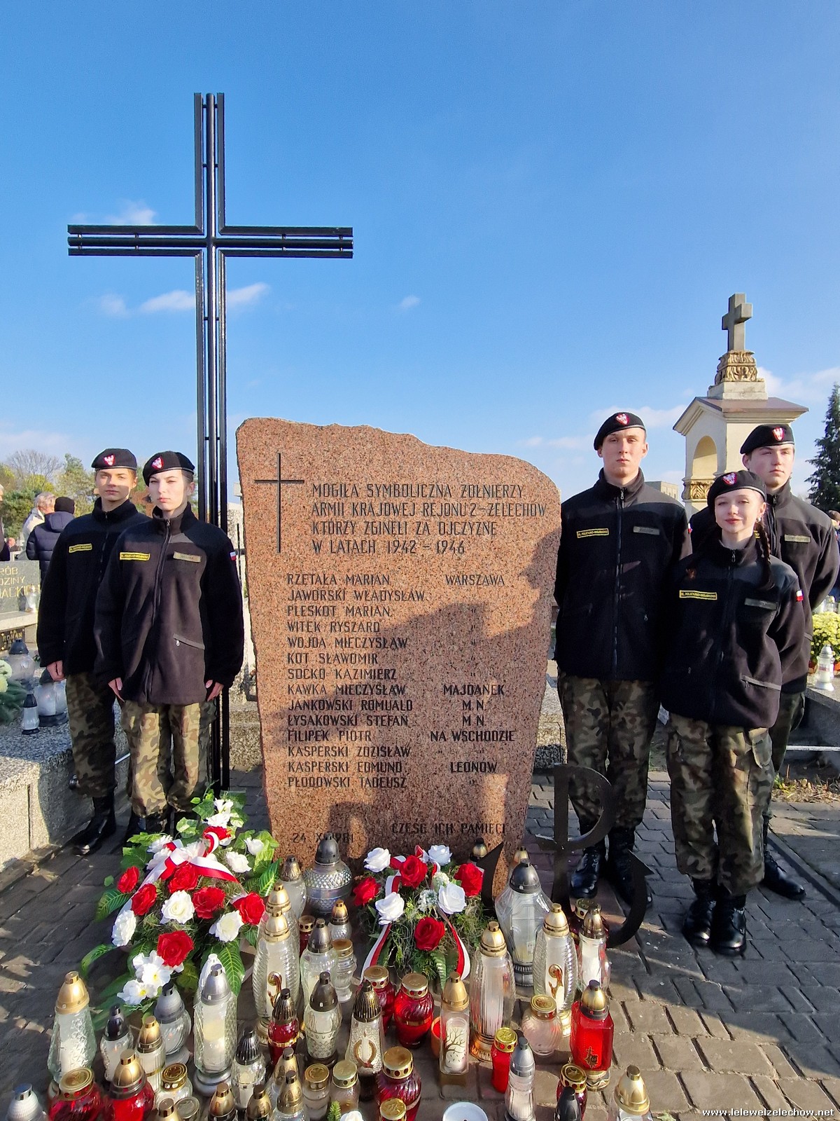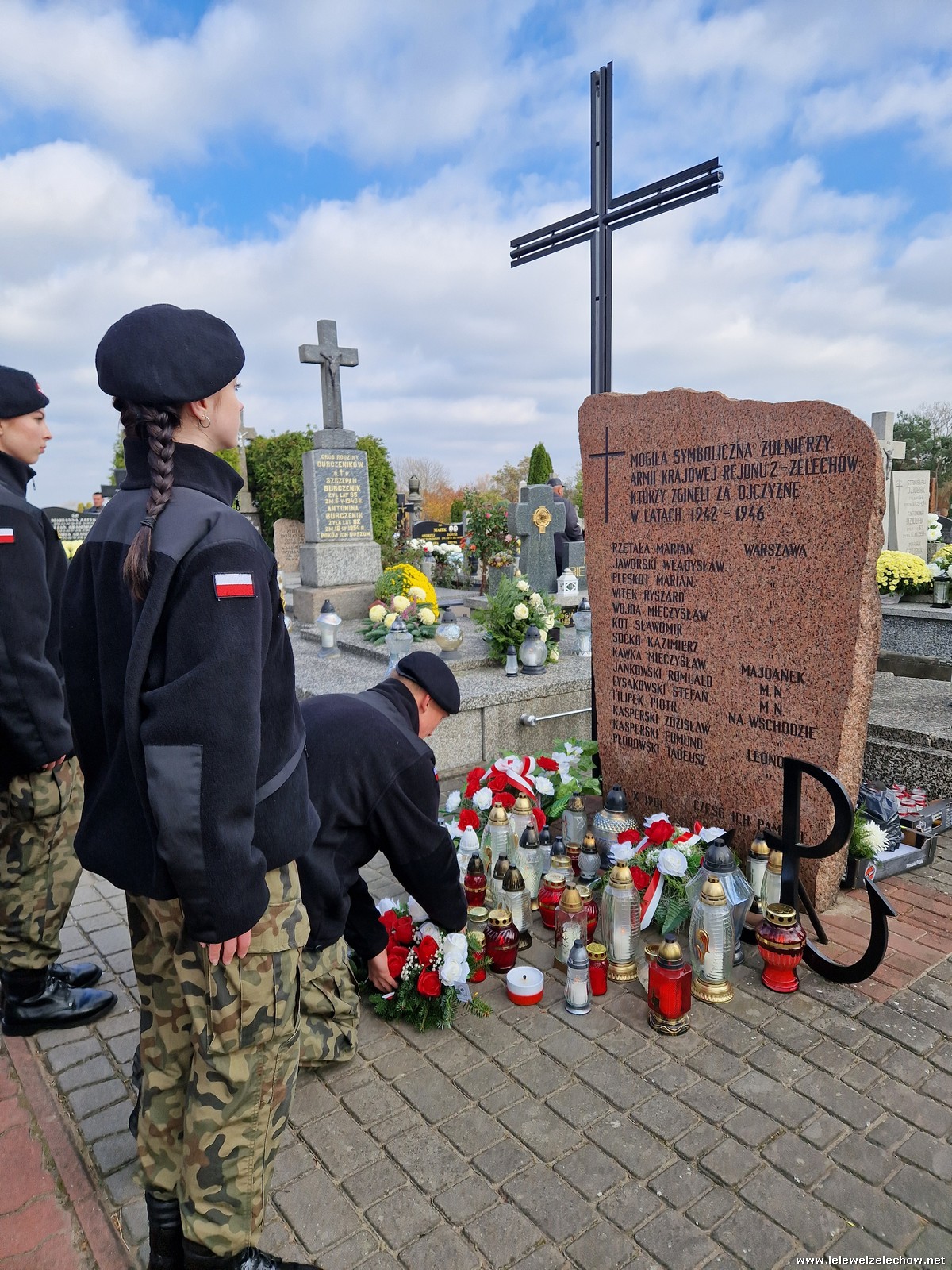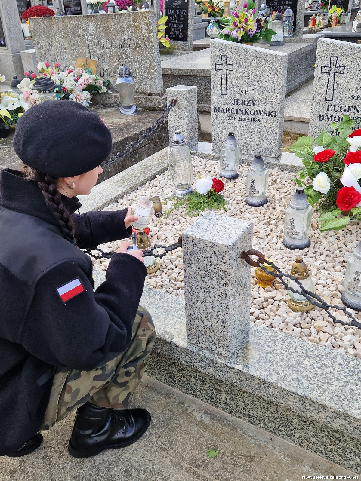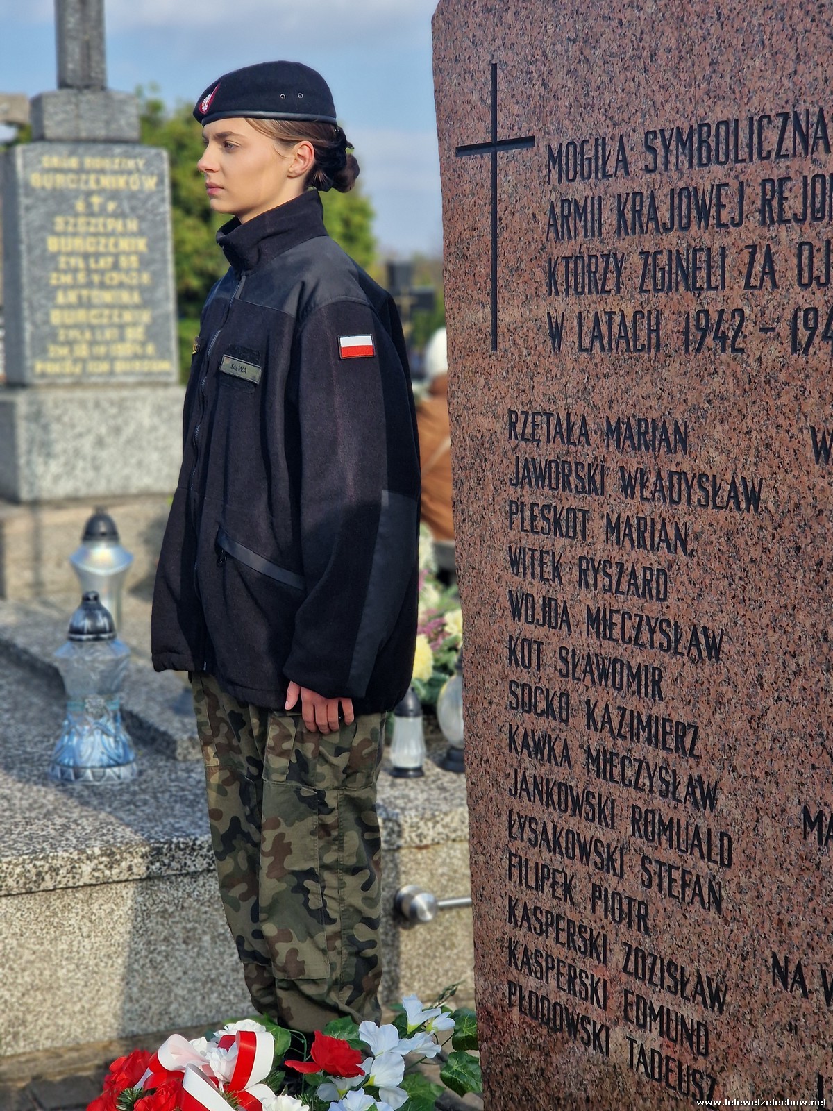 1 listopada tradycyjnie już nasi mundurowi z grupy policyjno-wojskowej klas drugich pełnili honorową wartę przy tablicy AK na miejscowym cmentarzu. Kadeci złożyli biało - czerwone wiązanki przed tablicą AK, a także na grobach naszych Dyrektorów - pani Antoniny Salwy oraz Władysława Opali. Zapalili również znicze. Młodzieży towarzyszyły - pani Dyrektor Sylwia Tomaszek oraz Urszula Kobielus, nauczyciel historii. Wartę mundurowych przygotował mjr Piotr Władziński.