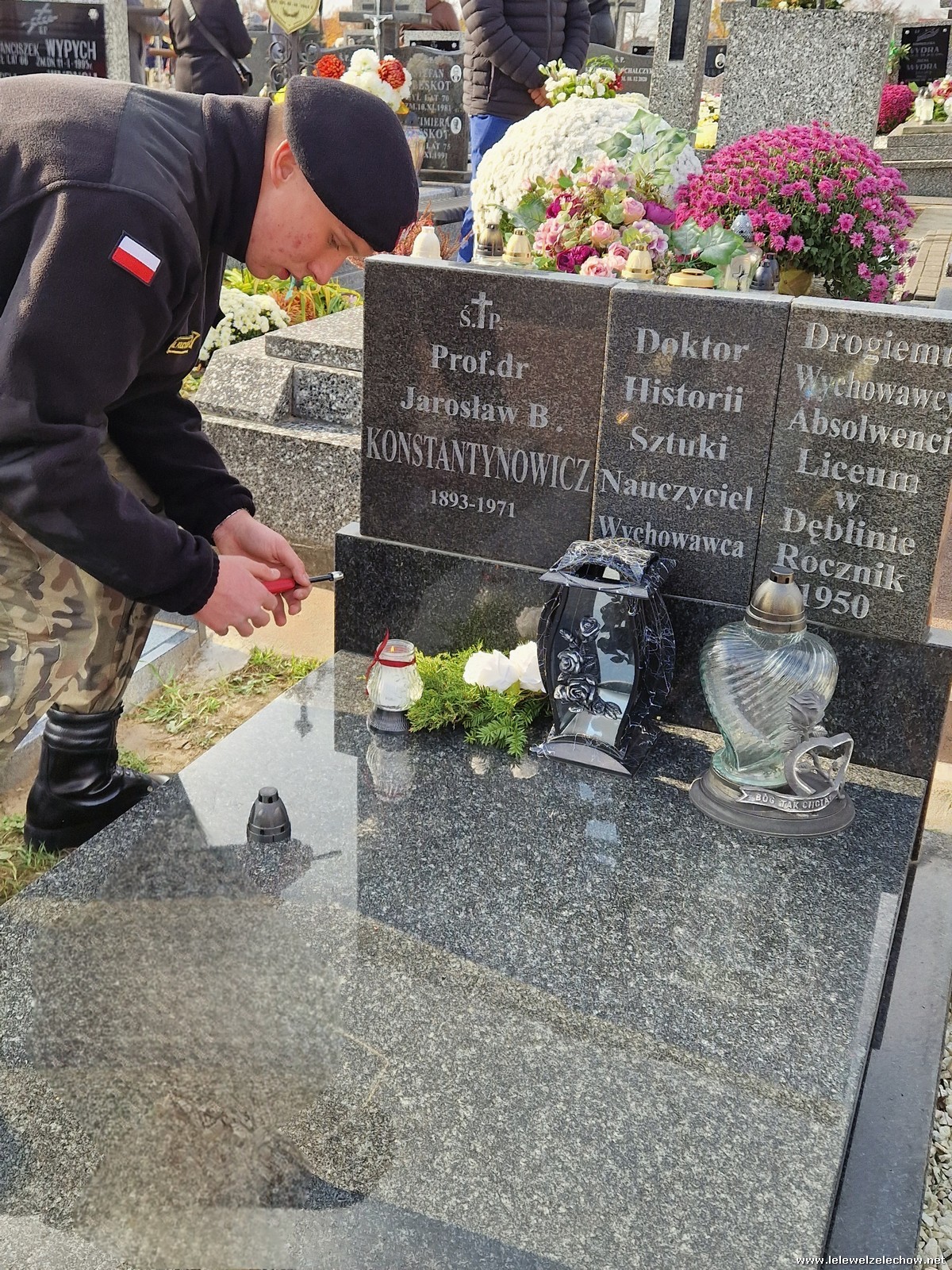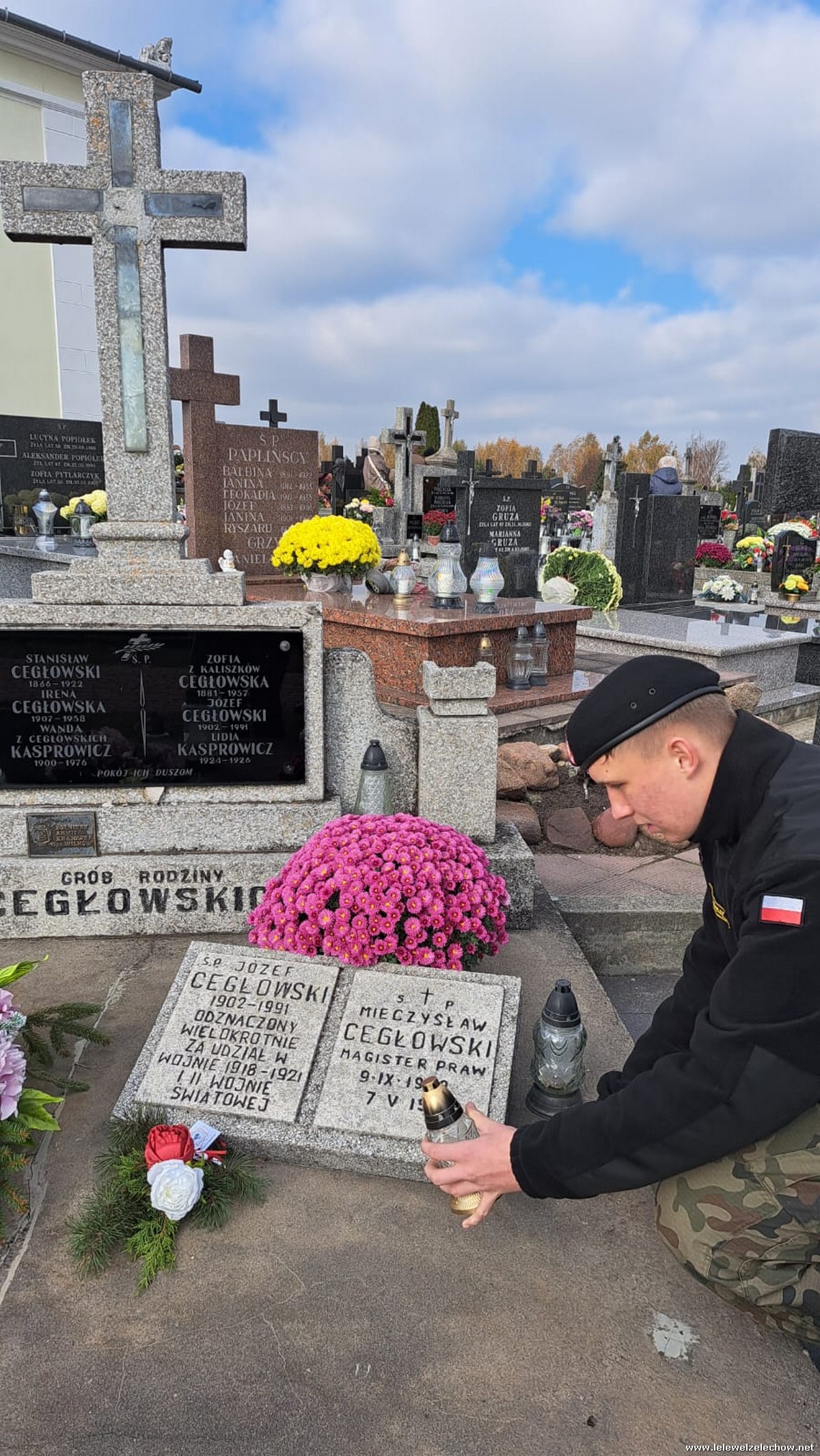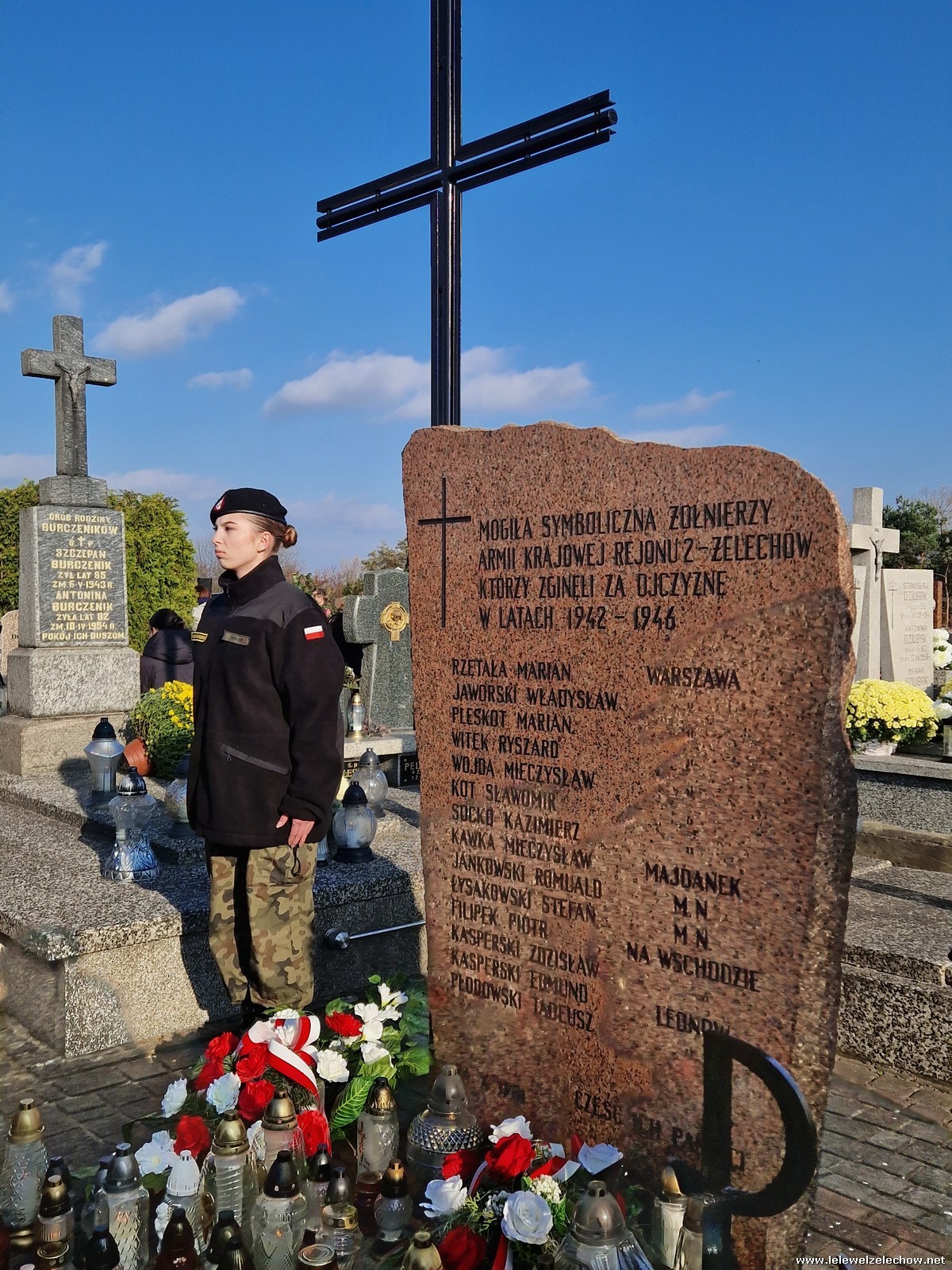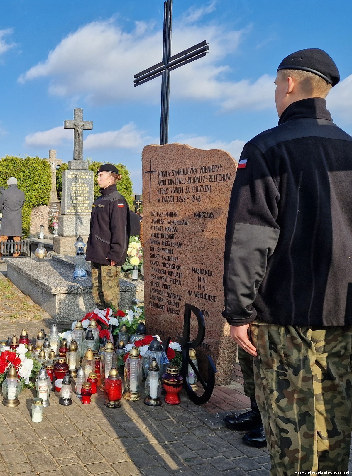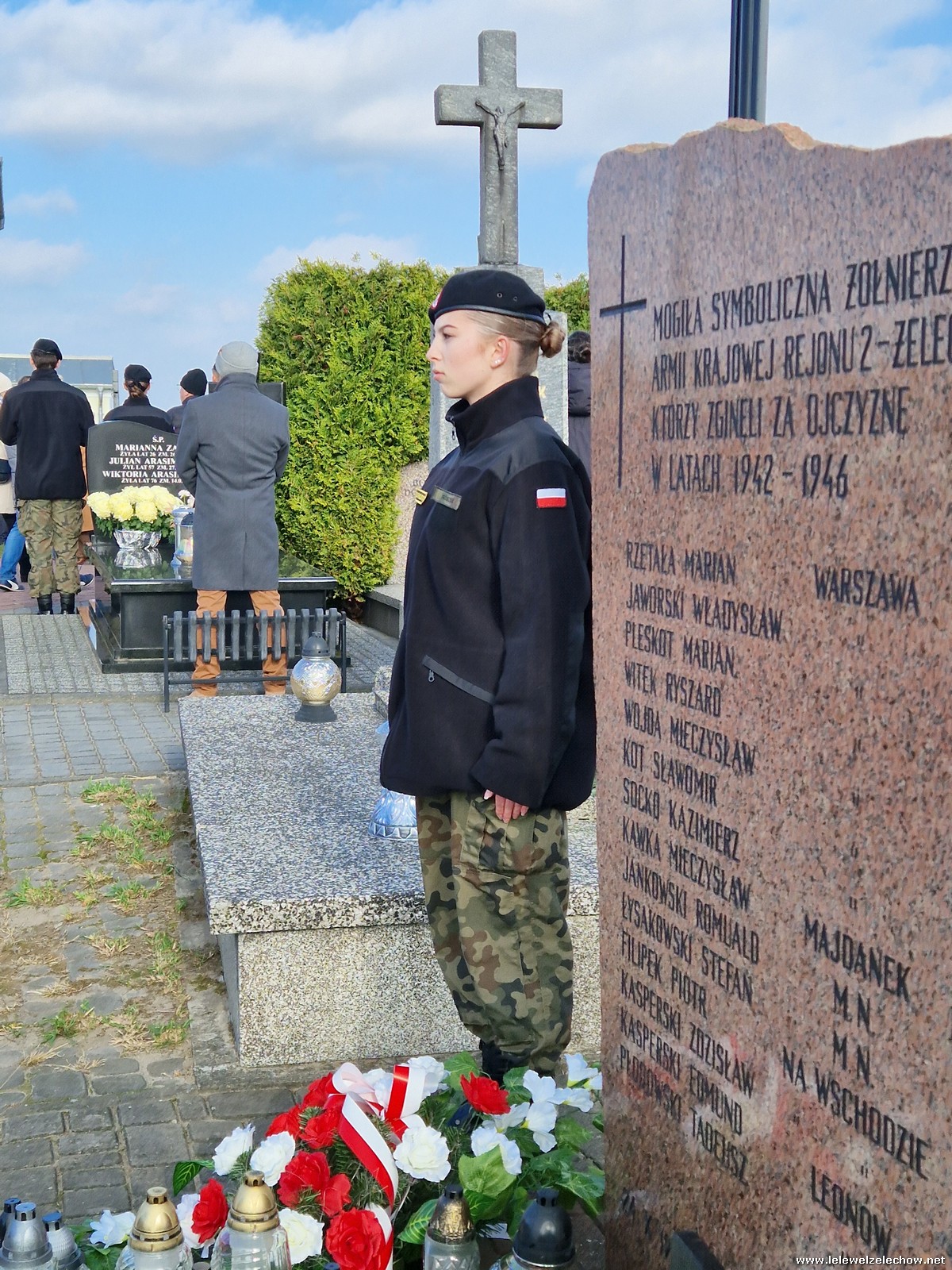 1 listopada tradycyjnie już nasi mundurowi z grupy policyjno-wojskowej klas drugich pełnili honorową wartę przy tablicy AK na miejscowym cmentarzu. Kadeci złożyli biało - czerwone wiązanki przed tablicą AK, a także na grobach naszych Dyrektorów - pani Antoniny Salwy oraz Władysława Opali. Zapalili również znicze. Młodzieży towarzyszyły - pani Dyrektor Sylwia Tomaszek oraz Urszula Kobielus, nauczyciel historii. Wartę mundurowych przygotował mjr Piotr Władziński.