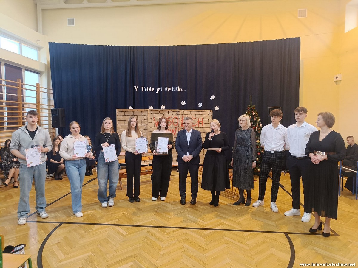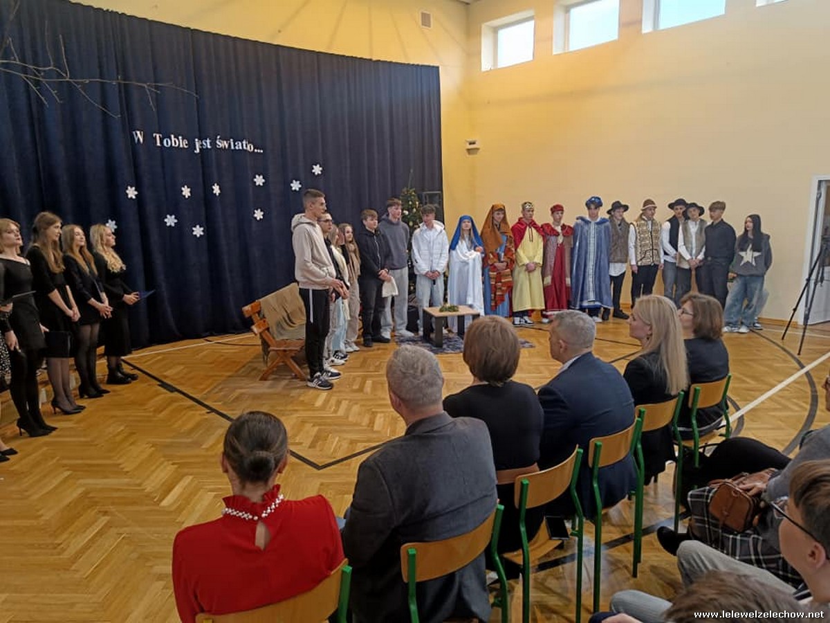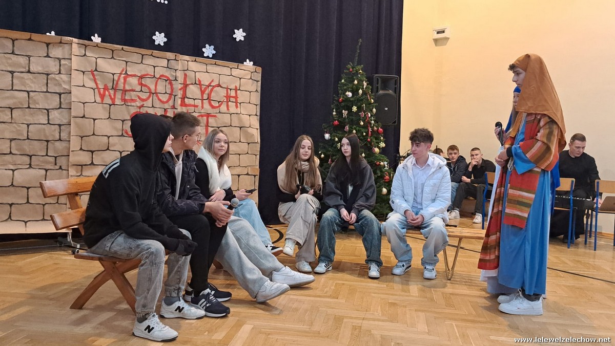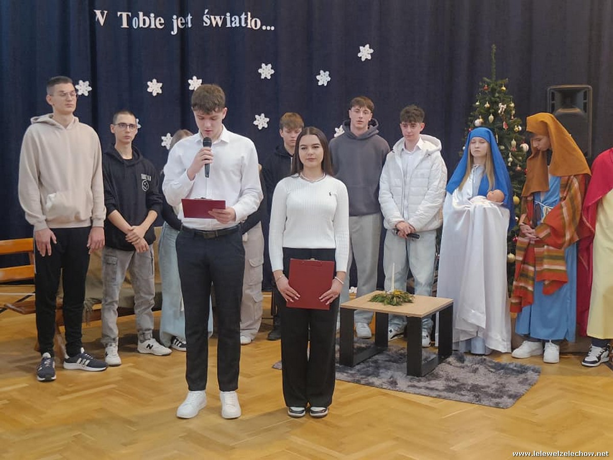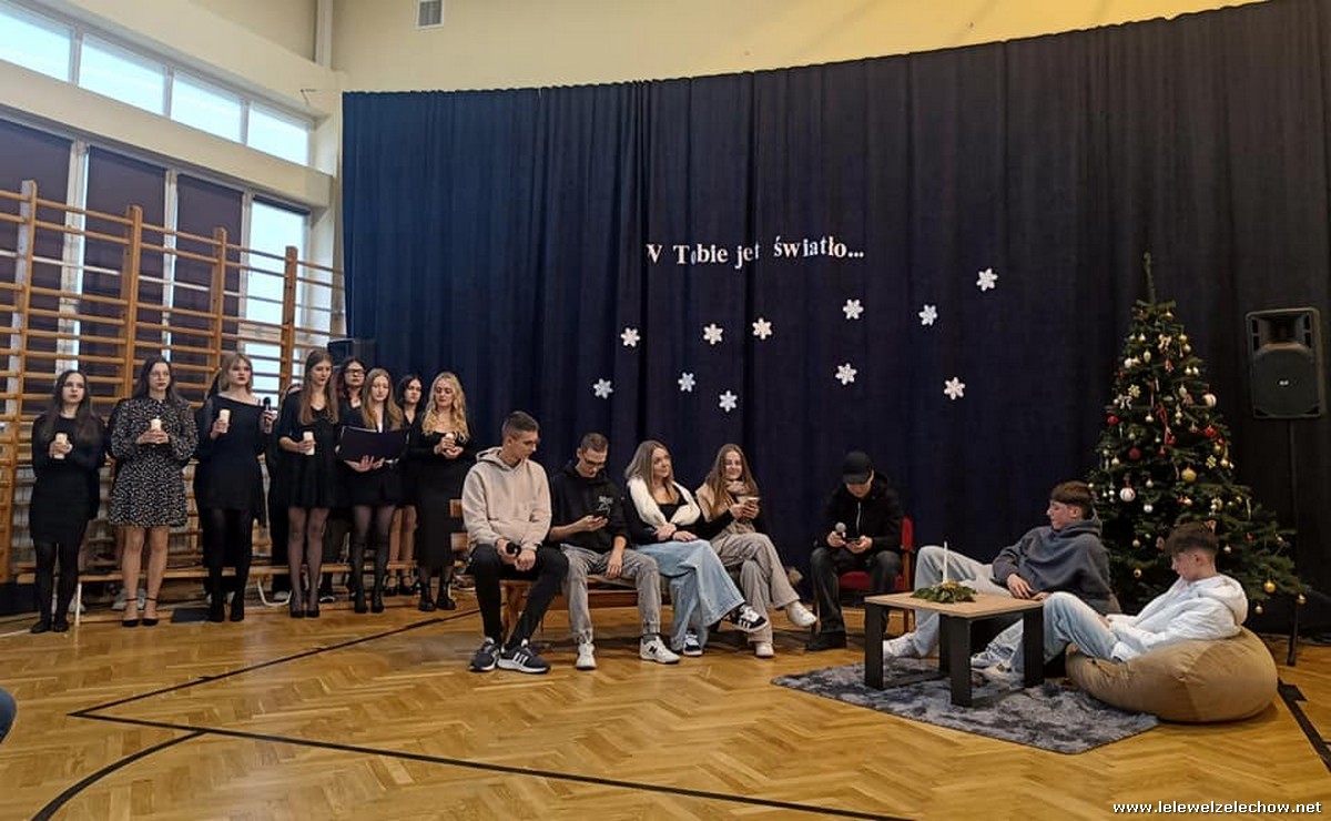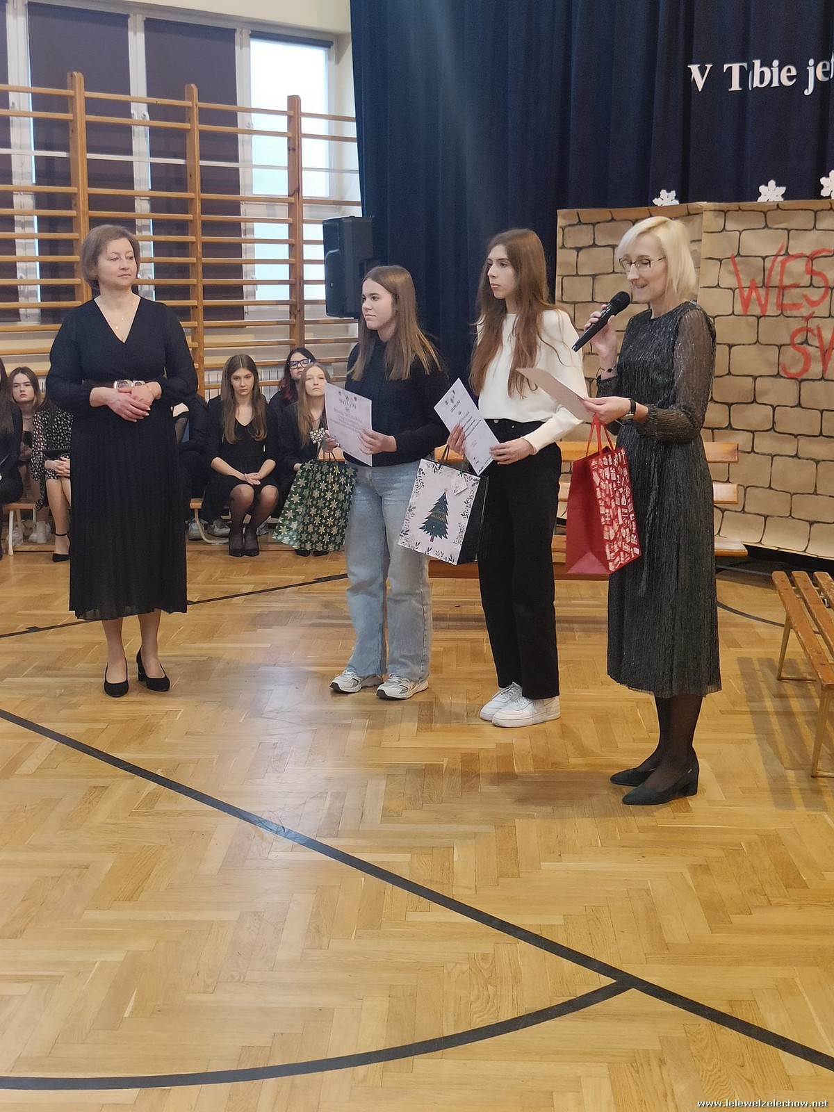 19 grudnia mieliśmy okazję obejrzeć przedstawienie wigilijne w wykonaniu uczniów klas drugich i trzecich naszego liceum wg scenariusza Adama Szafrańca. Narodzenie Pana Jezusa zostało tym razem osadzone we współczesności i wśród problemów dzisiejszych nastolatków, tych rodzinnych, duchowych, a nawet w obliczu śmiertelnej choroby. Przedstawienie przeplatały wzruszające występy chóru pod kierownictwem i przy akompaniamencie ks. Mariusza Rompy. Przedstawienie przygotowały panie: Anna Czarnecka- Górska i Anna Majewska. Wydarzenie uświetnił swoją obecnością Wicestarosta Powiatu Garwolińskiego- pan Mirosław Walicki oraz Dyrektor Wydziału Edukacji, Kultury i Sportu- pani Justyna Maszkiewicz. Przed częścią artystyczną wręczono nagrody za konkursy: stroików bożonarodzeniowych, za świąteczny wystrój sal oraz za najpiękniejszą kartę z życzeniami na Boże Narodzenie.