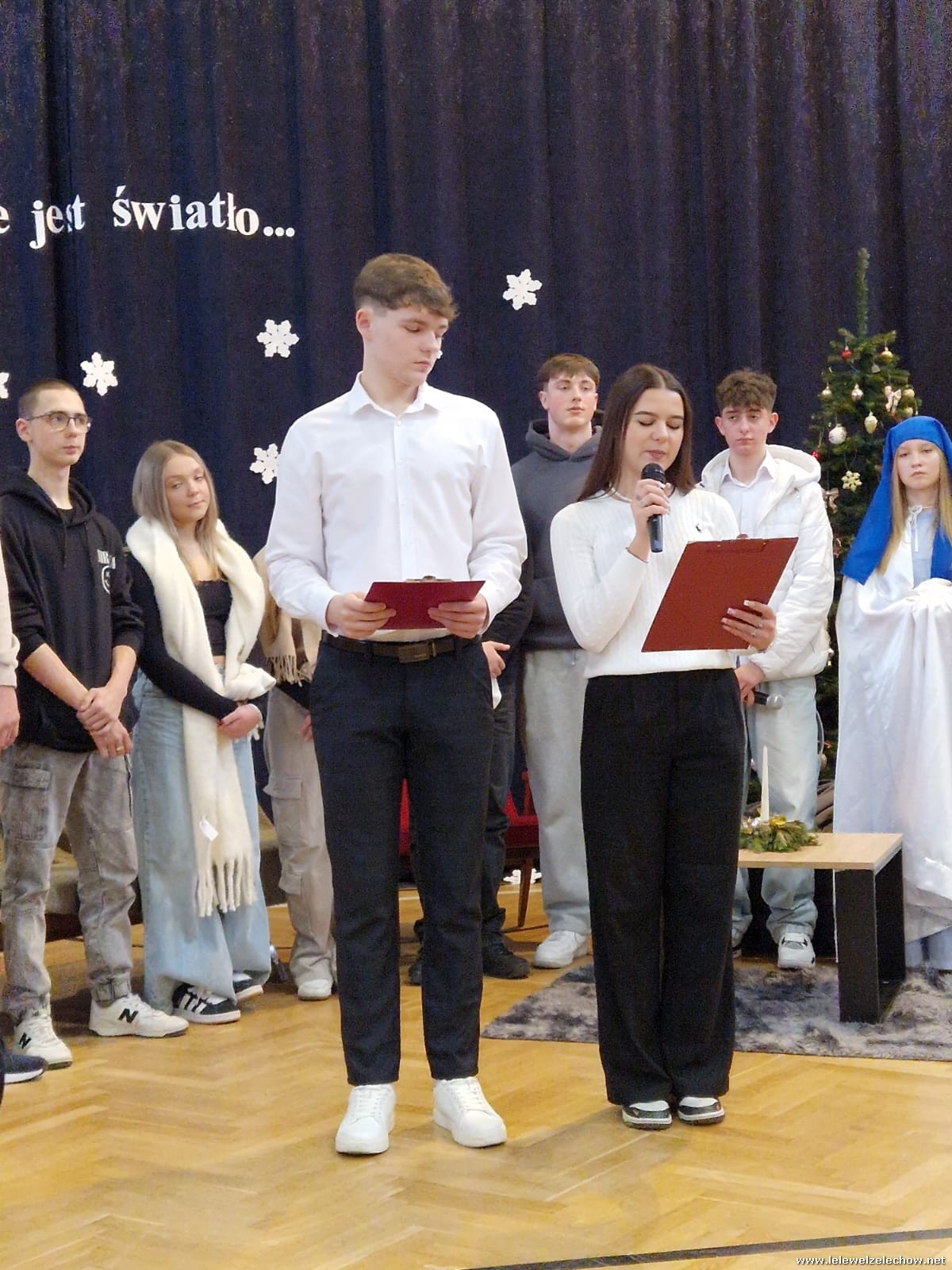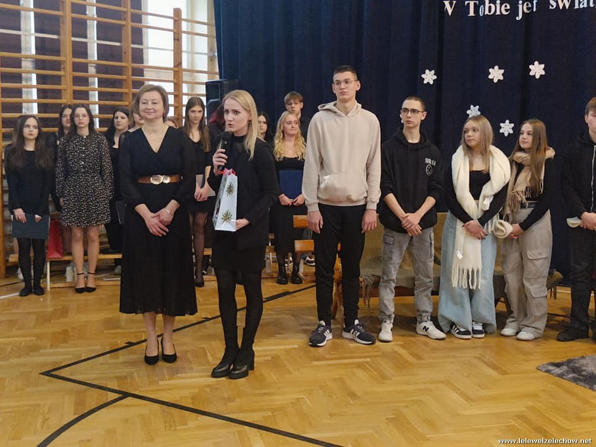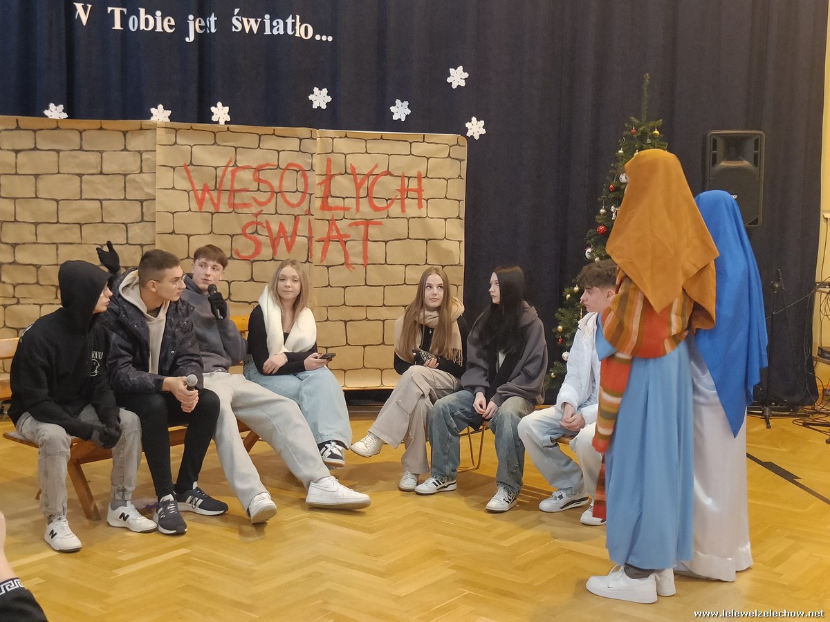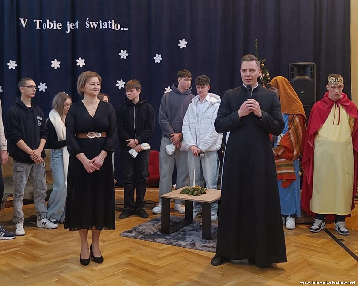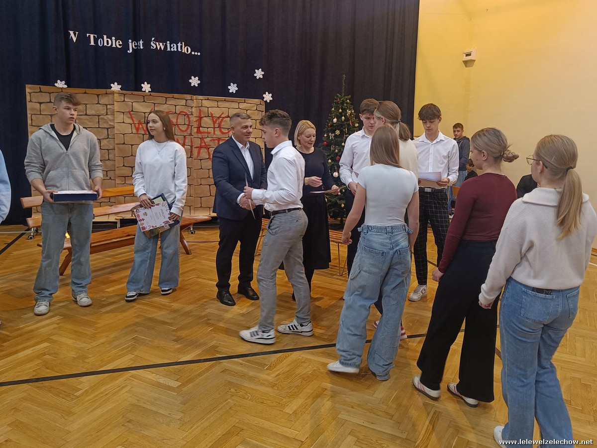 19 grudnia mieliśmy okazję obejrzeć przedstawienie wigilijne w wykonaniu uczniów klas drugich i trzecich naszego liceum wg scenariusza Adama Szafrańca. Narodzenie Pana Jezusa zostało tym razem osadzone we współczesności i wśród problemów dzisiejszych nastolatków, tych rodzinnych, duchowych, a nawet w obliczu śmiertelnej choroby. Przedstawienie przeplatały wzruszające występy chóru pod kierownictwem i przy akompaniamencie ks. Mariusza Rompy. Przedstawienie przygotowały panie: Anna Czarnecka- Górska i Anna Majewska. Wydarzenie uświetnił swoją obecnością Wicestarosta Powiatu Garwolińskiego- pan Mirosław Walicki oraz Dyrektor Wydziału Edukacji, Kultury i Sportu- pani Justyna Maszkiewicz. Przed częścią artystyczną wręczono nagrody za konkursy: stroików bożonarodzeniowych, za świąteczny wystrój sal oraz za najpiękniejszą kartę z życzeniami na Boże Narodzenie.