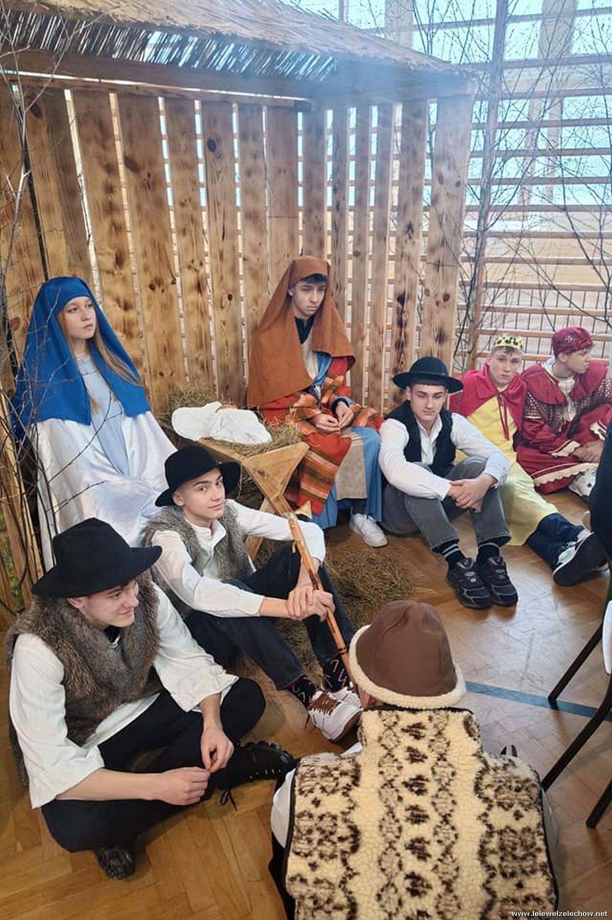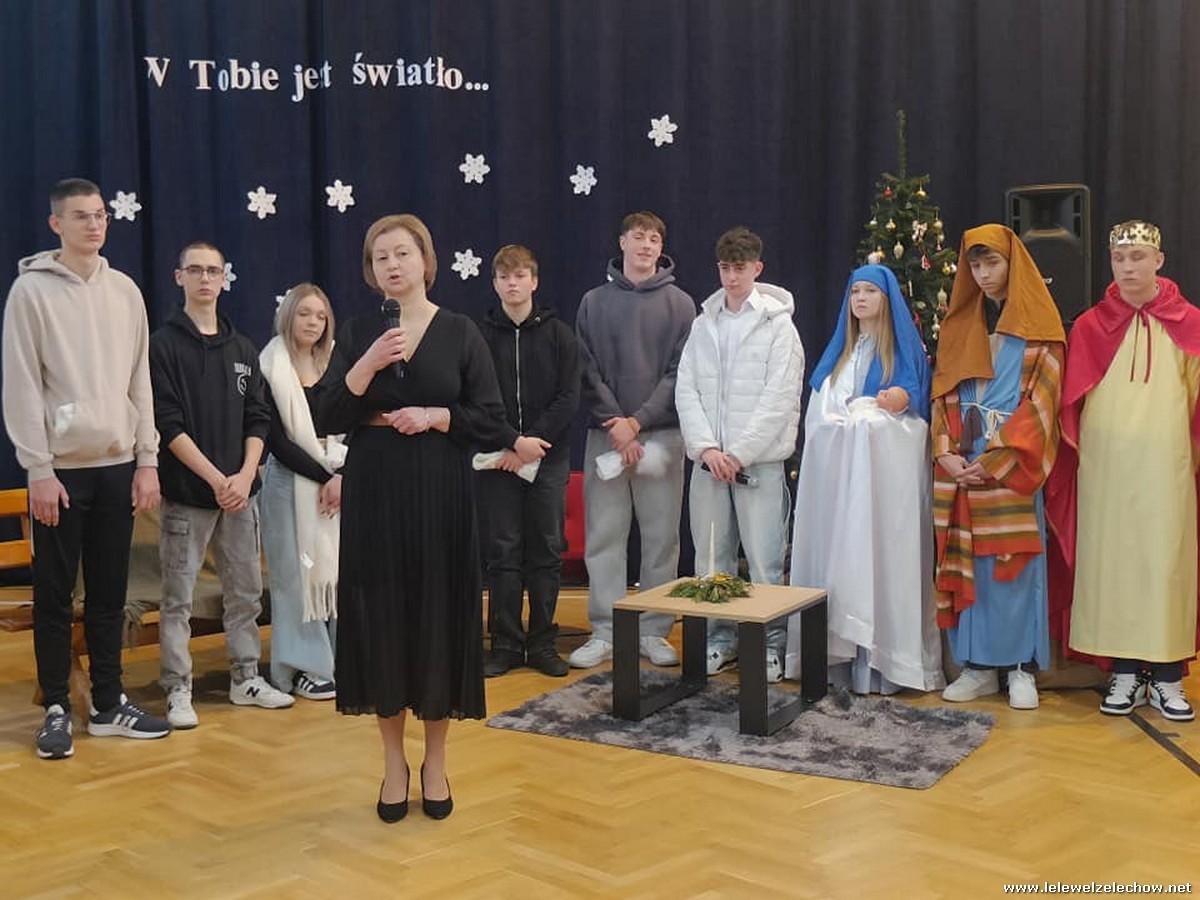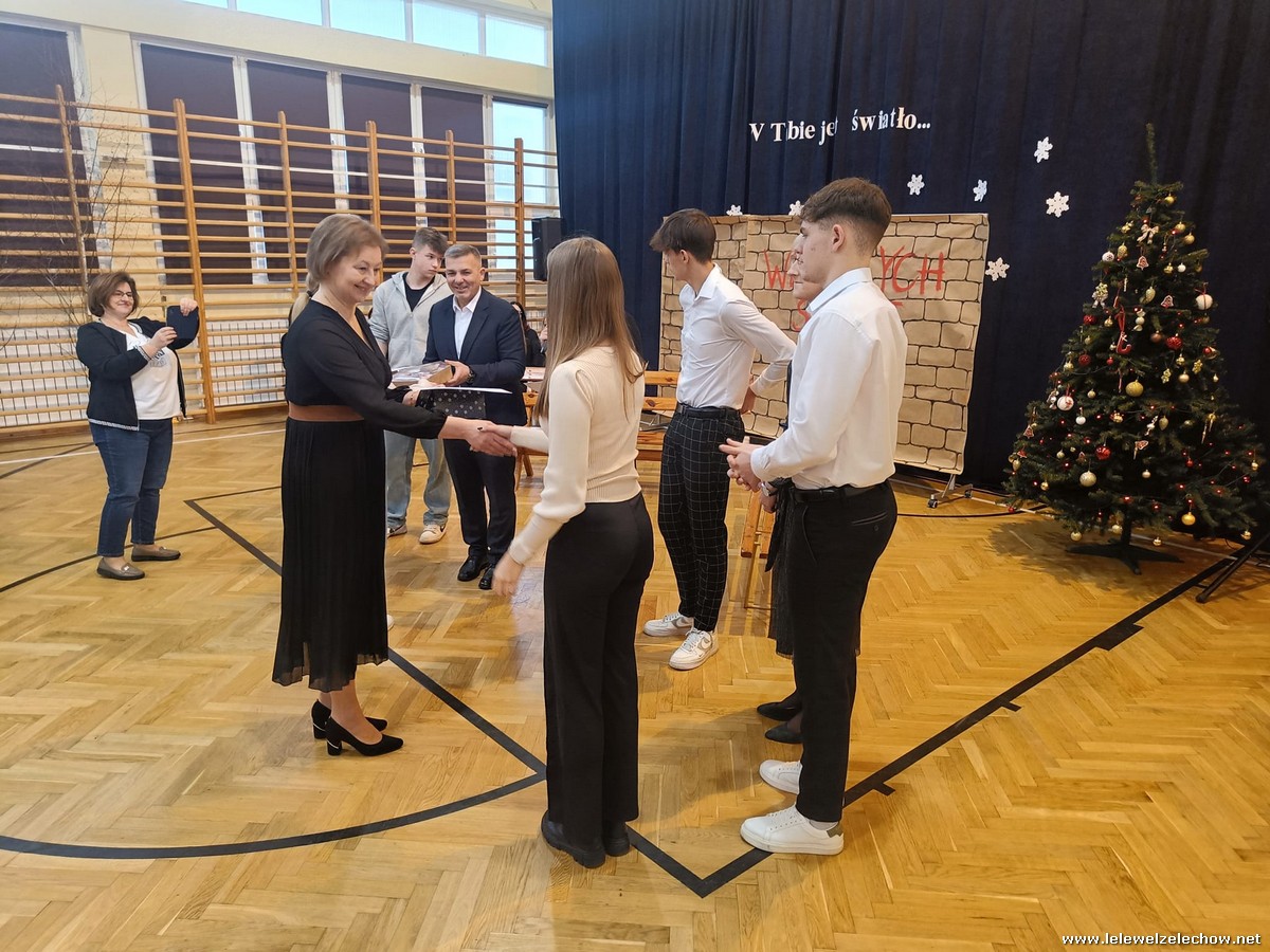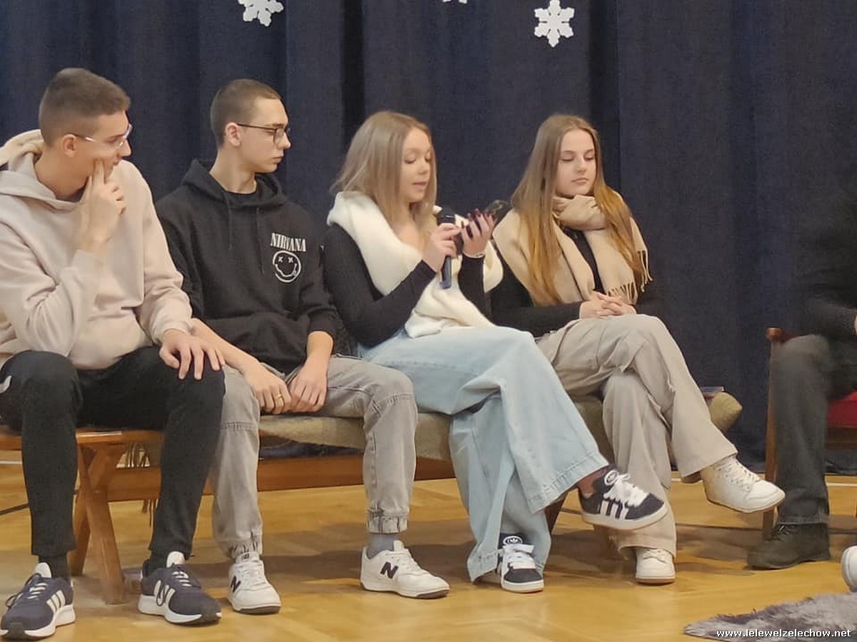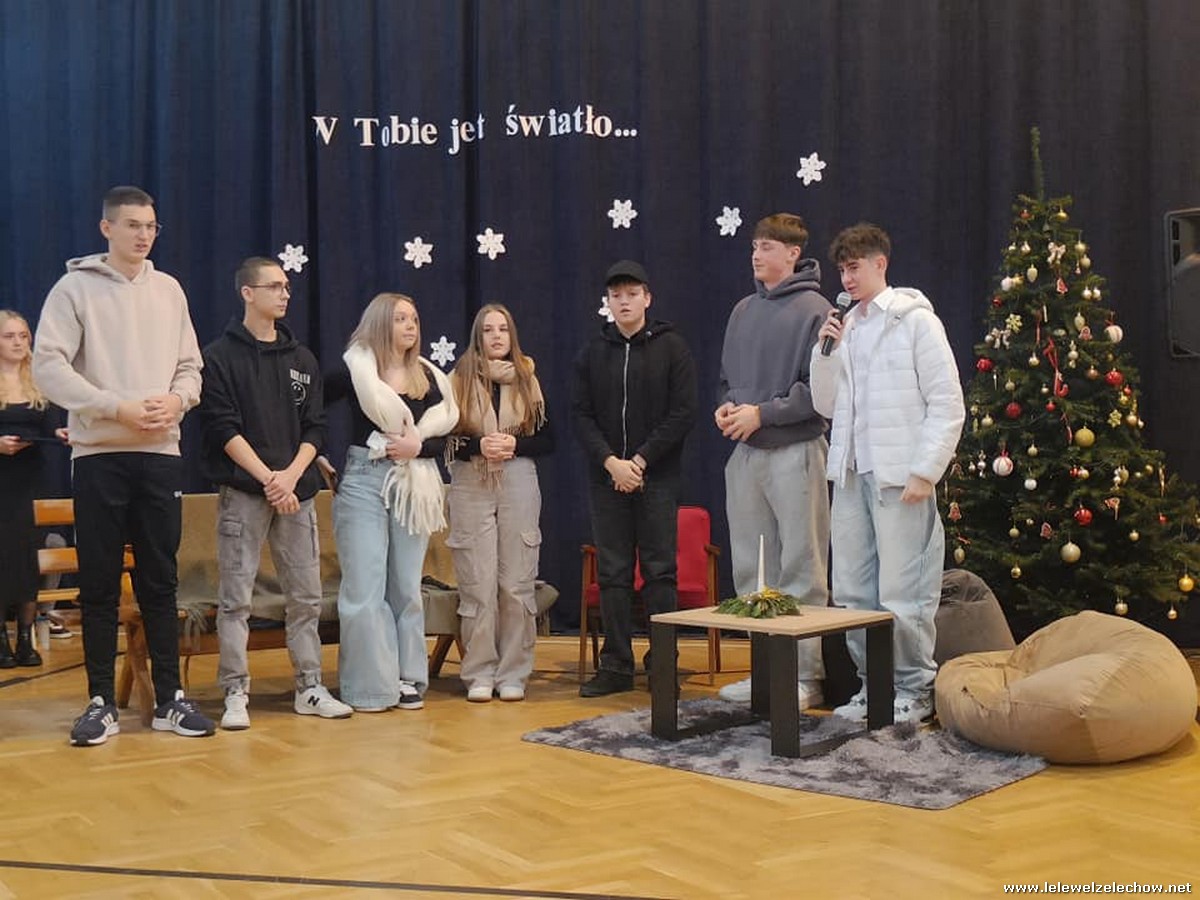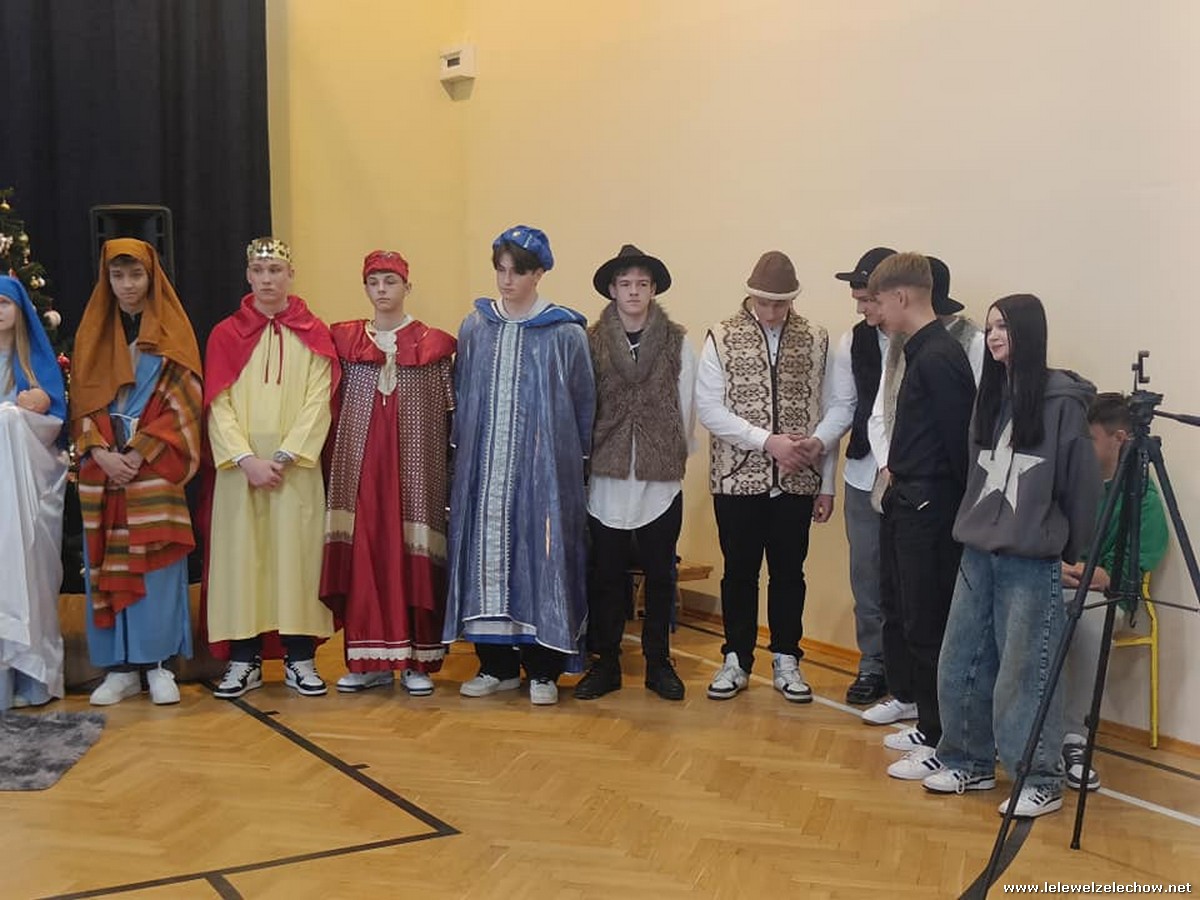 19 grudnia mieliśmy okazję obejrzeć przedstawienie wigilijne w wykonaniu uczniów klas drugich i trzecich naszego liceum wg scenariusza Adama Szafrańca. Narodzenie Pana Jezusa zostało tym razem osadzone we współczesności i wśród problemów dzisiejszych nastolatków, tych rodzinnych, duchowych, a nawet w obliczu śmiertelnej choroby. Przedstawienie przeplatały wzruszające występy chóru pod kierownictwem i przy akompaniamencie ks. Mariusza Rompy. Przedstawienie przygotowały panie: Anna Czarnecka- Górska i Anna Majewska. Wydarzenie uświetnił swoją obecnością Wicestarosta Powiatu Garwolińskiego- pan Mirosław Walicki oraz Dyrektor Wydziału Edukacji, Kultury i Sportu- pani Justyna Maszkiewicz. Przed częścią artystyczną wręczono nagrody za konkursy: stroików bożonarodzeniowych, za świąteczny wystrój sal oraz za najpiękniejszą kartę z życzeniami na Boże Narodzenie.