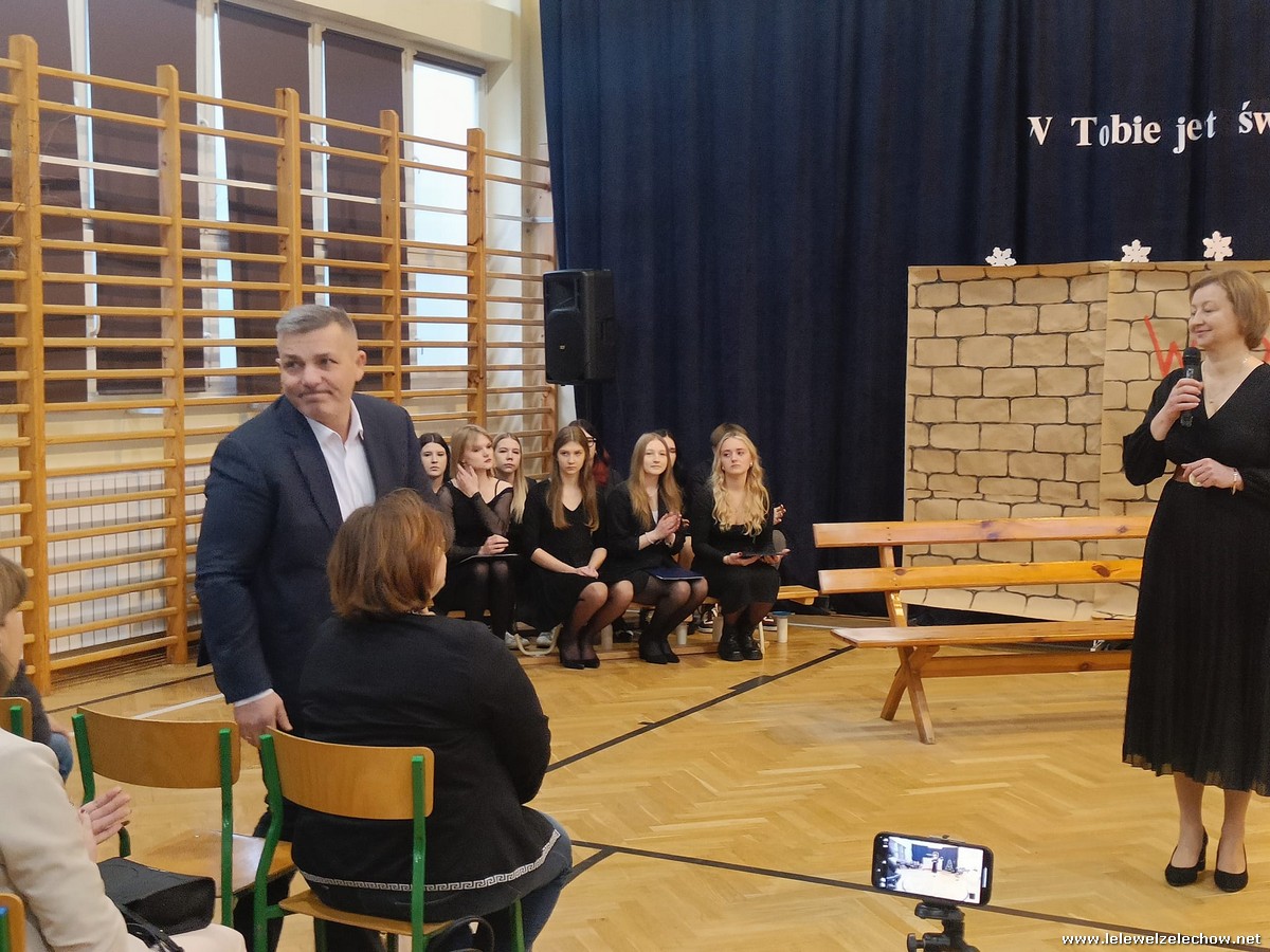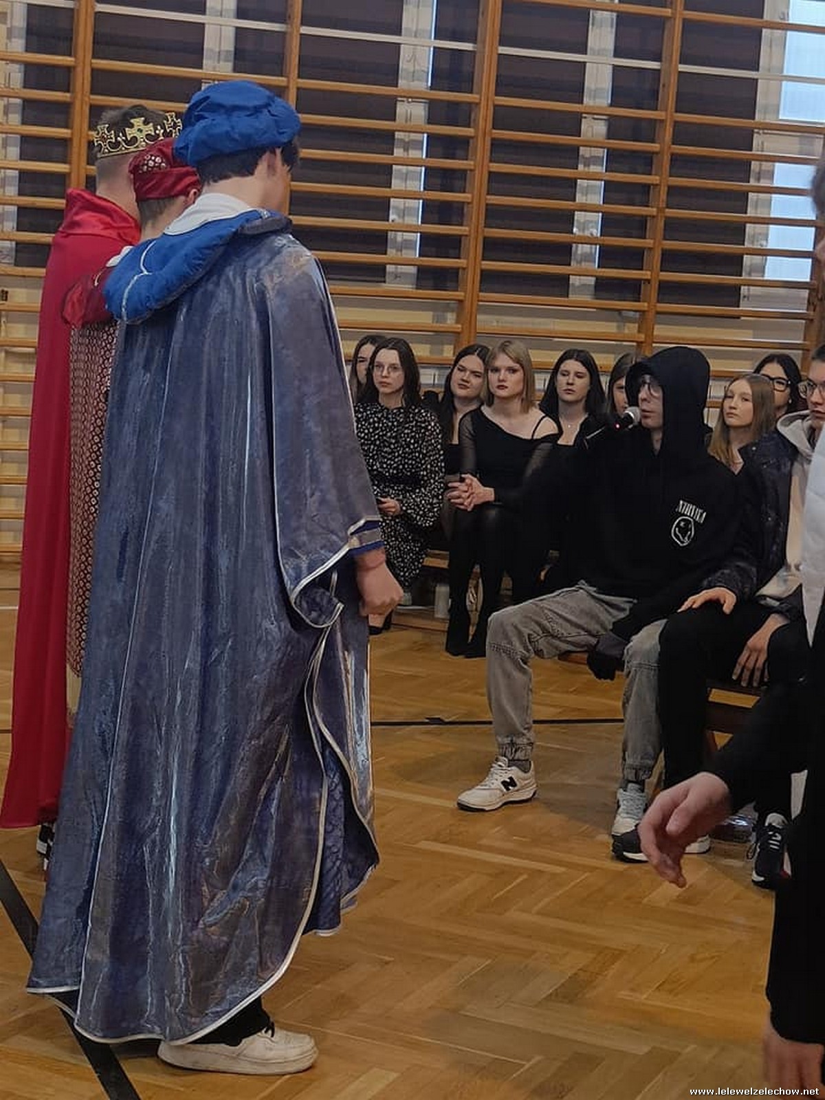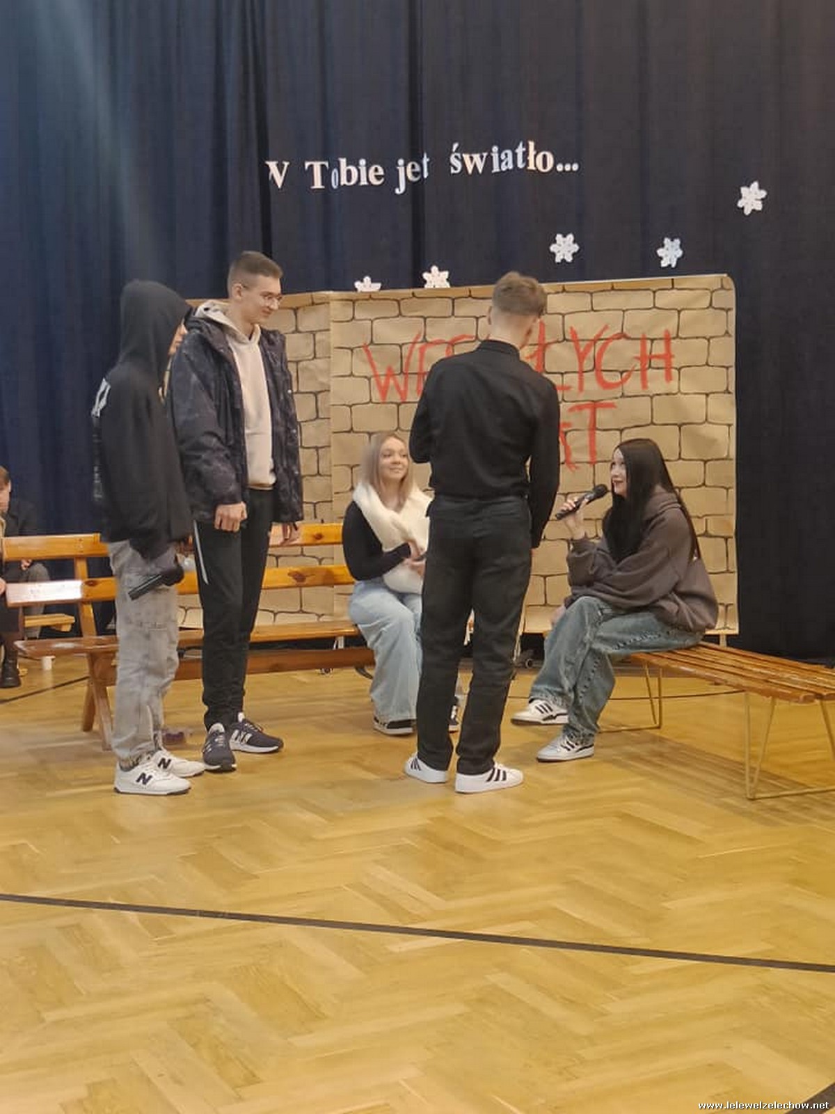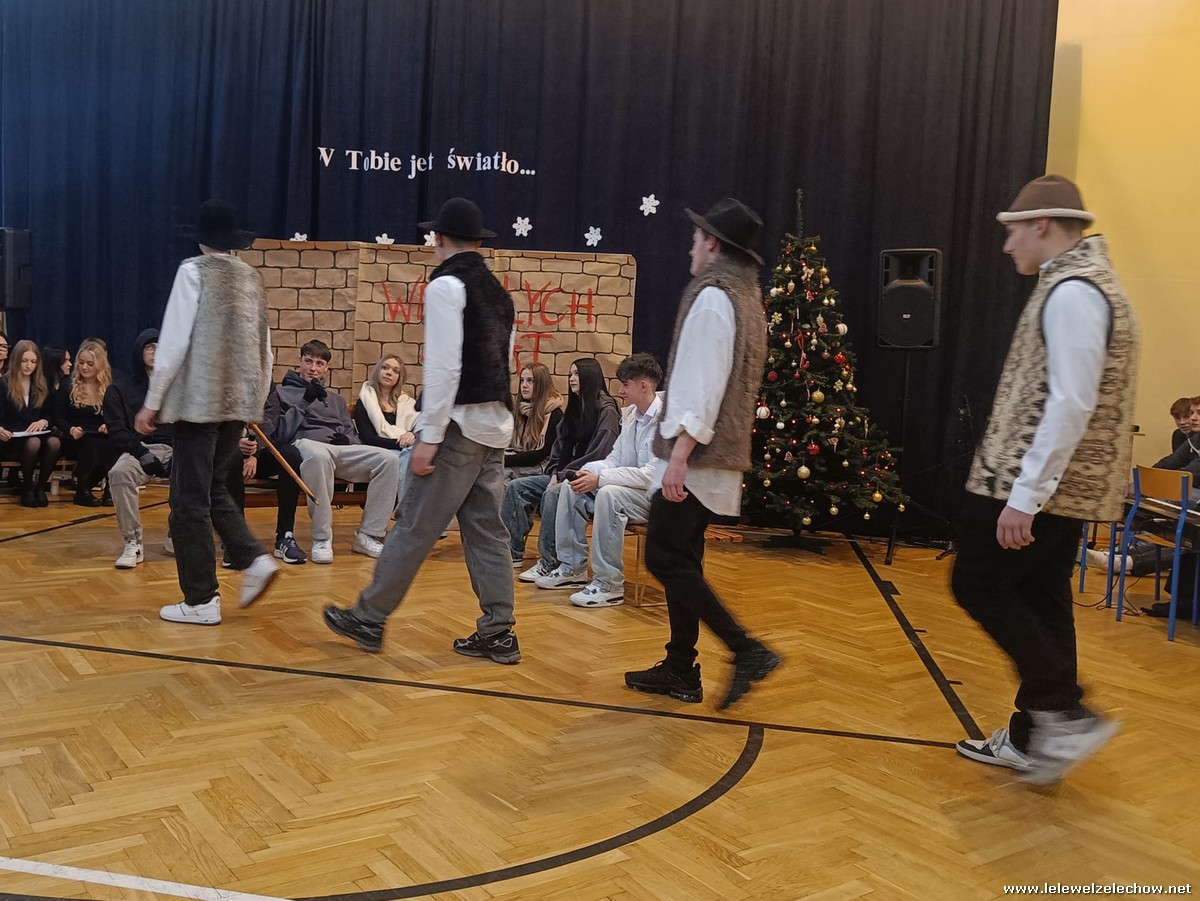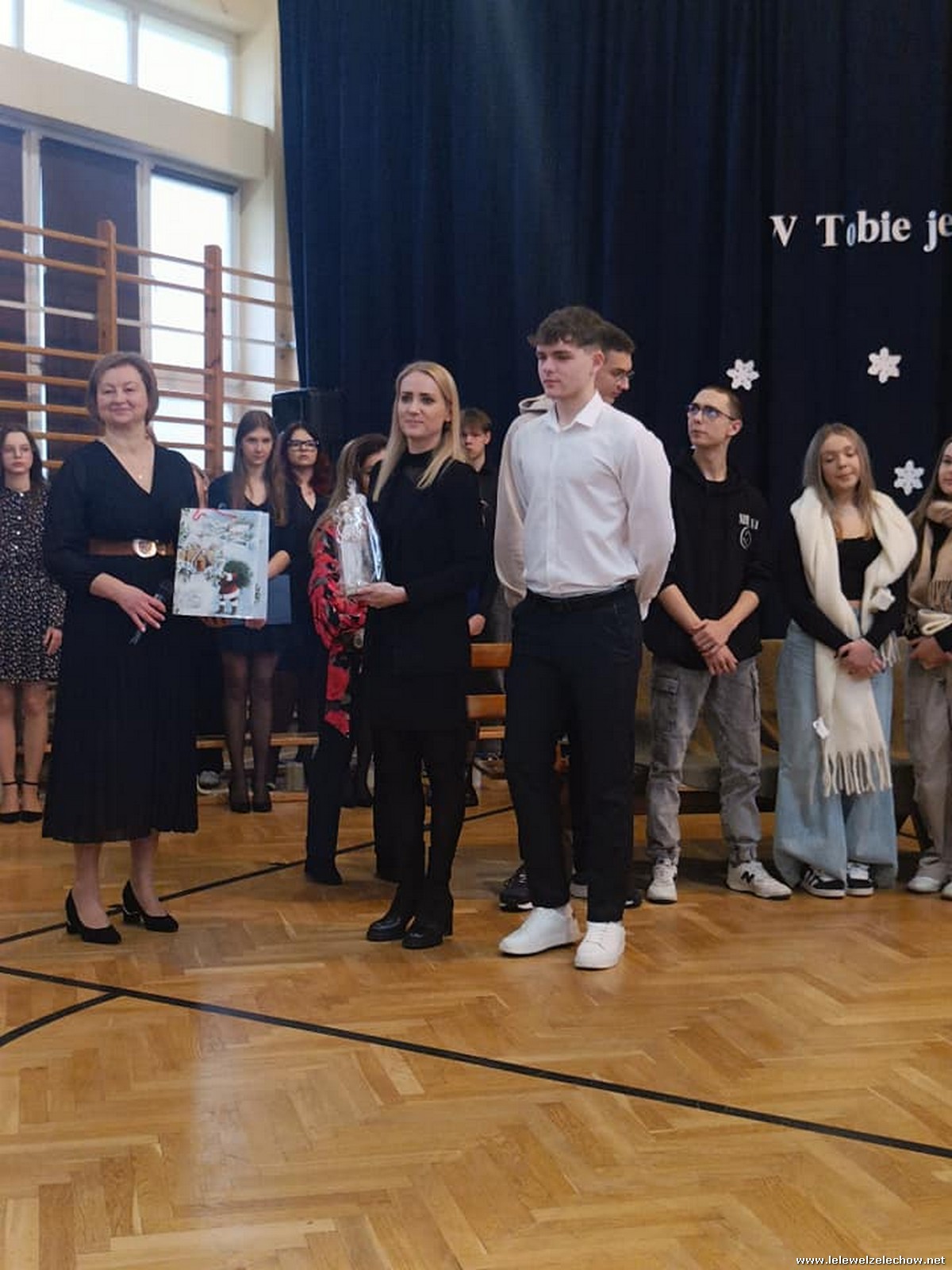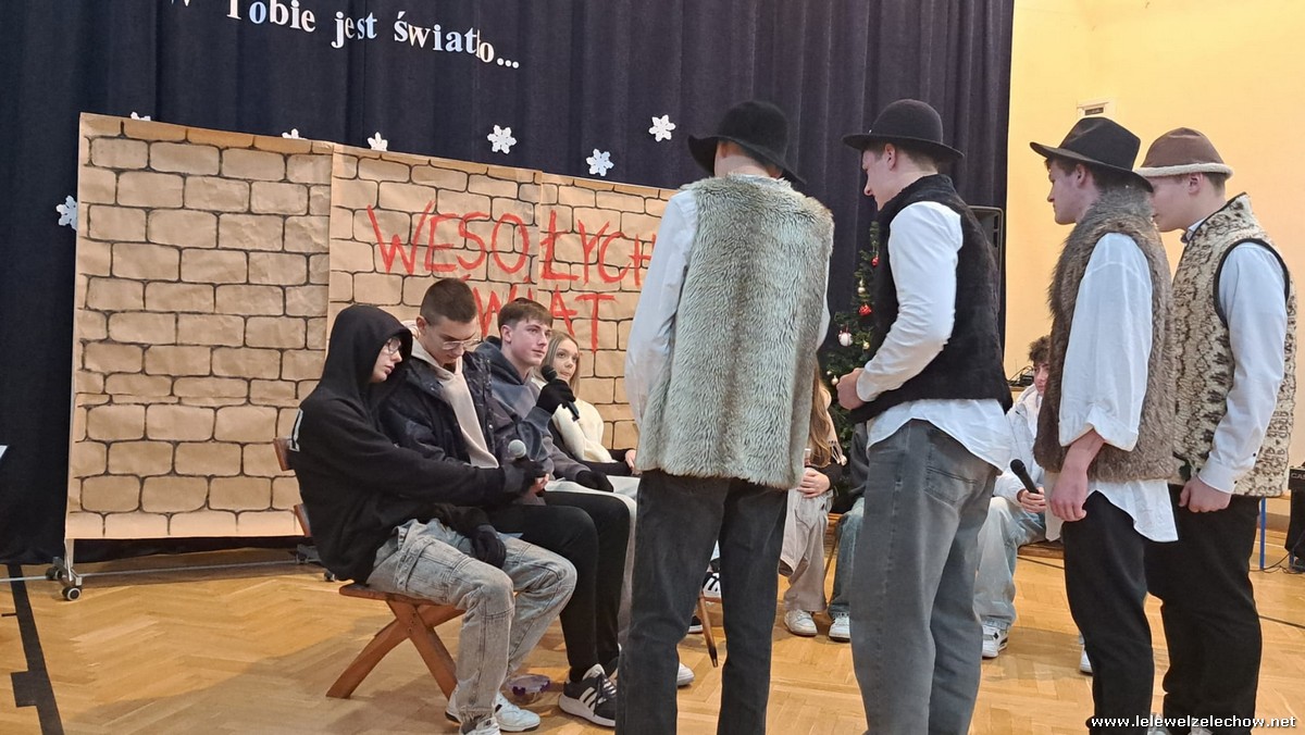 19 grudnia mieliśmy okazję obejrzeć przedstawienie wigilijne w wykonaniu uczniów klas drugich i trzecich naszego liceum wg scenariusza Adama Szafrańca. Narodzenie Pana Jezusa zostało tym razem osadzone we współczesności i wśród problemów dzisiejszych nastolatków, tych rodzinnych, duchowych, a nawet w obliczu śmiertelnej choroby. Przedstawienie przeplatały wzruszające występy chóru pod kierownictwem i przy akompaniamencie ks. Mariusza Rompy. Przedstawienie przygotowały panie: Anna Czarnecka- Górska i Anna Majewska. Wydarzenie uświetnił swoją obecnością Wicestarosta Powiatu Garwolińskiego- pan Mirosław Walicki oraz Dyrektor Wydziału Edukacji, Kultury i Sportu- pani Justyna Maszkiewicz. Przed częścią artystyczną wręczono nagrody za konkursy: stroików bożonarodzeniowych, za świąteczny wystrój sal oraz za najpiękniejszą kartę z życzeniami na Boże Narodzenie.