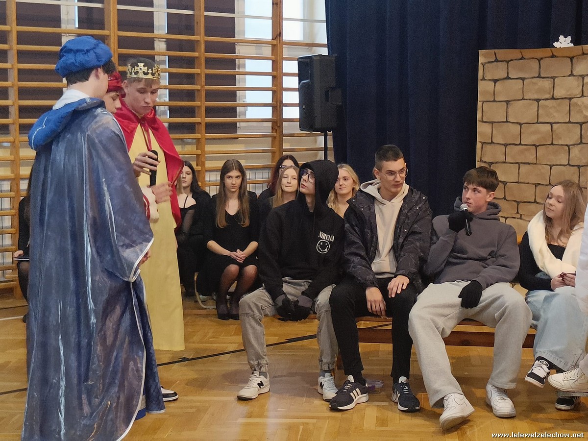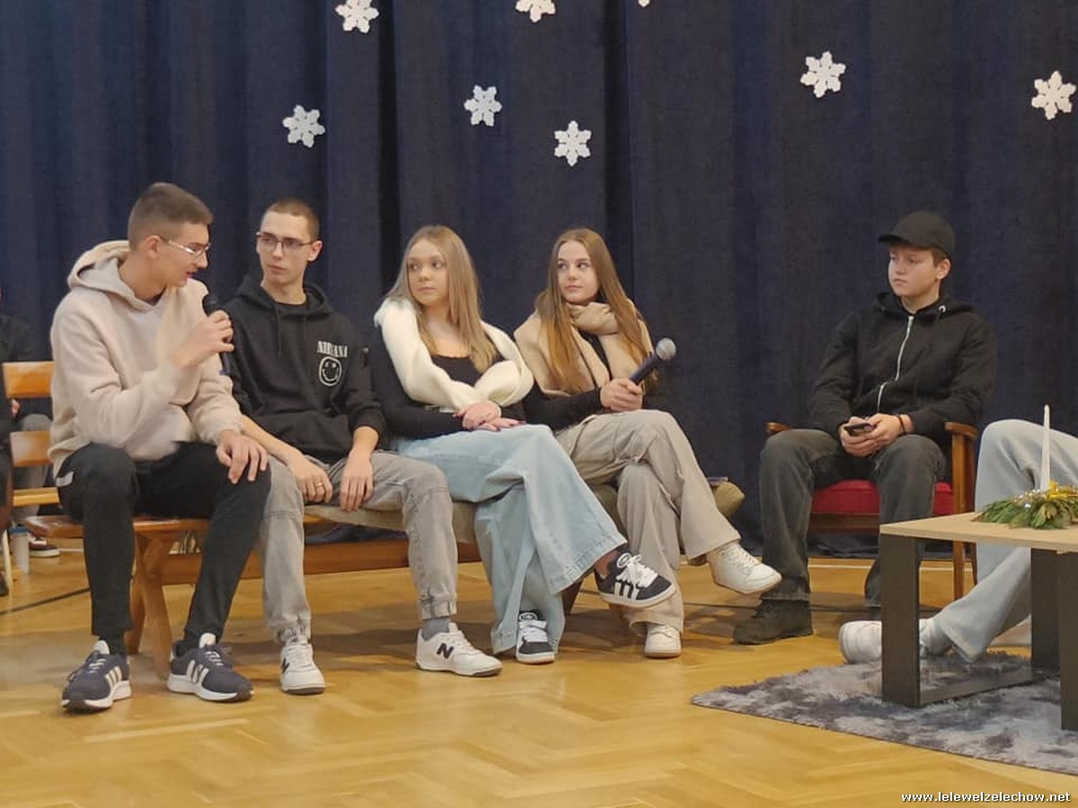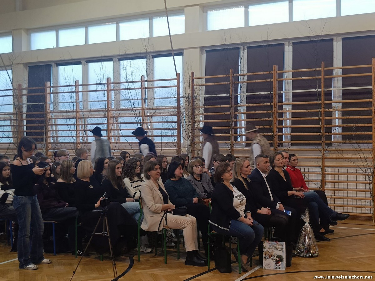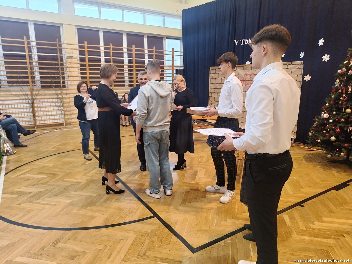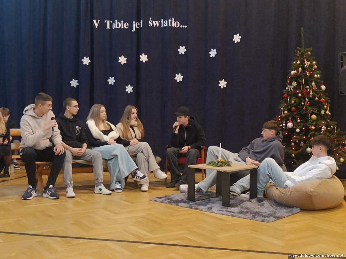 19 grudnia mieliśmy okazję obejrzeć przedstawienie wigilijne w wykonaniu uczniów klas drugich i trzecich naszego liceum wg scenariusza Adama Szafrańca. Narodzenie Pana Jezusa zostało tym razem osadzone we współczesności i wśród problemów dzisiejszych nastolatków, tych rodzinnych, duchowych, a nawet w obliczu śmiertelnej choroby. Przedstawienie przeplatały wzruszające występy chóru pod kierownictwem i przy akompaniamencie ks. Mariusza Rompy. Przedstawienie przygotowały panie: Anna Czarnecka- Górska i Anna Majewska. Wydarzenie uświetnił swoją obecnością Wicestarosta Powiatu Garwolińskiego- pan Mirosław Walicki oraz Dyrektor Wydziału Edukacji, Kultury i Sportu- pani Justyna Maszkiewicz. Przed częścią artystyczną wręczono nagrody za konkursy: stroików bożonarodzeniowych, za świąteczny wystrój sal oraz za najpiękniejszą kartę z życzeniami na Boże Narodzenie.
