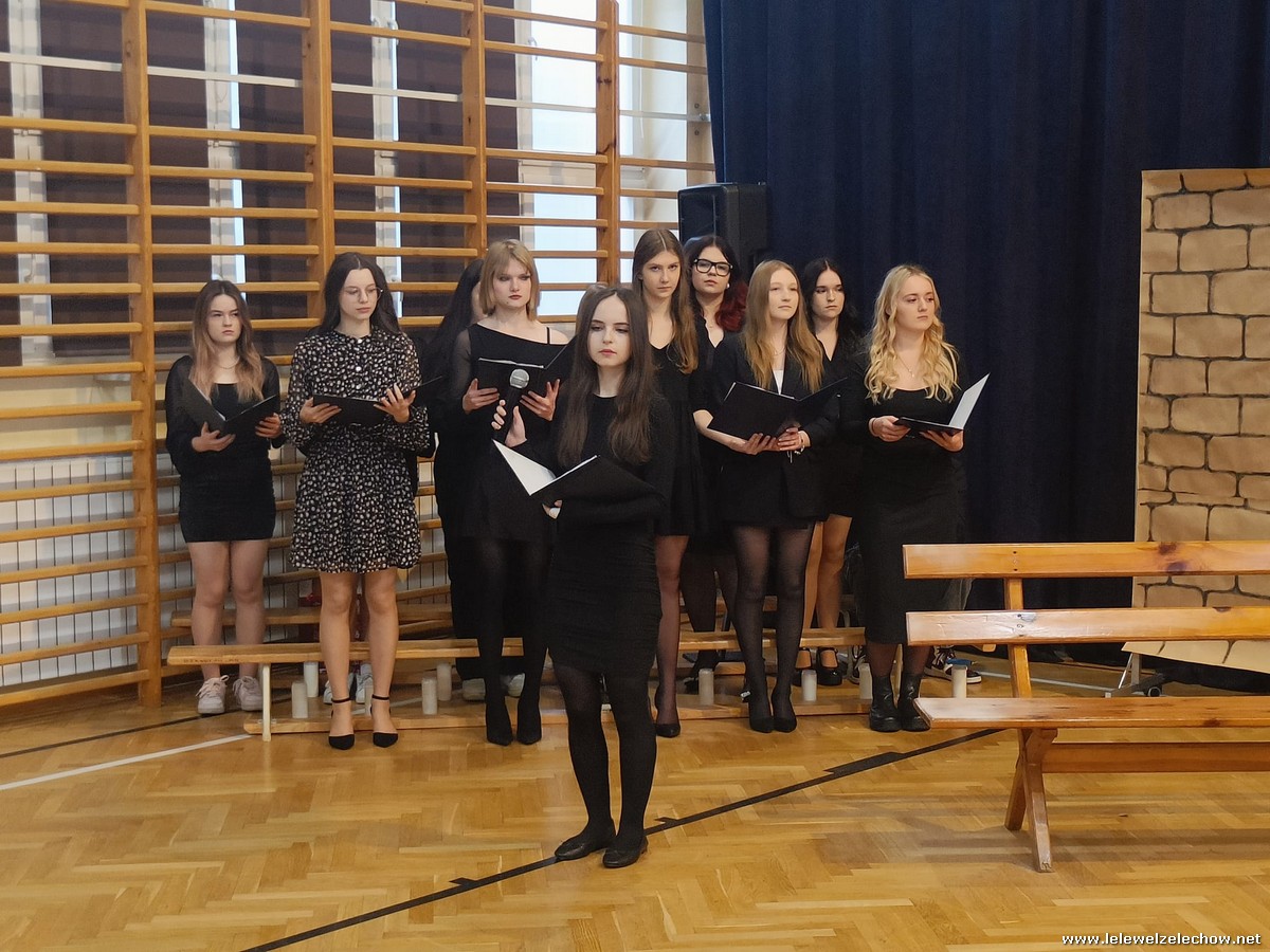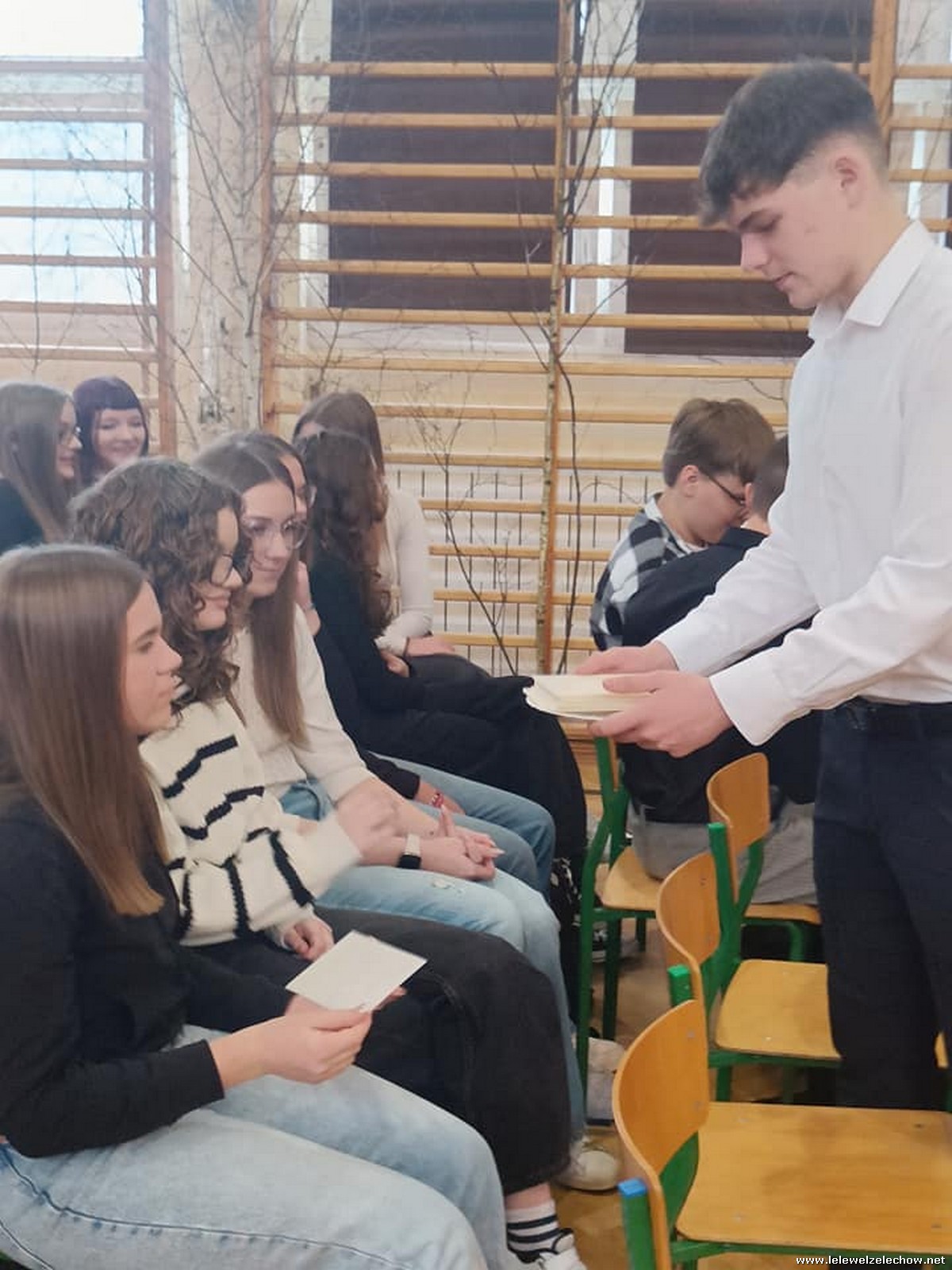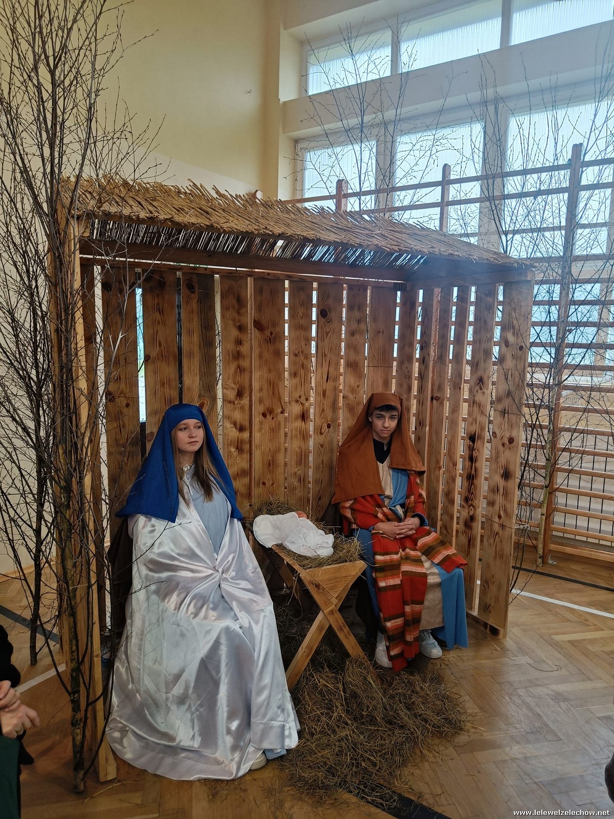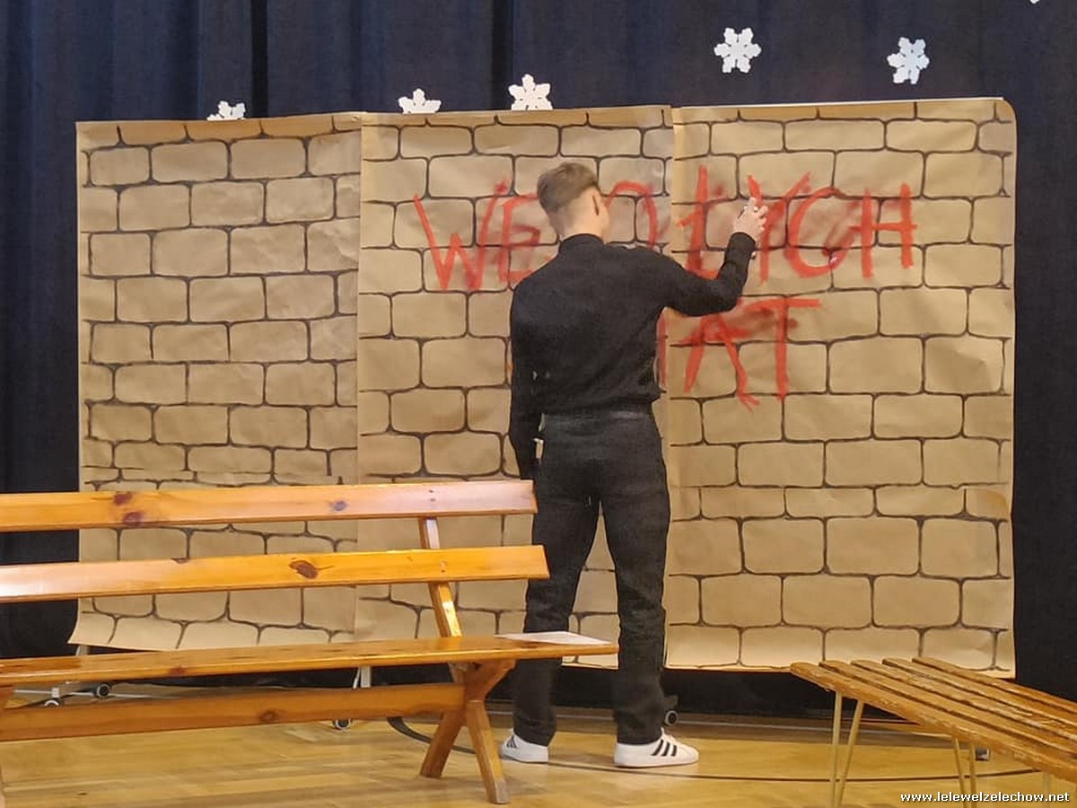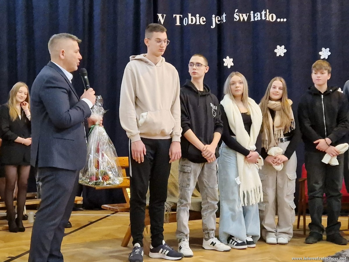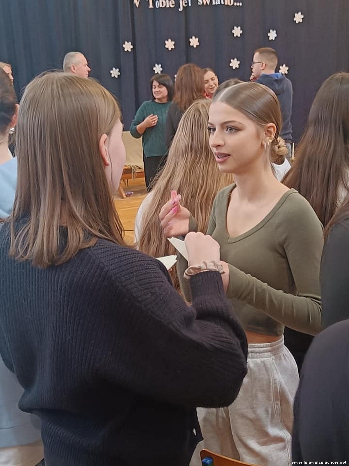 19 grudnia mieliśmy okazję obejrzeć przedstawienie wigilijne w wykonaniu uczniów klas drugich i trzecich naszego liceum wg scenariusza Adama Szafrańca. Narodzenie Pana Jezusa zostało tym razem osadzone we współczesności i wśród problemów dzisiejszych nastolatków, tych rodzinnych, duchowych, a nawet w obliczu śmiertelnej choroby. Przedstawienie przeplatały wzruszające występy chóru pod kierownictwem i przy akompaniamencie ks. Mariusza Rompy. Przedstawienie przygotowały panie: Anna Czarnecka- Górska i Anna Majewska. Wydarzenie uświetnił swoją obecnością Wicestarosta Powiatu Garwolińskiego- pan Mirosław Walicki oraz Dyrektor Wydziału Edukacji, Kultury i Sportu- pani Justyna Maszkiewicz. Przed częścią artystyczną wręczono nagrody za konkursy: stroików bożonarodzeniowych, za świąteczny wystrój sal oraz za najpiękniejszą kartę z życzeniami na Boże Narodzenie.