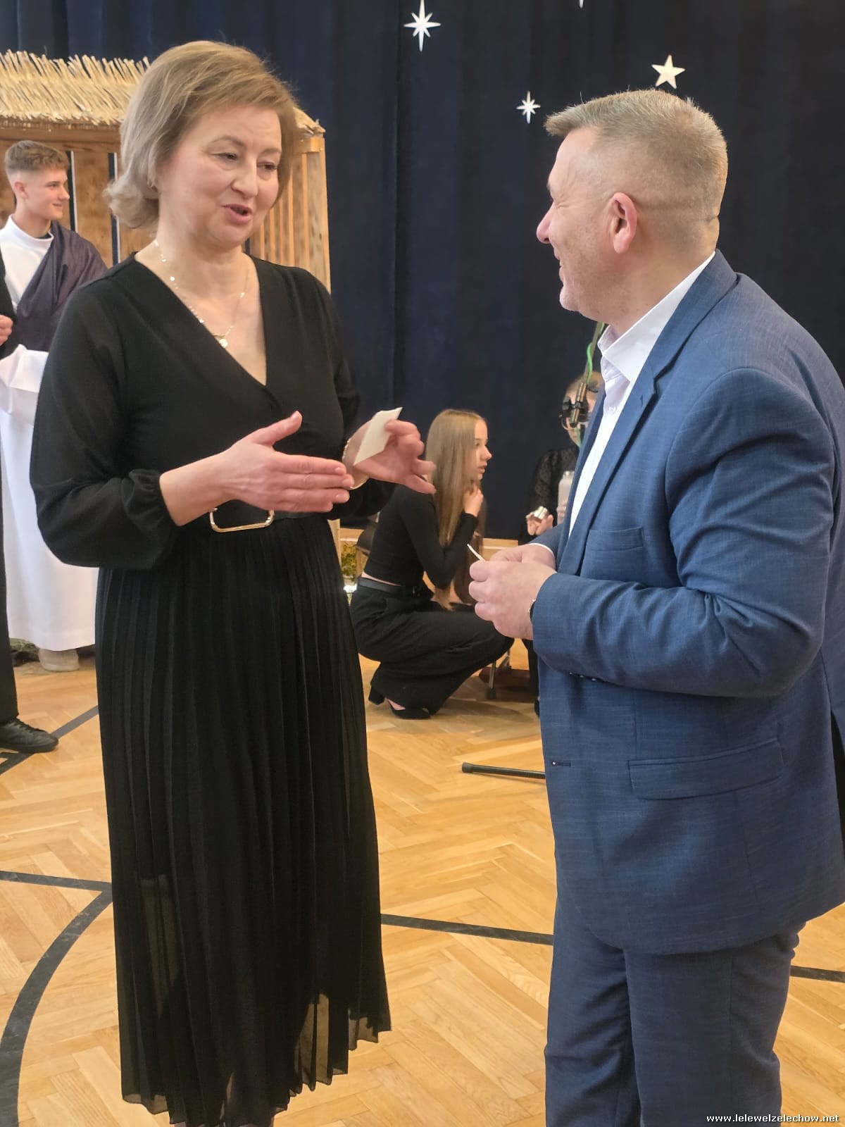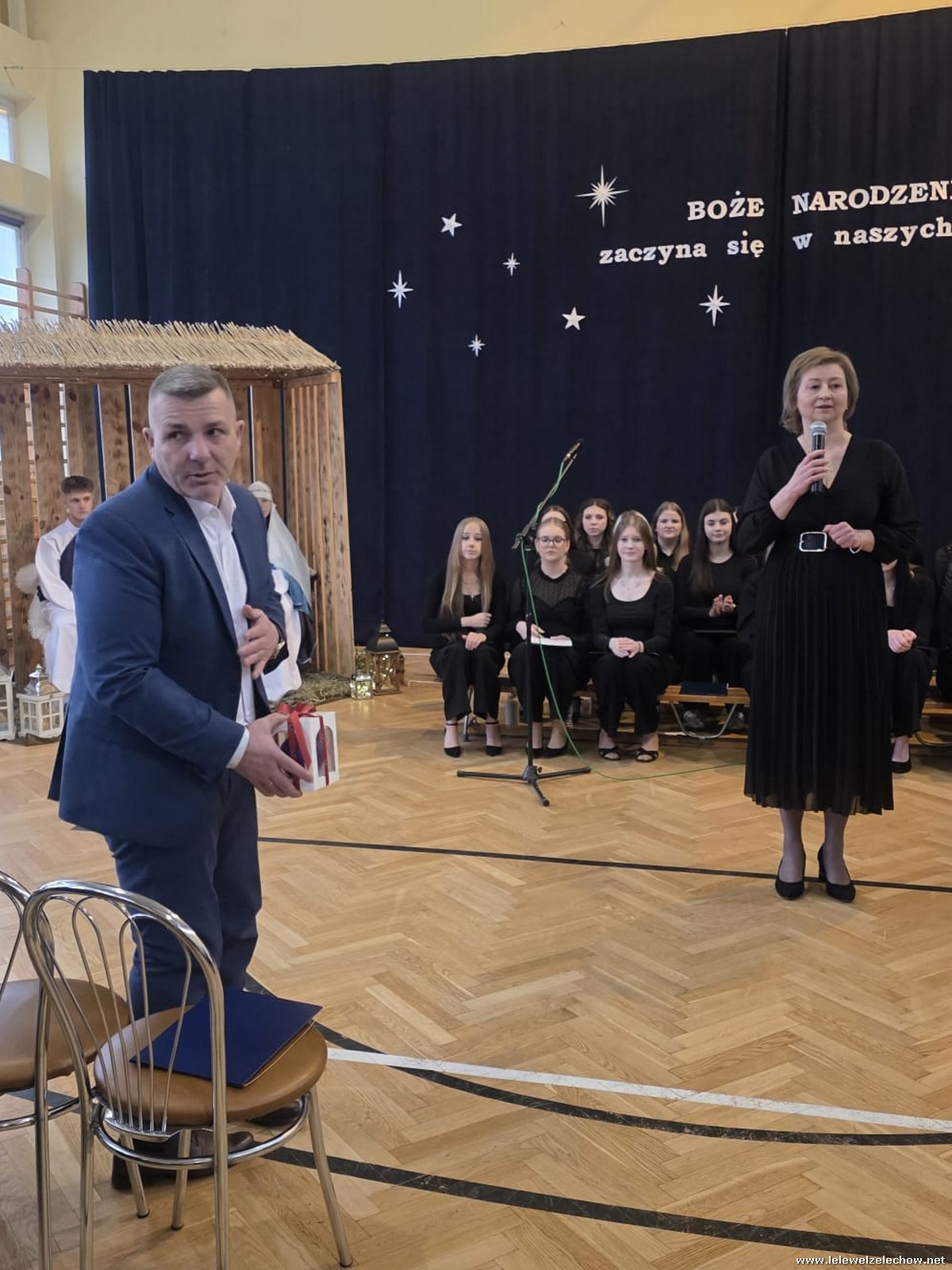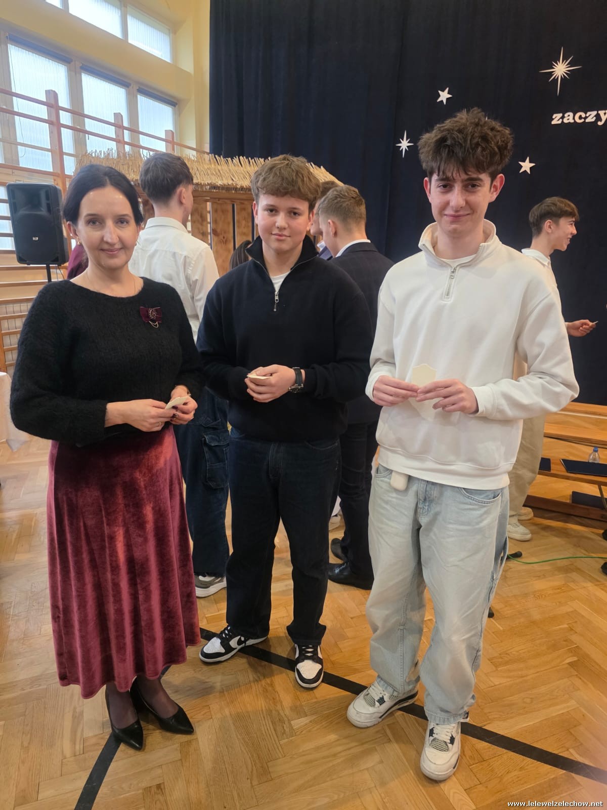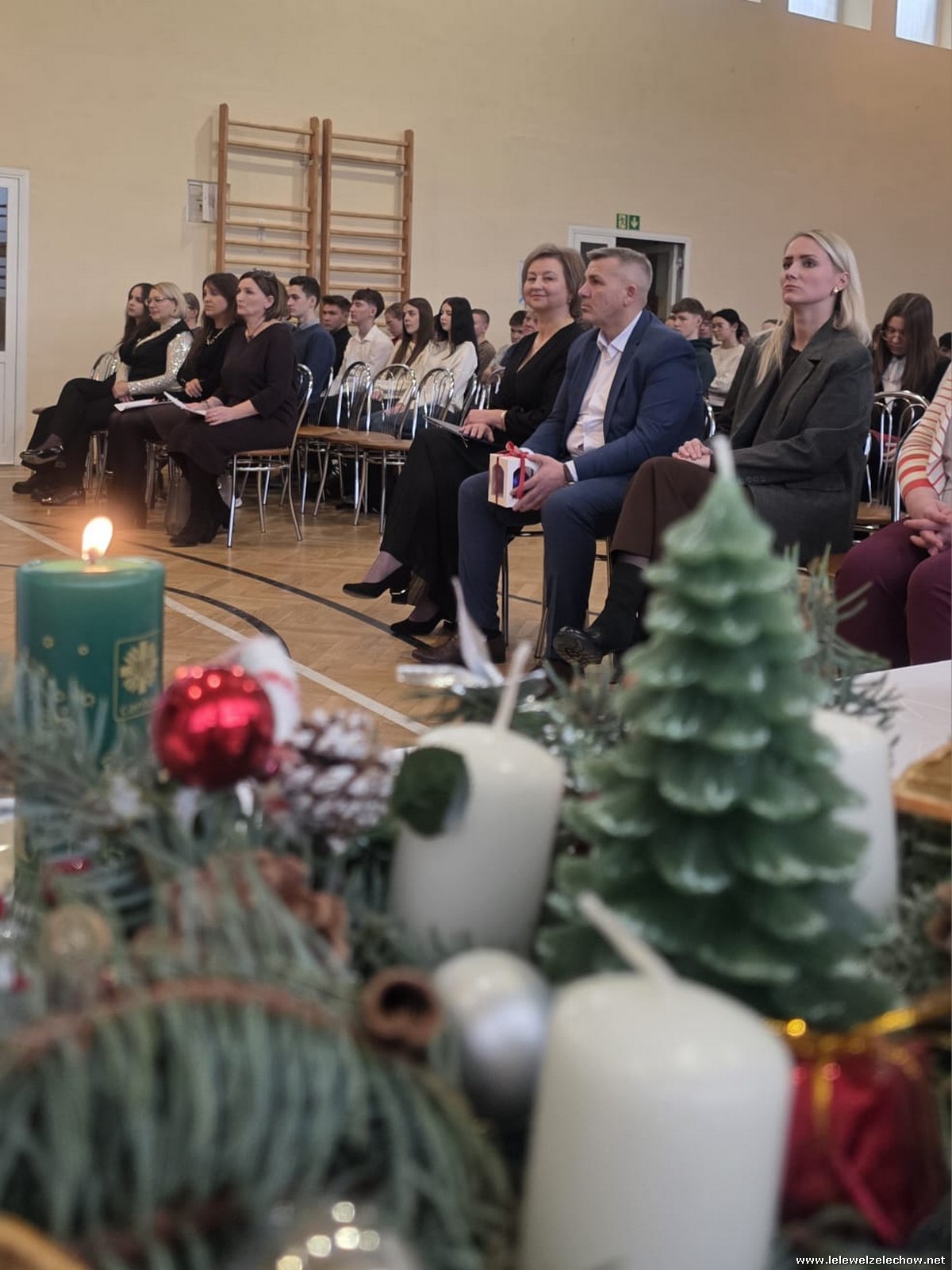 W dniu dzisiejszym w naszej szkole odbyła się uroczysta Wigilia , na której zgromadziła się cała społeczność szkolna oraz goście: Wicestarosta Powiatu Garwolińskiego - pan Mirosław Walicki i Przewodnicząca Rady Rodziców - pani Ksenia Karbowska.