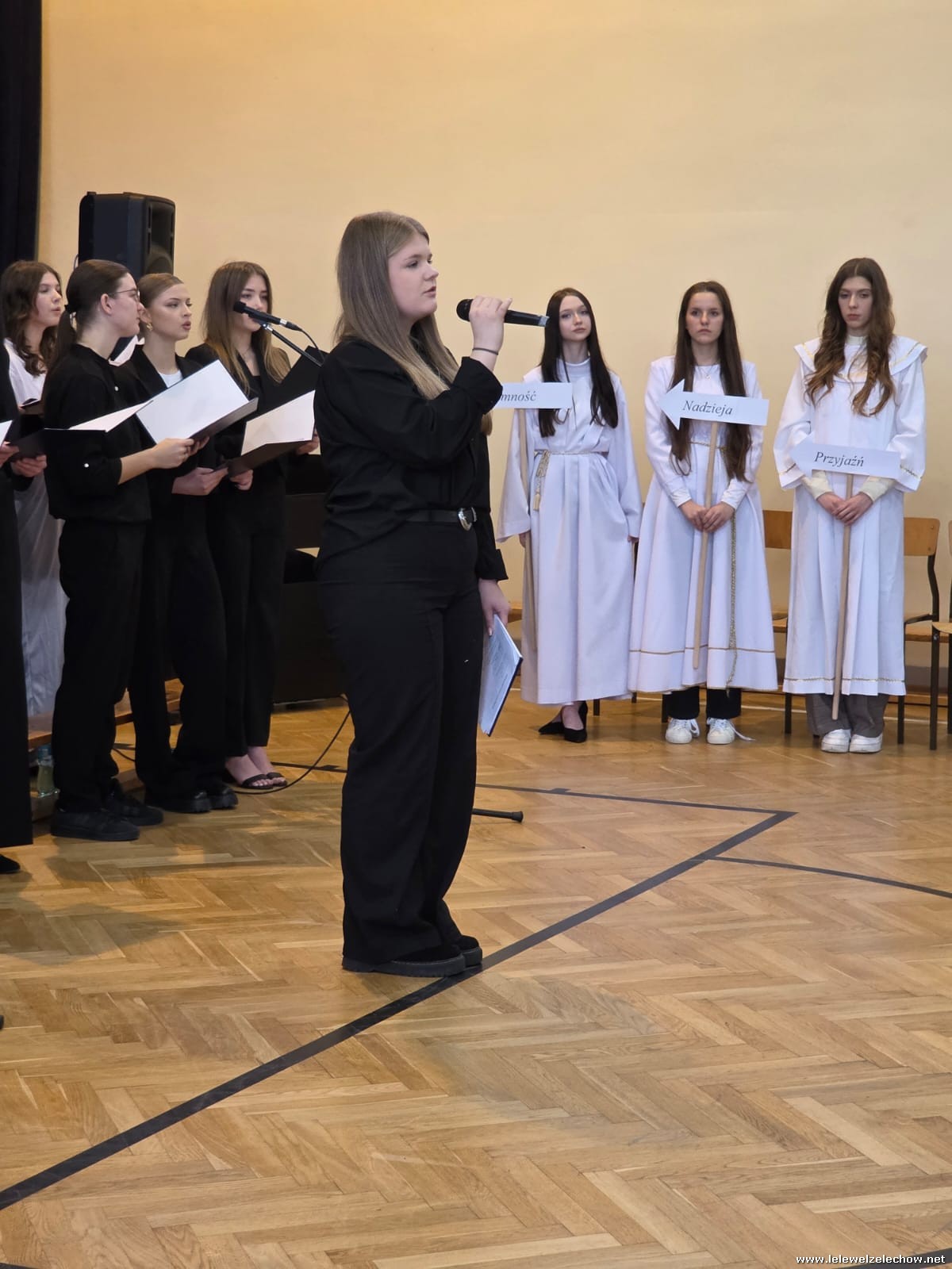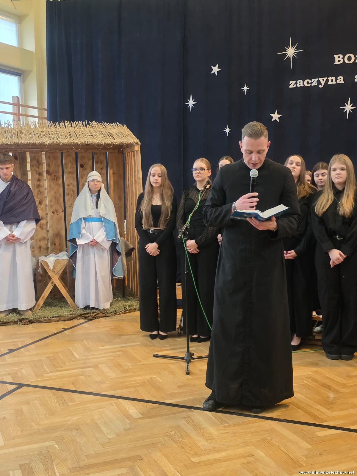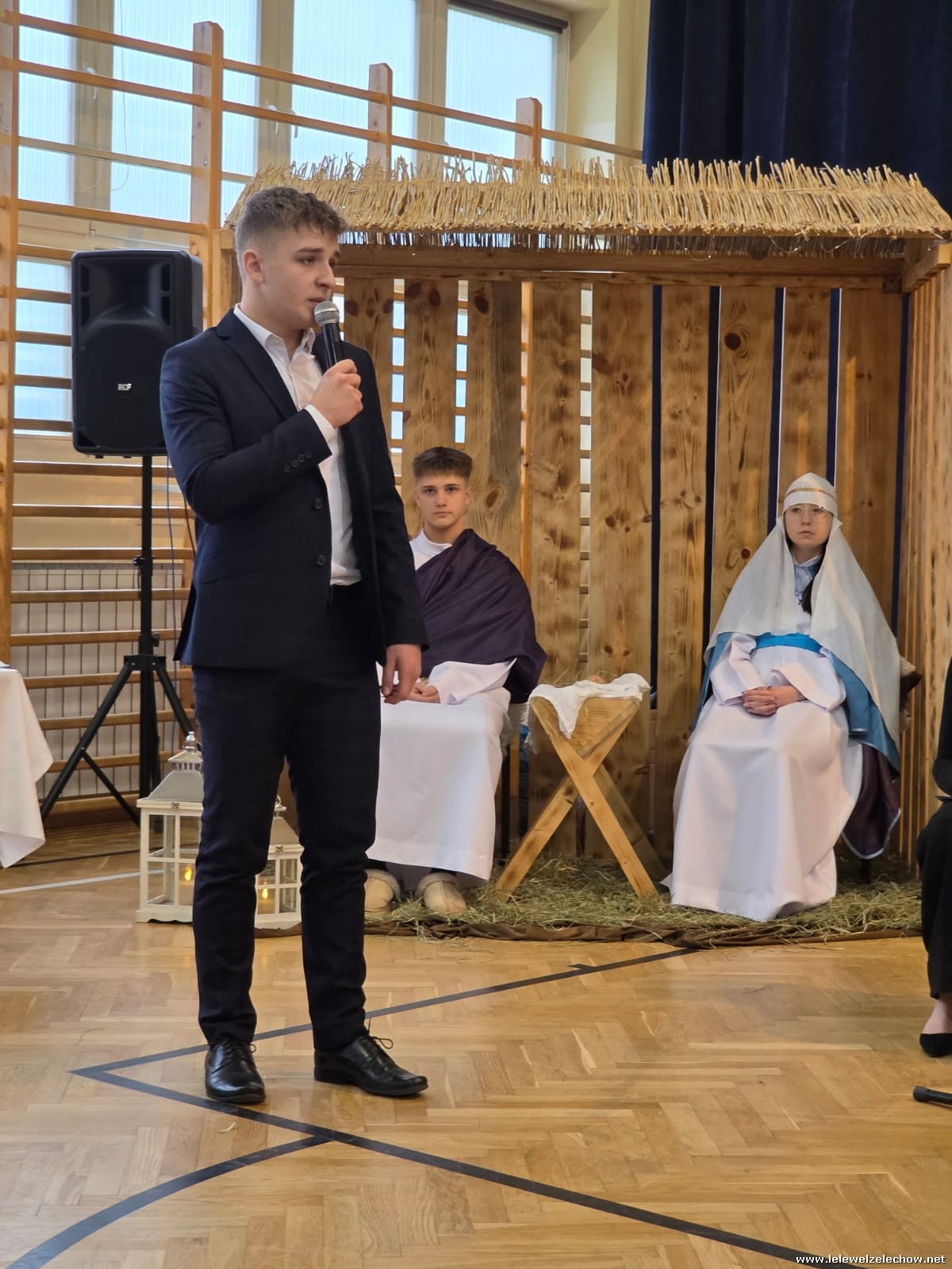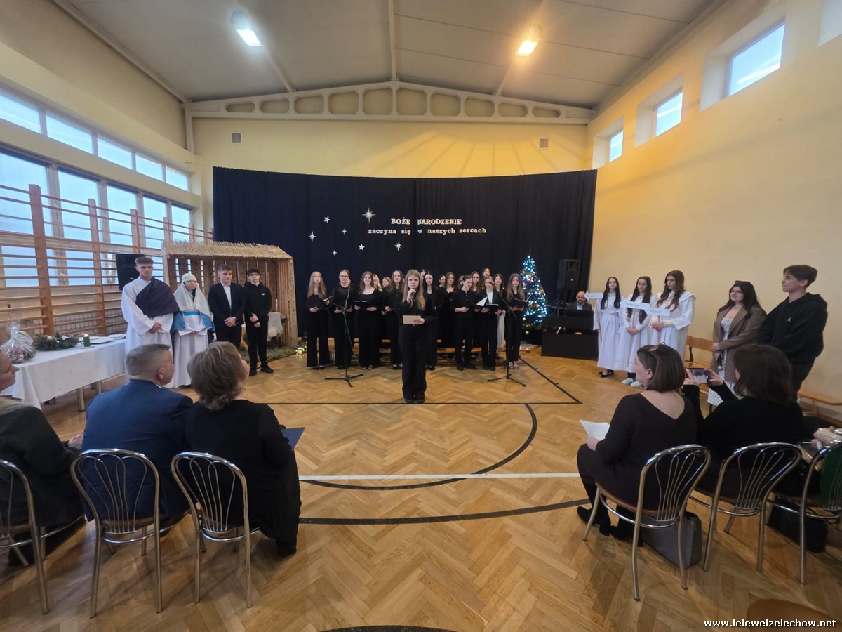 W tym roku jasełkom przyświecało hasło "W drodze do Betlejem". Uczniowie klas drugich w kilku scenkach uświadomili nam, że w świętach najważniejsze jest spotkanie z Bogiem i drugim człowiekiem, a Boże Narodzenie zaczyna się w naszych sercach. Solistki i chórek klas drugich przy wsparciu starszych koleżanek pięknie zaśpiewali kolędy. Po jasełkach goście, pani dyrektor Sylwia Tomaszek, przedstawiciele Samorządu Uczniowskiego złożyli życzenia, następnie ksiądz Mariusz Rompa odczytał fragment Pisma Świętego, po czym podzieliliśmy się opłatkiem.
