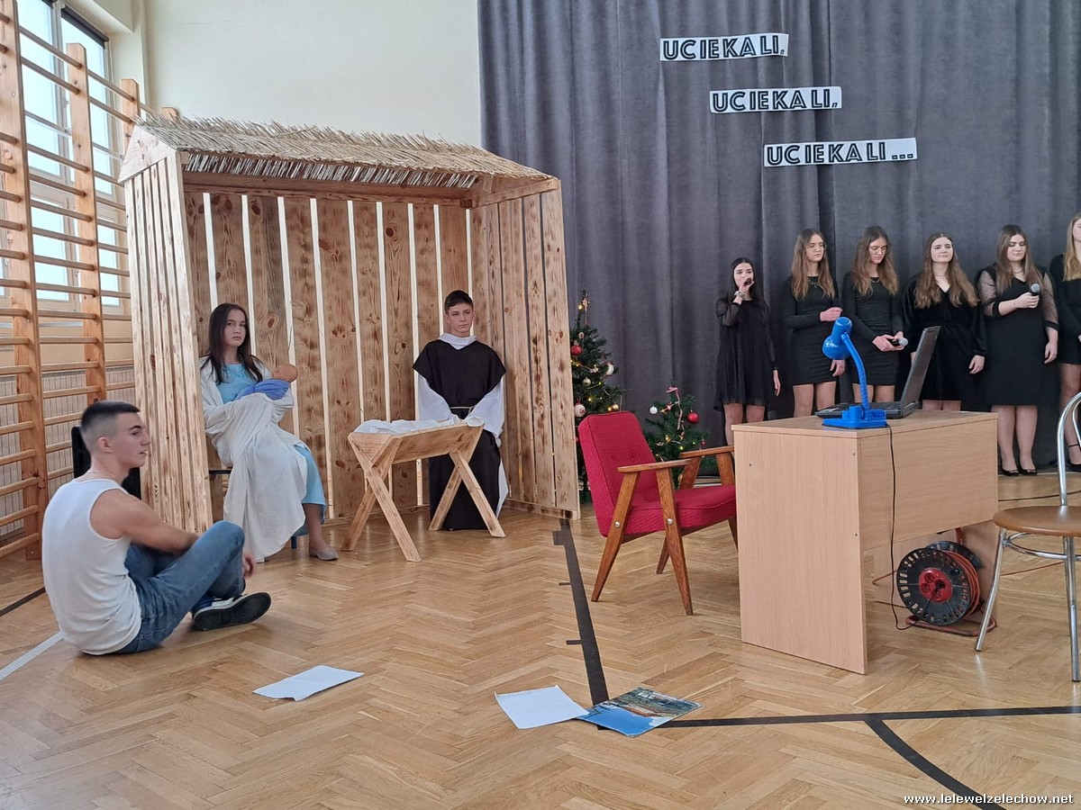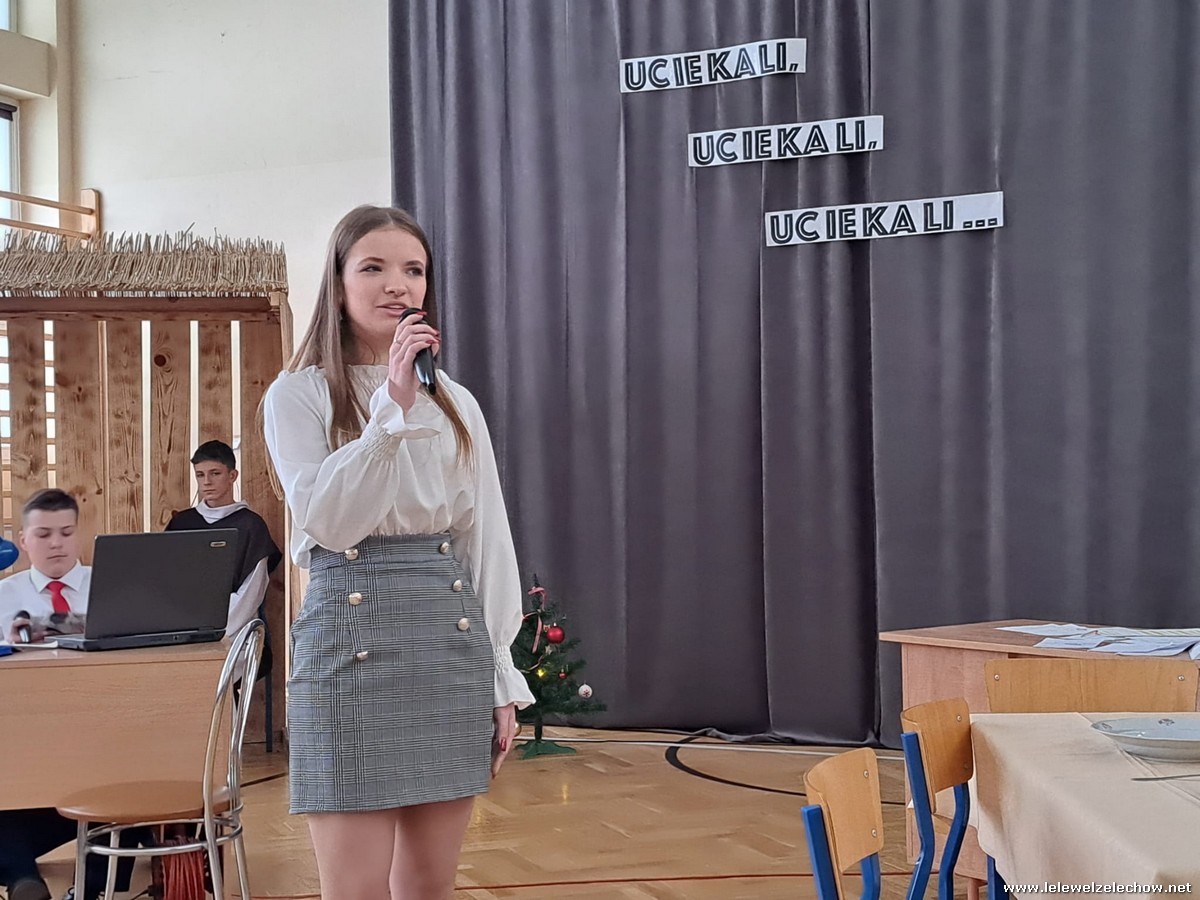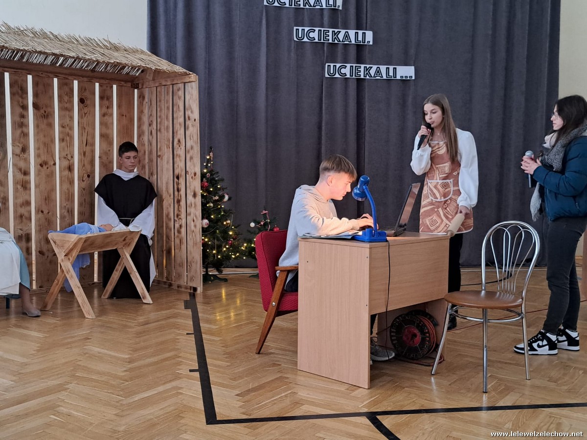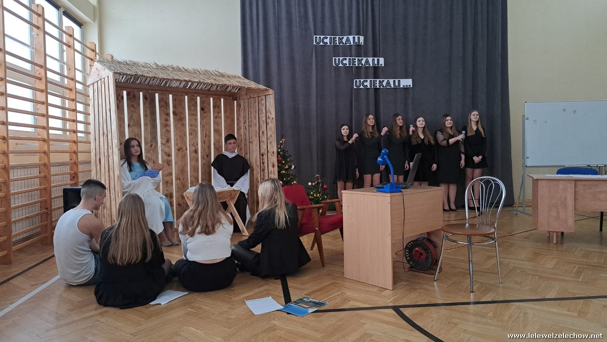 W tygodniu poprzedzającym Święta Bożego Narodzenia w naszej szkole odbyła się niejedna wigilia. Każda z klas spotkała się przy wspólnym stole, podzieliła się opłatkiem, życząc sobie dobra i piękna. To wyjątkowy, magiczny czas, który wprowadza nas w te najbardziej wyczekiwane święta w roku. I mimo tego, że zarówno w szkole, jak i w domu obowiązków nie brakowało, to dało się odczuć radość i atmosferę oczekiwania. Szczególnie doświadczyliśmy tego podczas Szkolnej Wigilii, która była okazją do spotkania sią całej społeczności szkolnej. Mogliśmy podczas niej wejść głębiej w tajemnice Bożego Narodzenia i zastanowić się, co ten czas dla nas znaczy. Umożliwili nam to uczniowie, którzy pod opieką księdza Mariusza Rompy i pani Anny Majewskiej przygotowali piękny i pełen głębokich treści program artystyczny. Każdy z uczestników wigilii, o ile uważnie oglądał i słuchał, mógł odnaleźć w tym przedstawieniu siebie. Poszczególne scenki przeplatane kolędami były okazją do refleksji nad własnym życiem. Dziękujemy wszystkim uczestnikom programu za tak wiele mądrych myśli i wzruszeń, za piękny śpiew i akompaniament, za wymowną scenkę spotkania przy stajence. Podczas spotkania nie zabrakło też kolęd i życzeń, które składaliśmy sobie nawzajem. Do całej społeczności szkolnej zwrócili się: Pani Dyrektor, Ksiądz prałat Eugeniusz Filipiuk, Ksiądz Mariusz Rompa, Samorząd Uczniowski. Niech święta Bożego Narodzenia napełnią nas nadzieją, dobrem, życzliwością i abyśmy potrafili dzielić się tym wszystkim z drugim człowiekiem.