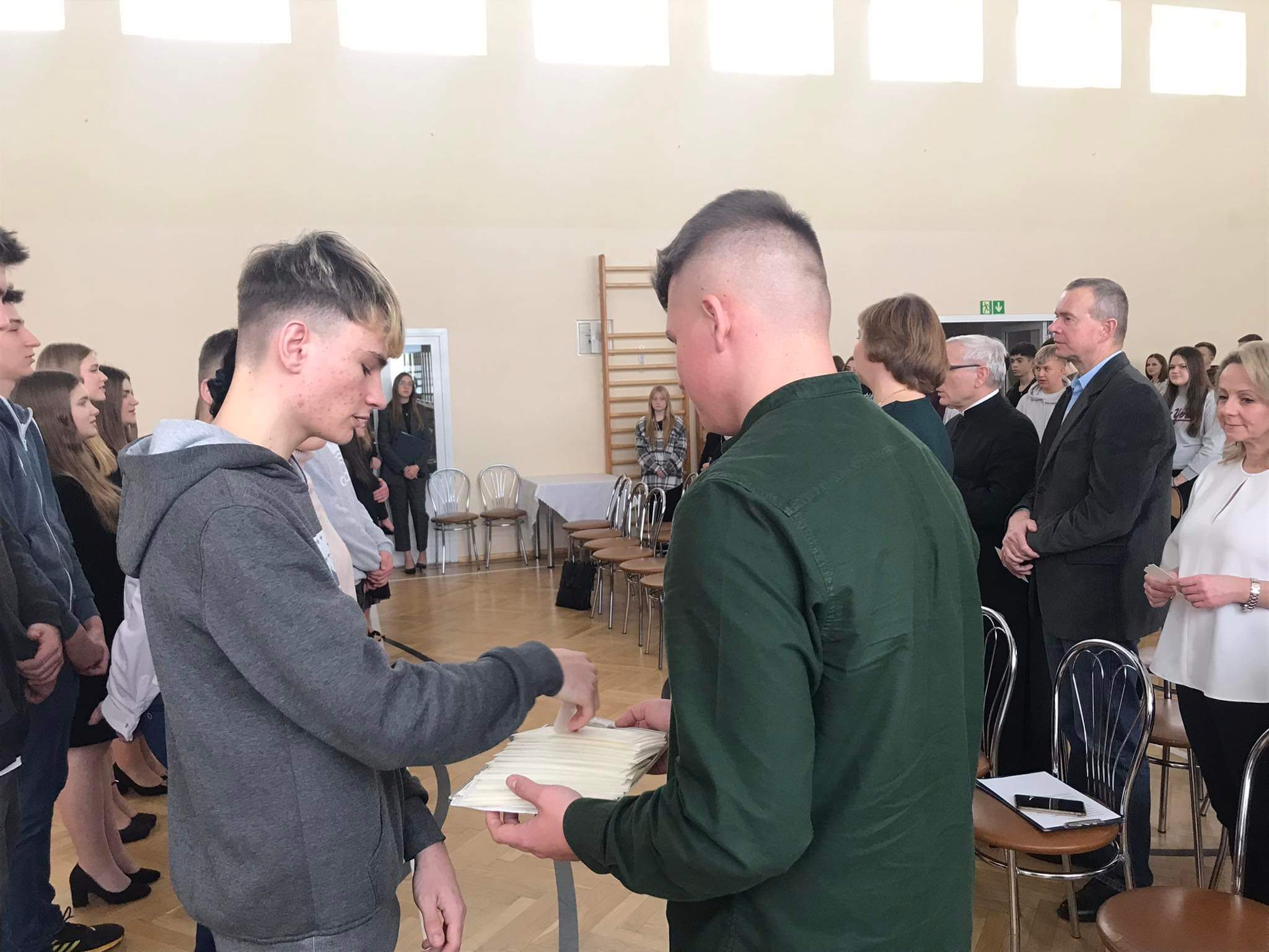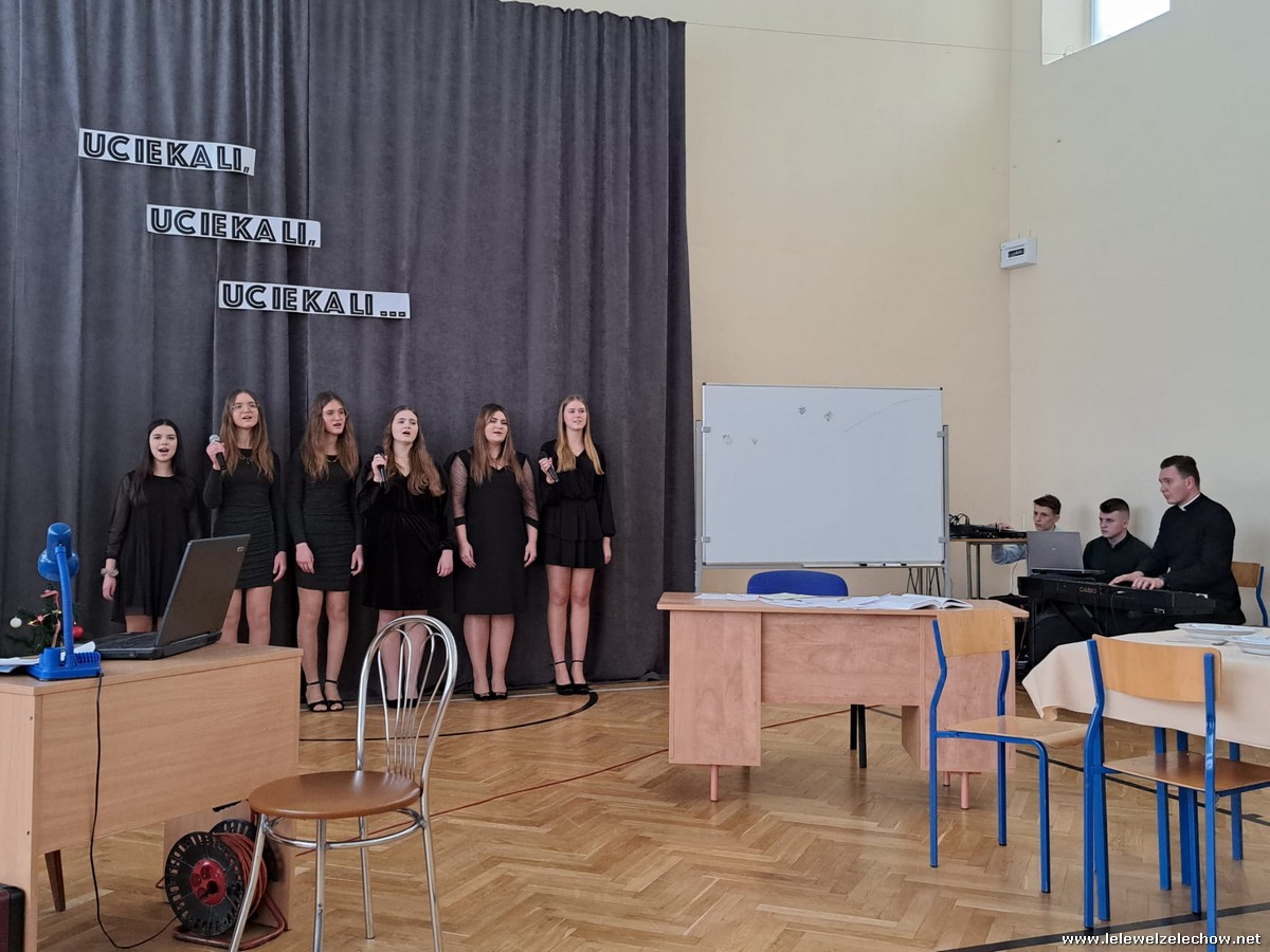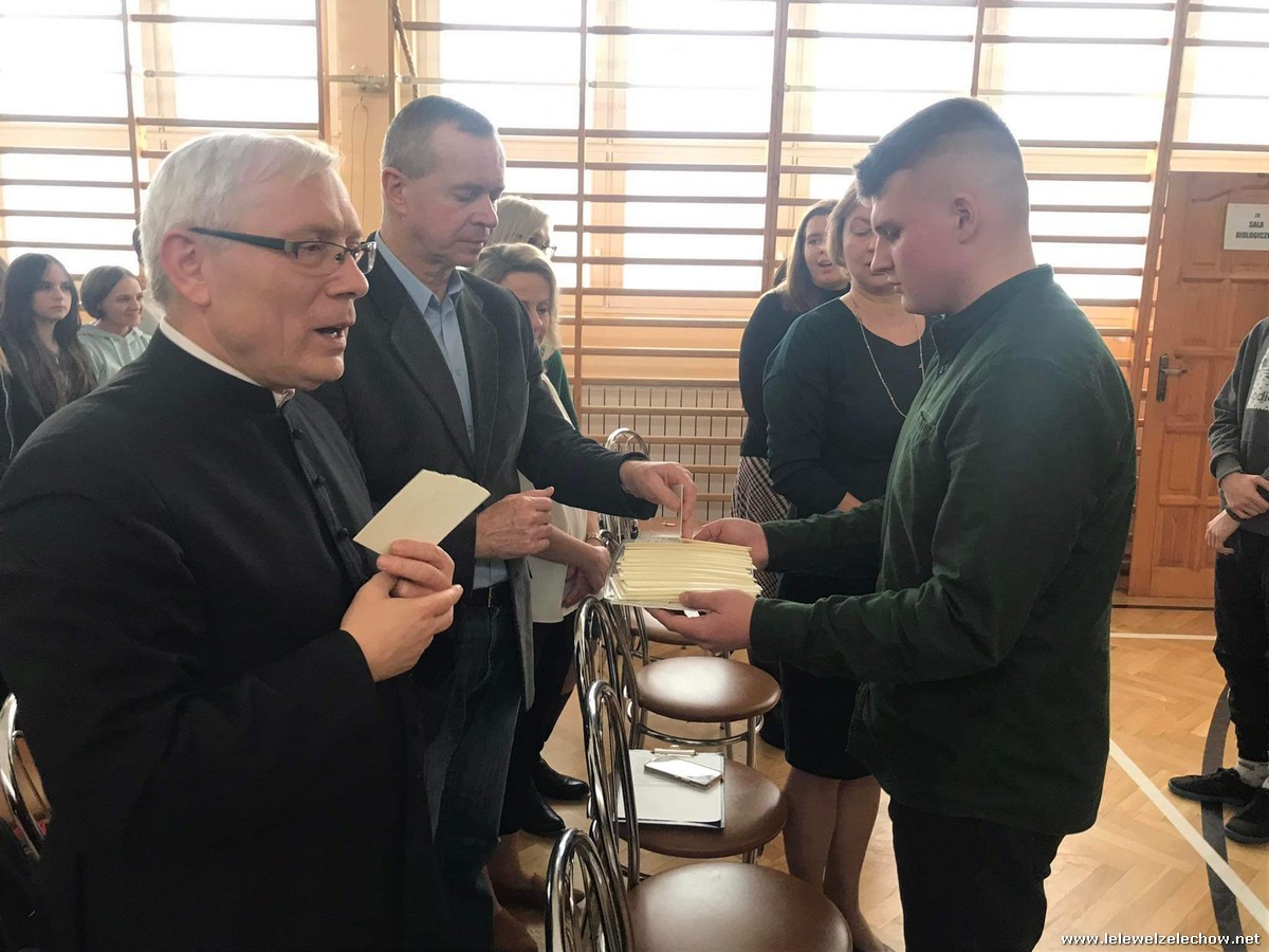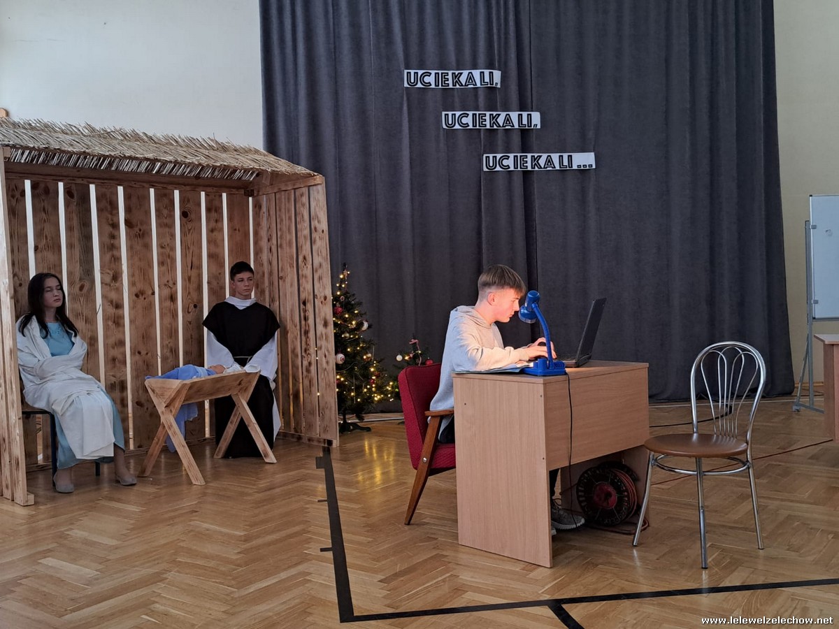 W tygodniu poprzedzającym Święta Bożego Narodzenia w naszej szkole odbyła się niejedna wigilia. Każda z klas spotkała się przy wspólnym stole, podzieliła się opłatkiem, życząc sobie dobra i piękna. To wyjątkowy, magiczny czas, który wprowadza nas w te najbardziej wyczekiwane święta w roku. I mimo tego, że zarówno w szkole, jak i w domu obowiązków nie brakowało, to dało się odczuć radość i atmosferę oczekiwania. Szczególnie doświadczyliśmy tego podczas Szkolnej Wigilii, która była okazją do spotkania sią całej społeczności szkolnej. Mogliśmy podczas niej wejść głębiej w tajemnice Bożego Narodzenia i zastanowić się, co ten czas dla nas znaczy. Umożliwili nam to uczniowie, którzy pod opieką księdza Mariusza Rompy i pani Anny Majewskiej przygotowali piękny i pełen głębokich treści program artystyczny. Każdy z uczestników wigilii, o ile uważnie oglądał i słuchał, mógł odnaleźć w tym przedstawieniu siebie. Poszczególne scenki przeplatane kolędami były okazją do refleksji nad własnym życiem. Dziękujemy wszystkim uczestnikom programu za tak wiele mądrych myśli i wzruszeń, za piękny śpiew i akompaniament, za wymowną scenkę spotkania przy stajence. Podczas spotkania nie zabrakło też kolęd i życzeń, które składaliśmy sobie nawzajem. Do całej społeczności szkolnej zwrócili się: Pani Dyrektor, Ksiądz prałat Eugeniusz Filipiuk, Ksiądz Mariusz Rompa, Samorząd Uczniowski. Niech święta Bożego Narodzenia napełnią nas nadzieją, dobrem, życzliwością i abyśmy potrafili dzielić się tym wszystkim z drugim człowiekiem.